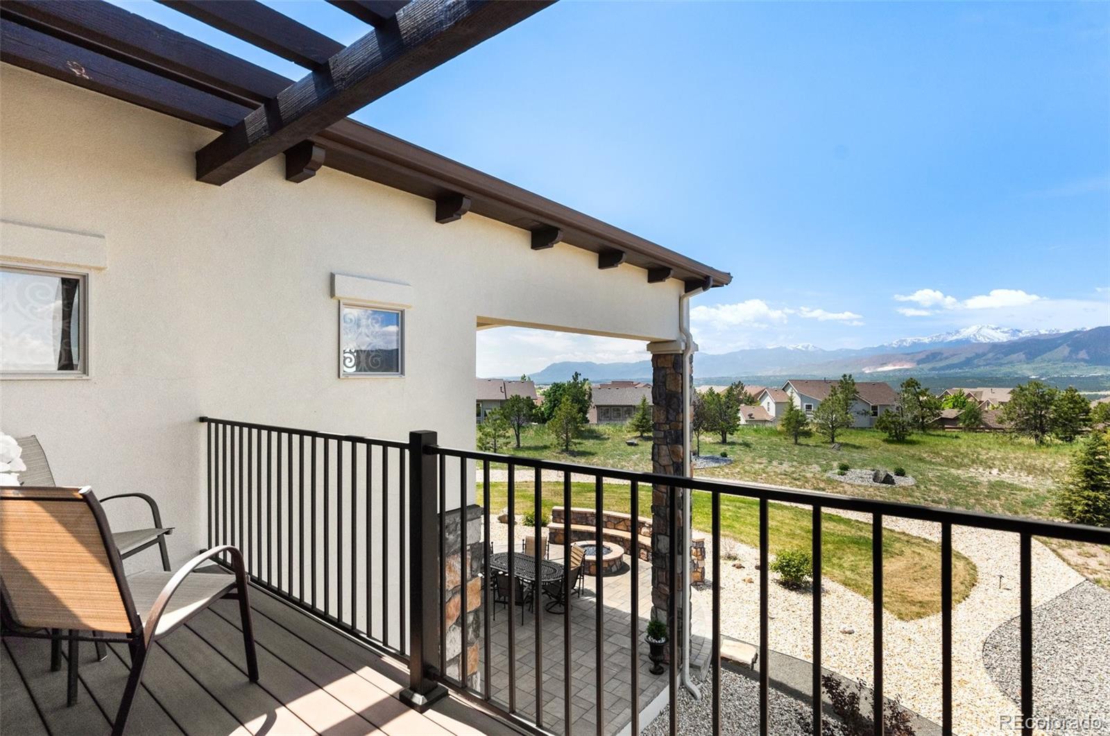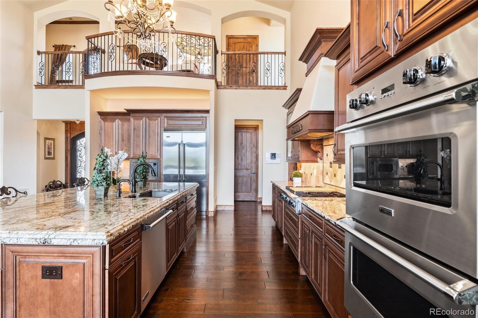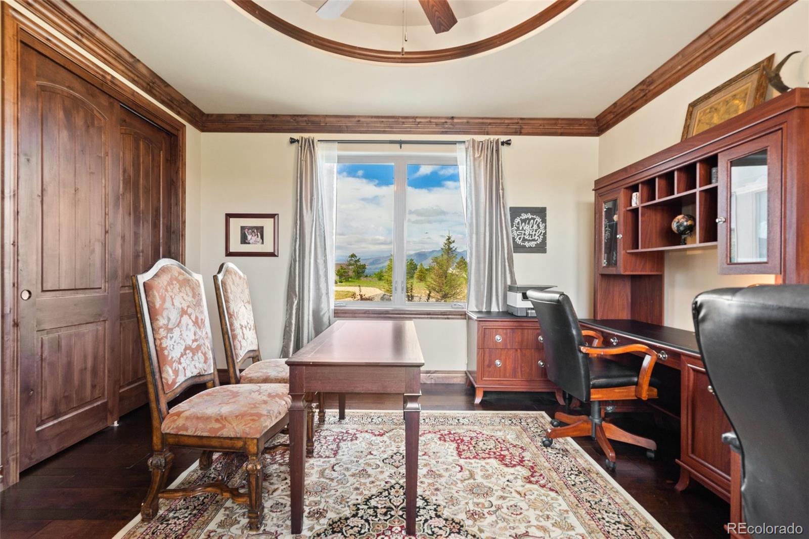 Welcome to the pinnacle of luxury living in the gated Village of Toscano, an exclusive retreat within Flying Horse. This custom Tuscany inspired home offers 7 bedrooms, 5 baths, and approximately 6500 square feet of living space on 1.45 acres of professionally landscaped grounds. The moment you arrive, the stone exterior, circular driveway, and stone gas fire pit create a captivating first impression. The outdoor areas are inviting with a pond less water feature and an additional stone gas firepit, perfect for Colorado evenings with unforgettable views. Inside, the home reveals extraordinary craftsmanship with handcrafted wood details and rich architectural elements. A 23 foot vaulted beam ceiling frames a direct view of Pikes Peak, creating a dramatic focal point as you step inside. Nearly every space offers sweeping views of Pikes Peak, the Front Range, the USAF Academy, and the Tom Weiskopf designed course at Flying Horse. The independently temperature controlled wine room is a showcase with space for 1000+ bottles. Storage throughout the home is impressive, and the oversized four car garage provides generous room for vehicles. Both the main and lower levels feature ten foot ceilings and eight foot doors, giving the residence an open and elegant feel. The home is designed for a future private elevator, now appointed as expansive storage areas. The primary suite is a private retreat with a fireplace, integrated entertainment, and unobstructed mountain views. The five piece bath features a freestanding tub, two vanities, a zero entry spa shower, and a spacious walk in closet with custom built dressers over ten feet long. This residence offers a blend of privacy and convenience, located minutes from I25, Powers Blvd, dining, shopping, parks, award winning D20 schools, the Ford amphitheater, and the Flying Horse Clubhouse and Steakhouse. Experience timeless craftsmanship, stunning views, and luxury living in one of Colorado Springs most sought after communities.