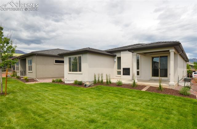 Brand new ranch home in sought-after Kissing Camels Estates! Modern finishes with views of downtown Colorado Springs and the Front Range! Main level offers a Great Room with indoor/outdoor two-way fireplace, Primary Suite features an attached bath, floor-to-ceiling tile shower, and walk-in closet, laundry room, 1/2 bath, and secondary bedroom with attached bath. Large, open-concept Kitchen with quartz countertops and island with breakfast bar, Kitchen Aid appliances, walk-in pantry, and a Breakfast Nook with walk-out to covered patio. Full finished basement features an expansive Family Room, 1/2 bath, two bedrooms, a full bath, and a flex room. 3-car attached tandem garage. Storage Room, radon system, central air, and tankless water heater are added amenities in this home. HOA dues includes 24-hour gated security and patrol, 3 access gates (2 are private residential only), snow removal on streets, trash removal, and common area maintenance. Within easy walking distance to the Garden of the Gods Club and Resort and Kissing Camels Golf Club. Use of Garden of the Gods Club and Kissing Camels Club facilities requires a separate membership. Close to shopping, dining, and easy access to I-25. Don't miss this opportunity to live in a brand-new home in an exclusive, gated community in a prime location!