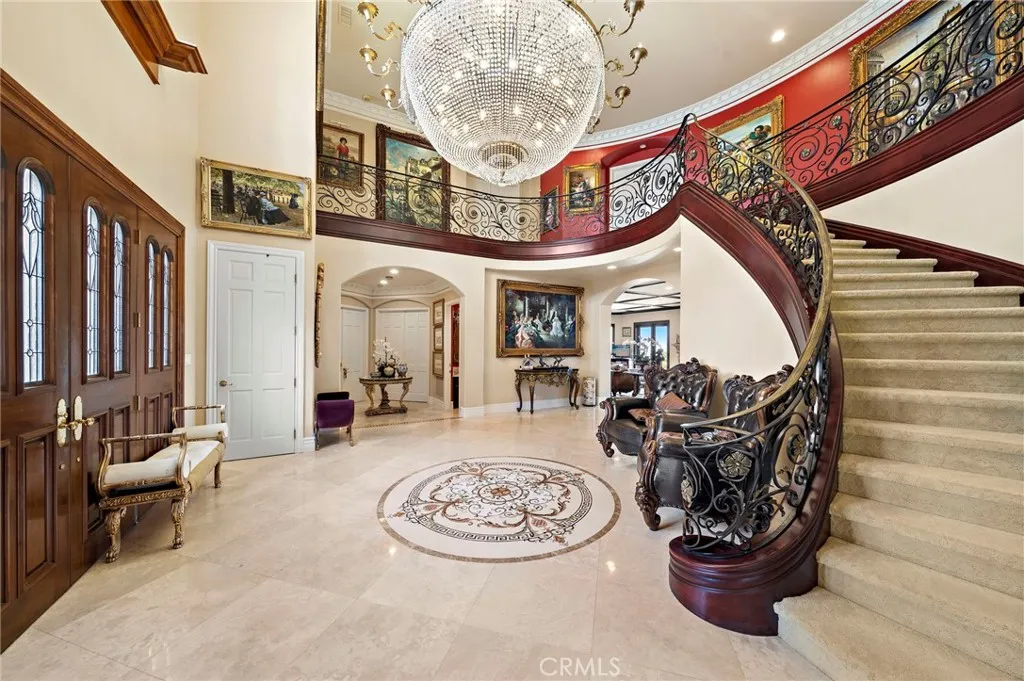 Discover the grandeur and nostalgia of the Guilded age. The magnificent bespoke estate crowns the top of prestigious Spyglass Hill, on the most coveted cul-de-suc of the exclusive Custom collection of properties. Positioned to capture panoramic 200 degree views, the carefully curated, privately gated compound awaits for those with discriminating taste. Main level foyer impresses with the stunning iron framed circular staircase, lit with sparkles of the grand crystal chandelier and artfully inlaid stone floors. Generously proportioned, easy flowing formal living and family rooms are enriched by custom grand marble fireplaces. In addition, chef inspired kitchen, formal dining room and the office with built-ins complete the main level. Main house hosts six en-suite bedrooms, which include two luxurious primary suites commanding infinite mesmerizing sparkling night views. Five car garage suits all your autos accordingly. Completely separate guest house accommodates visitors and live-ins providing all necessities and comfort, featuring a bedroom suite, a kitchen, direct separate garage access, laundry room and a sitting room completed with a beautiful fireplace. Spyglass Hill proximity to all local notables, world class shopping, gourmet restaurants, pristine beaches, Performing Arts Center, commute arteries, including John Wayne airport, makes it one of the most desirable locations in Newport Beach.