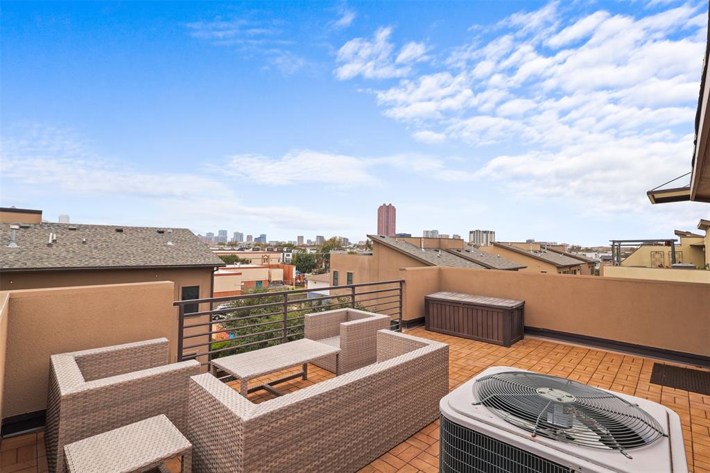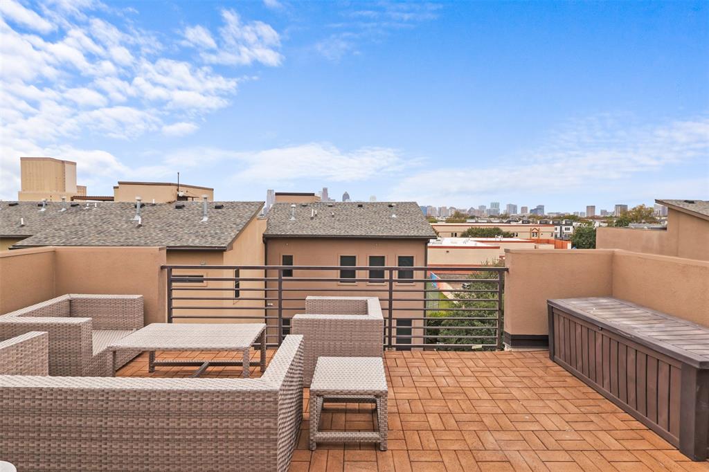 This East Dallas gem offers an upscale modern residential experience in a gated community located just minutes from Uptown, Downtown, Lower Greenville, and White Rock Lake. This spacious 3-bed, 4-bath, 2,154 sq ft, 3 story home features an open-concept design with premium finishes, a private patio on the second floor, as well as, an entry into the gated yard located in the first floor bedroom. While this property offers private outdoor living with balcony and yard entries, this unit also provides access to community amenities such as 240-volt attached garage parking (perfect for EV charging), and a private dog park for residents. Beyond the third story, features the unit's beautiful terrace, with phenominal views of Downtown Dallas' skyline.