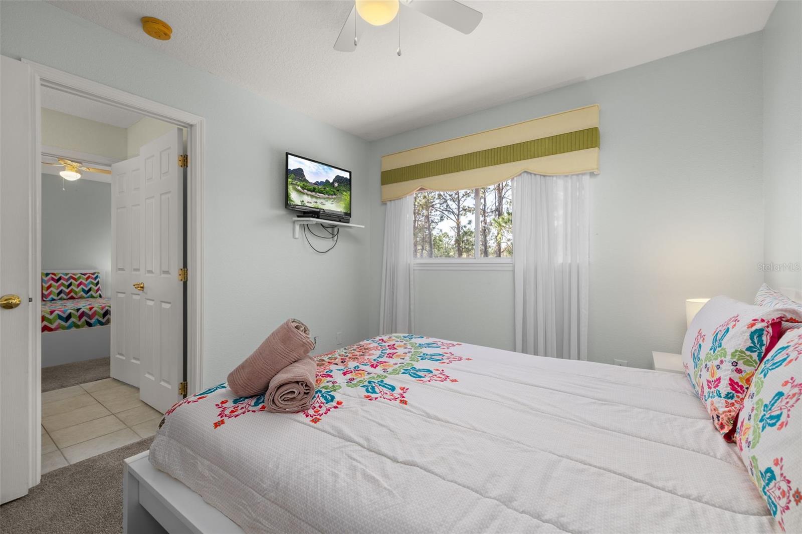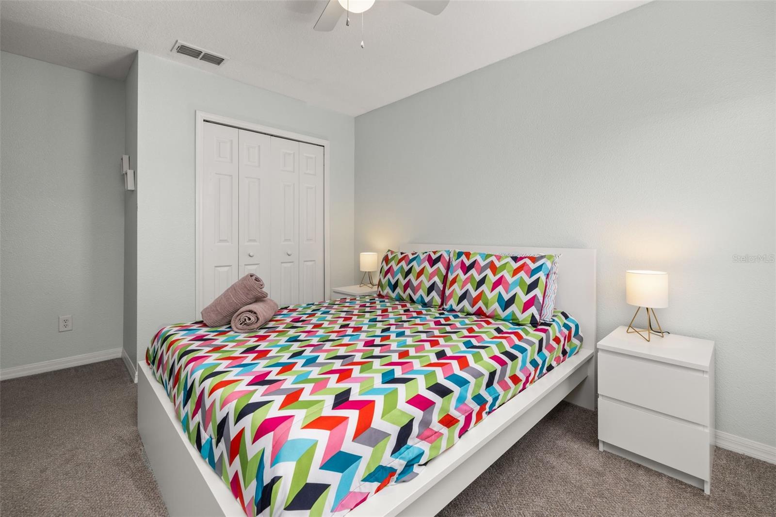 Upstairs you’ll find four additional bedrooms—two connected by a Jack-and-Jill bathroom, and two sharing a landing bath. The entire second floor was thoughtfully REFURBISHED in 2022 with durable, stylish pieces designed to maximize short-term rental appeal and guest comfort. Additional highlights include a built-in desk area, large storage closet, and dual-zone AC units for optimal climate control.