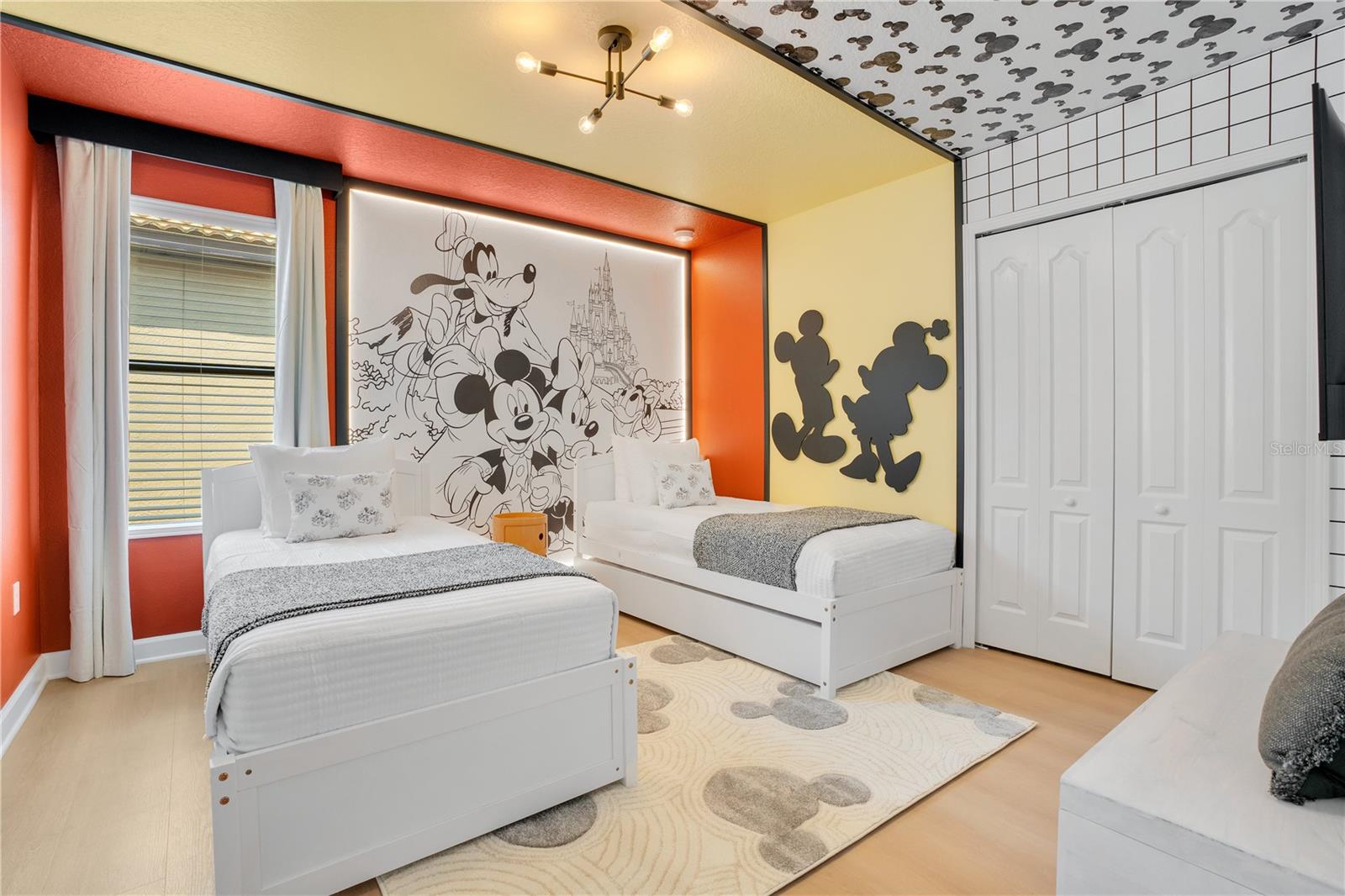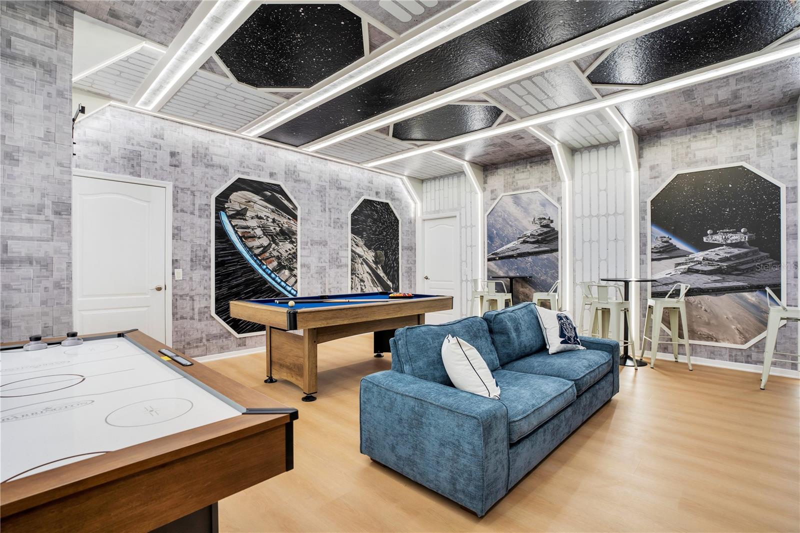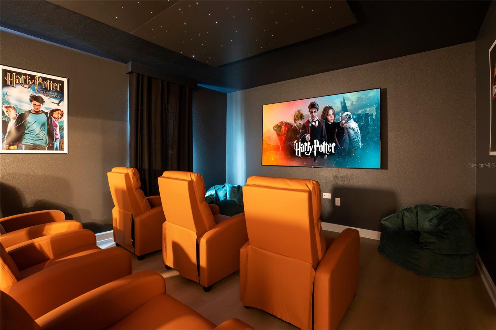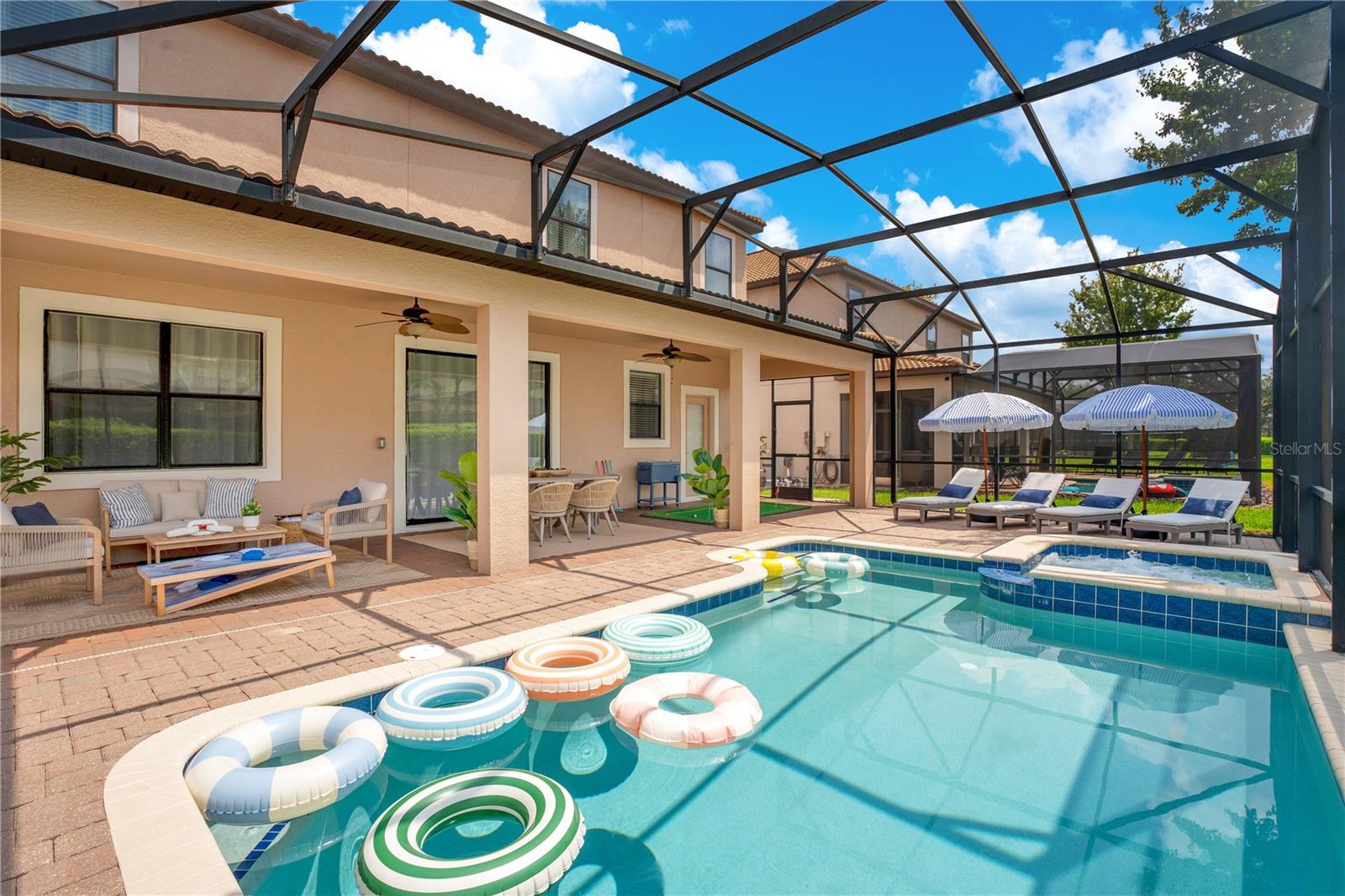 Fully Renovated STR – No Carpet – Steps from Oasis Clubhouse! / This one-of-a-kind 9-bedroom pool home in ChampionsGate is fully furnished and turnkey, located just walking distance to the resort-style Oasis Clubhouse. Featuring new luxury vinyl plank flooring throughout, new A/C, a New pool system, and commercial-grade furnishings, this home is professionally designed for high occupancy and low maintenance.Garage converted to air-conditioned game room, and the 9th bedroom is now a private home theater with starfield ceiling. Custom cabinetry, extended pool deck with spa & hot tub, and stylish finishes throughout. Impressive themed bedrooms designed for Orlando's Airbnb market.