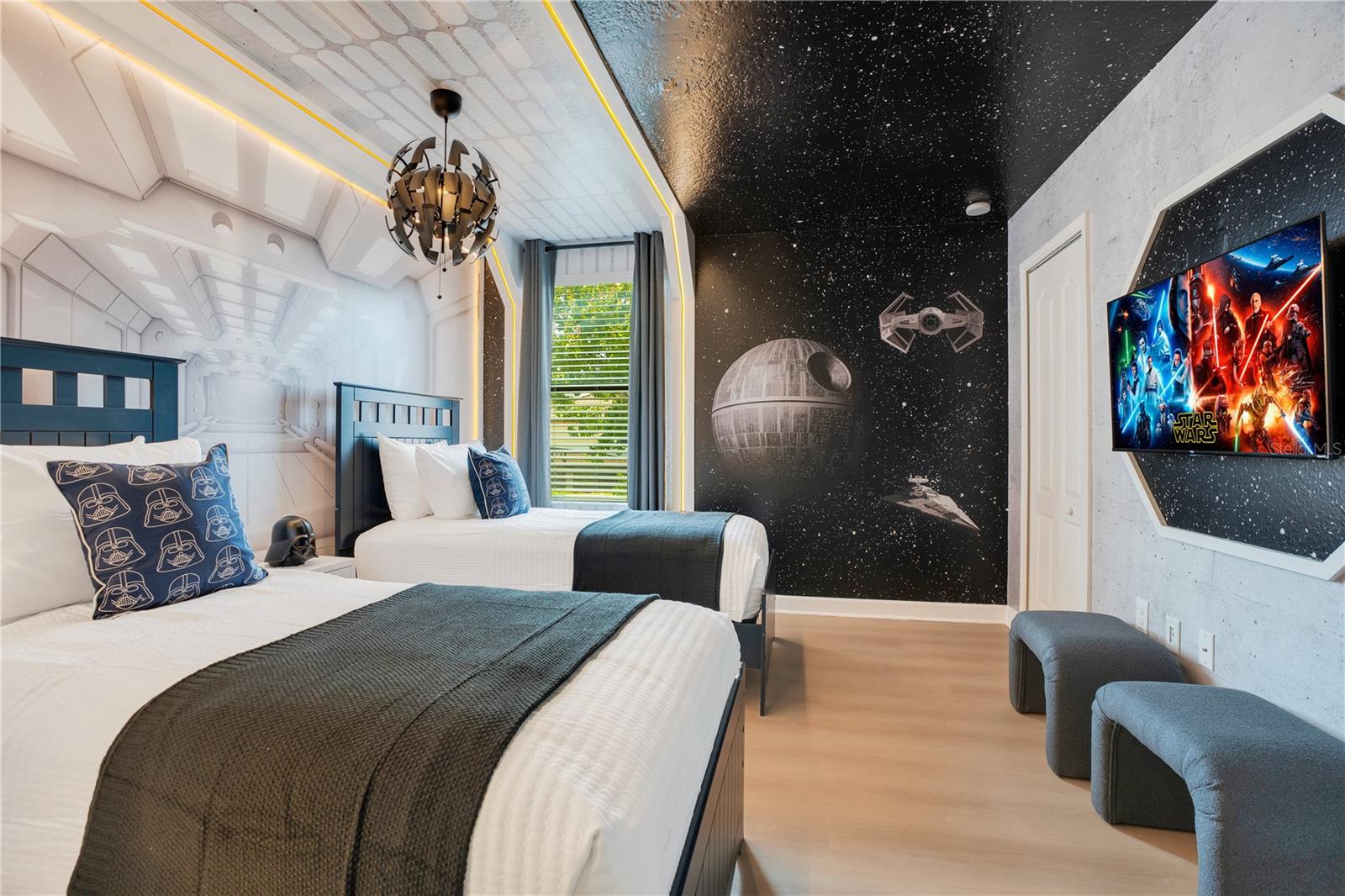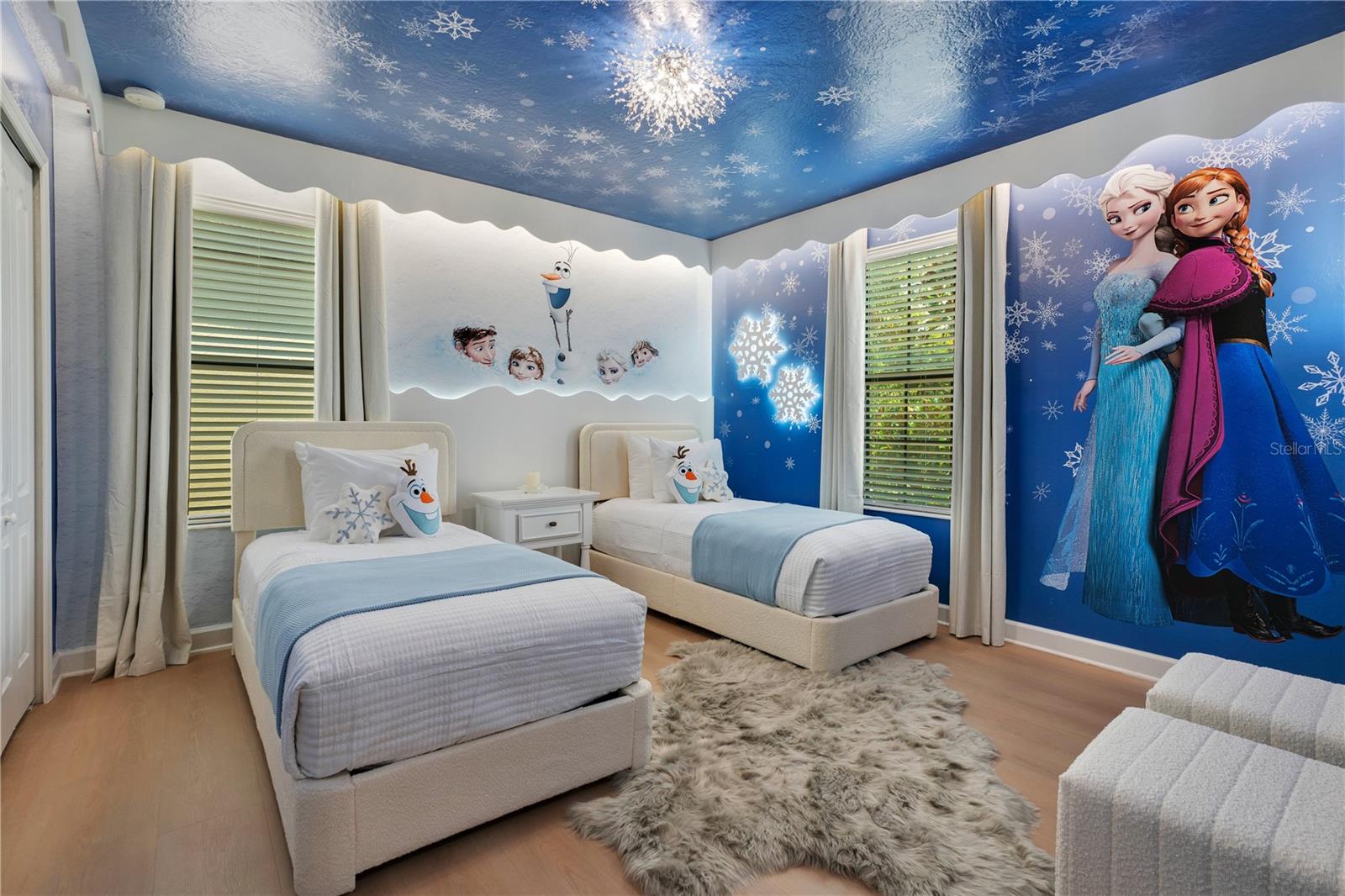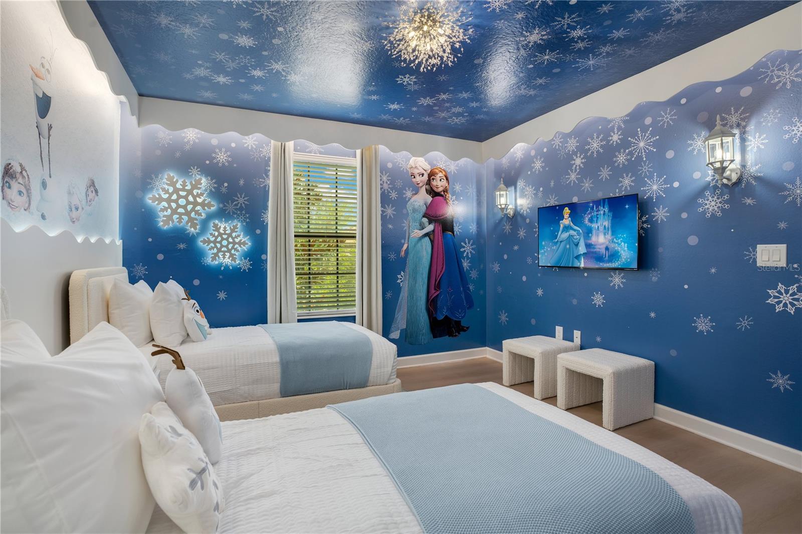 Fully Renovated STR – No Carpet – Steps from Oasis Clubhouse! / This one-of-a-kind 9-bedroom pool home in ChampionsGate is fully furnished and turnkey, located just walking distance to the resort-style Oasis Clubhouse. Featuring new luxury vinyl plank flooring throughout, new A/C, a New pool system, and commercial-grade furnishings, this home is professionally designed for high occupancy and low maintenance.Garage converted to air-conditioned game room, and the 9th bedroom is now a private home theater with starfield ceiling. Custom cabinetry, extended pool deck with spa & hot tub, and stylish finishes throughout. Impressive themed bedrooms designed for Orlando's Airbnb market.