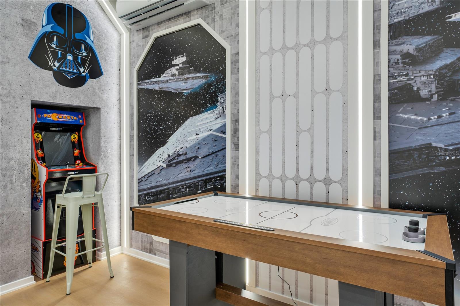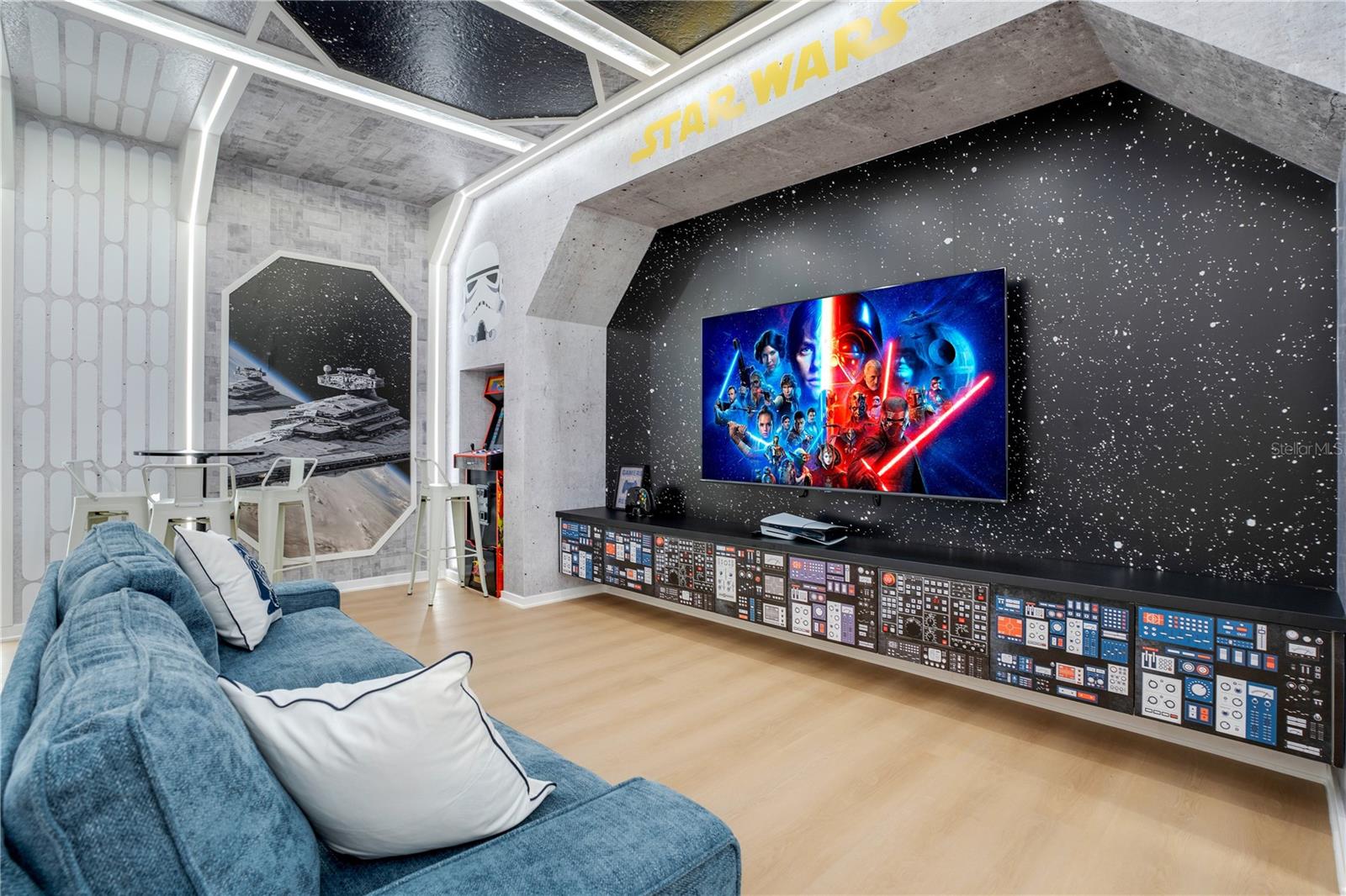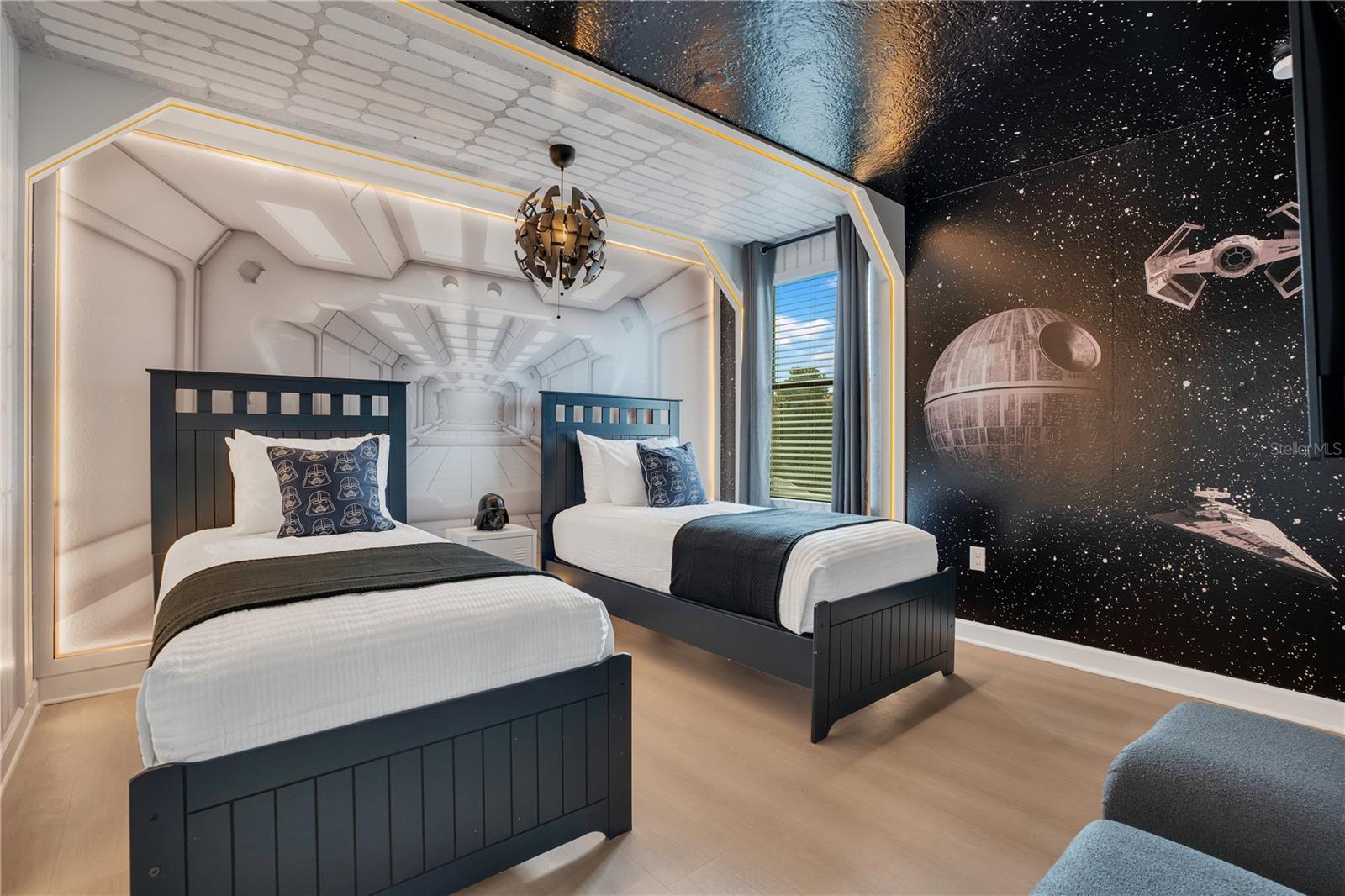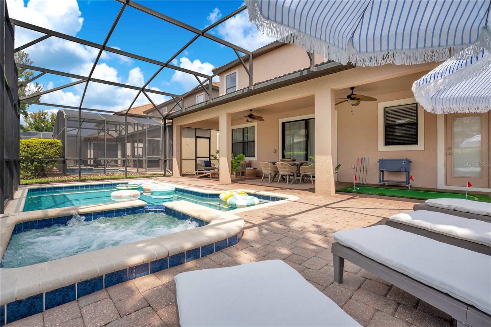 Fully Renovated STR – No Carpet – Steps from Oasis Clubhouse! / This one-of-a-kind 9-bedroom pool home in ChampionsGate is fully furnished and turnkey, located just walking distance to the resort-style Oasis Clubhouse. Featuring new luxury vinyl plank flooring throughout, new A/C, a New pool system, and commercial-grade furnishings, this home is professionally designed for high occupancy and low maintenance.Garage converted to air-conditioned game room, and the 9th bedroom is now a private home theater with starfield ceiling. Custom cabinetry, extended pool deck with spa & hot tub, and stylish finishes throughout. Impressive themed bedrooms designed for Orlando's Airbnb market.