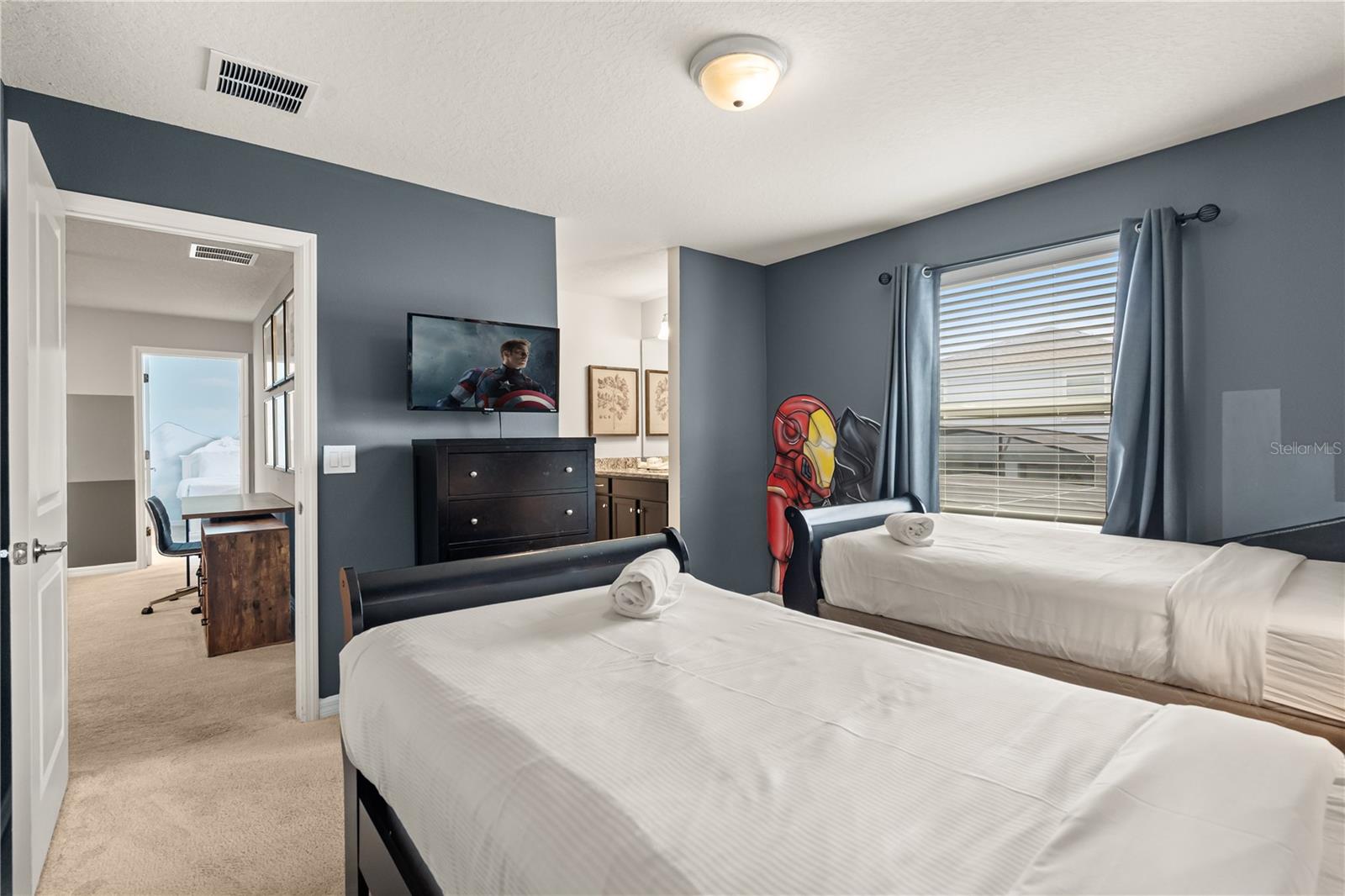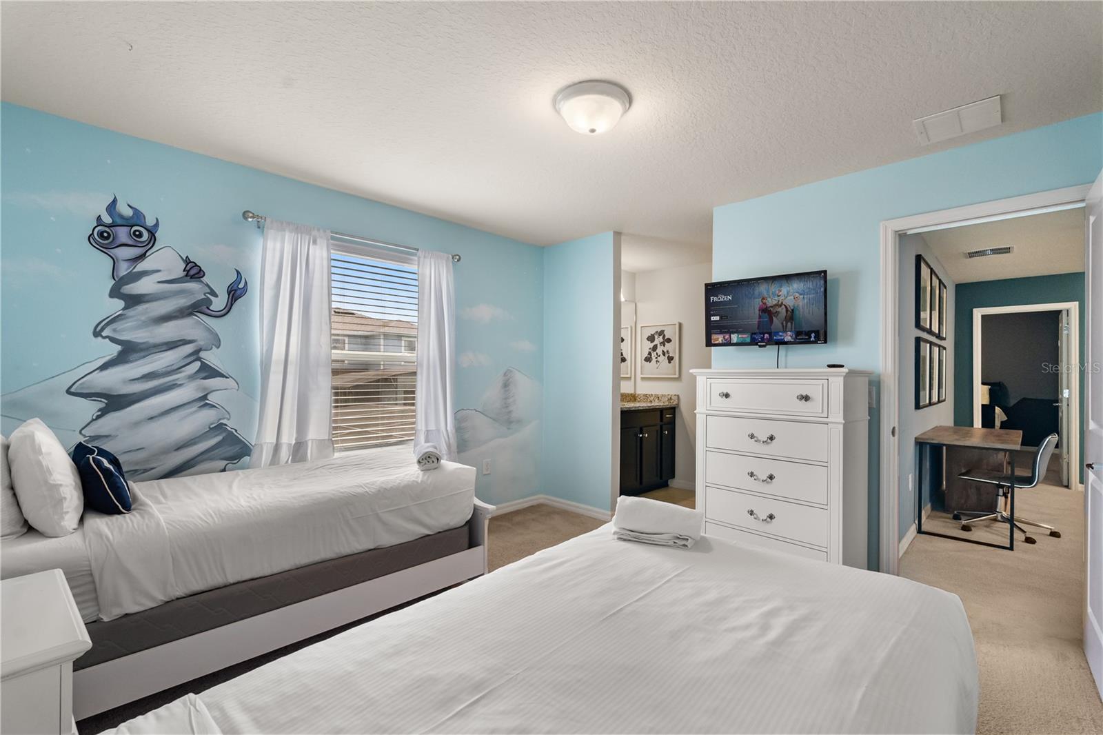 This home showcases themed bedrooms, designed to ignite the imagination, and a dedicated game room to captivate guests of all ages. Windsor Island Resort enhances the experience with top-tier community amenities, including an 8,000-square-foot clubhouse, lazy river, heated pool, cabanas, sports courts, and more.