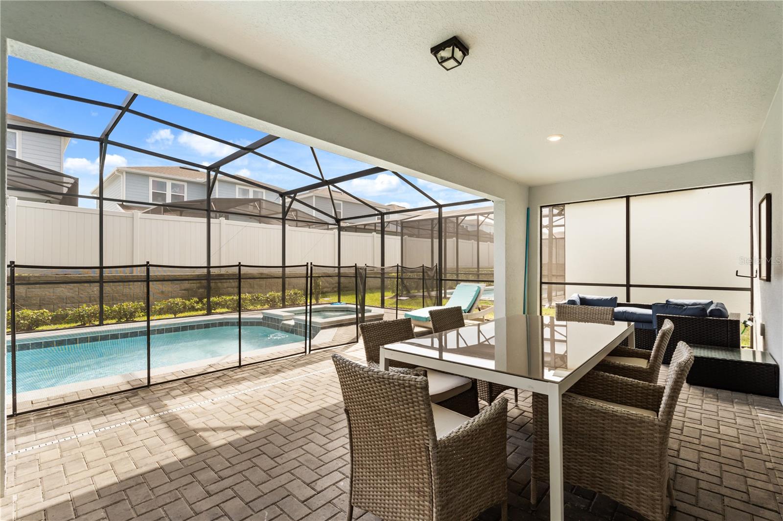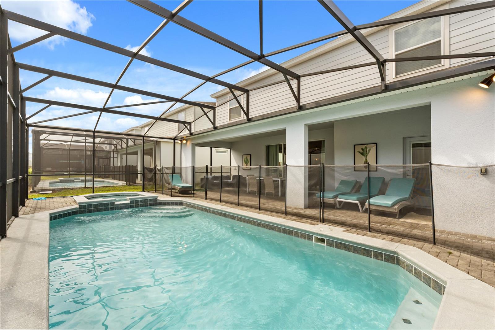 Discover the epitome of luxury in Windsor Island Resort, one of the premier vacation home communities near Disney! This fully furnished residence offers 8 spacious bedrooms and 6 elegant bathrooms, with a sprawling open floor plan that caters to both relaxation and entertaining. The home's outdoor area is a private haven, featuring a screened-in heated pool and spa, along with a large lanai perfect relaxing or entertaining.