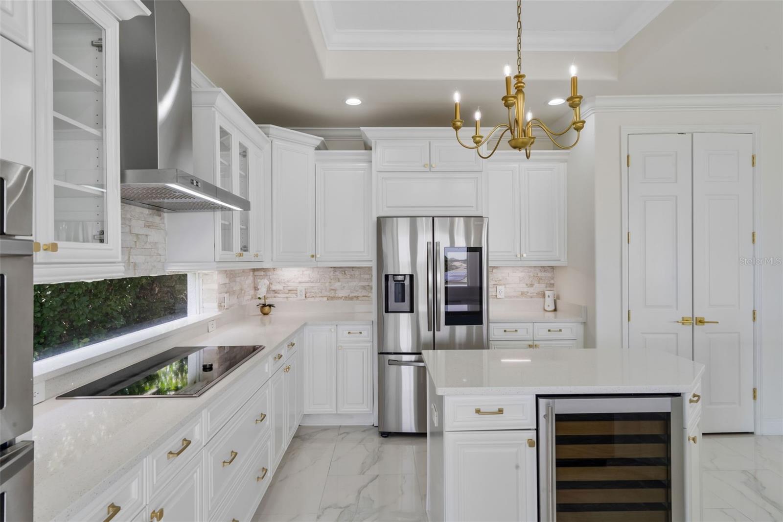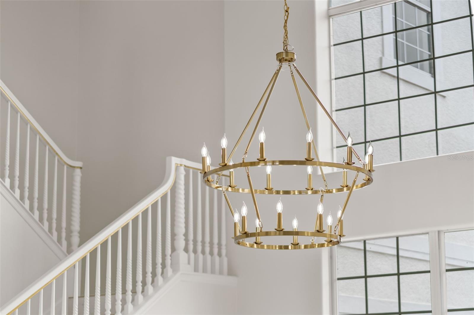 Discover luxury living at its finest in this fully renovated, never-lived-in smart home located in the prestigious Providence Golf and Country Club, one of Central Florida's most exclusive gated communities. This stunning five-bedroom, four-bathroom residence offers an impressive 4,136 sq. ft. of space, featuring a rare climate-controlled three-car garage, making it perfect for luxury vehicles, a home gym, or additional storage. Step inside to experience an elegant modern open layout adorned with premium finishes and smart appliances. The gourmet kitchen is a chef's dream, complete with a wine fridge, custom cabinetry, designer lighting, and tasteful gold accent touches. The main living area boasts soaring ceilings and an abundance of natural light, creating a warm and inviting atmosphere. Retreat to the owner's master suite, designed for relaxation, featuring a luxurious soaking tub for two, a spacious walk-in shower, dual vanities, and picturesque views of the stunning outdoor pool area. The oversized guest bathroom also includes a generous walk-in shower for added convenience. Upstairs, you'll find four well-appointed bedrooms, a open loft area with a huge balcony overlooking the backyard. A dedicated office space is conveniently located downstairs off the kitchen. Step outside to your private luxury pool, framed by palm trees and modern tile features. The deck is perfect for entertaining or unwinding, while the screened-in lanai seamlessly blends indoor and outdoor living, providing a tranquil space for year-round enjoyment and privacy. Renovations were completed in 2024, ensuring a fresh and modern experience. This home is just 3 miles from the highly-rated Davenport School of the Arts, and approximately 20-30 minutes from the magical attractions of Disney World. Enjoy the peace of mind that comes with 24-hour gated security, and take advantage of community amenities, including an 18-hole championship golf course, resort-style pools, fitness centers, tennis courts, playgrounds, nature trails, and a clubhouse with dining and social events. This property offers an unparalleled lifestyle and is an unbelievable deal for the area. Don’t miss your chance to make this luxury home your own!