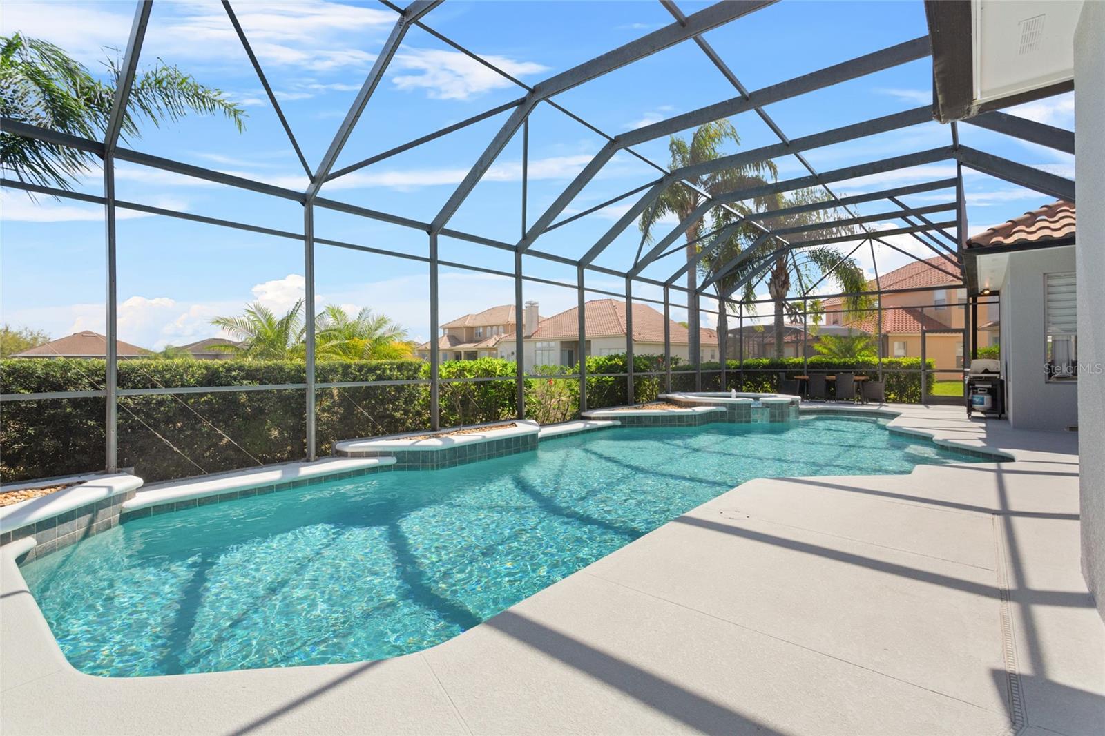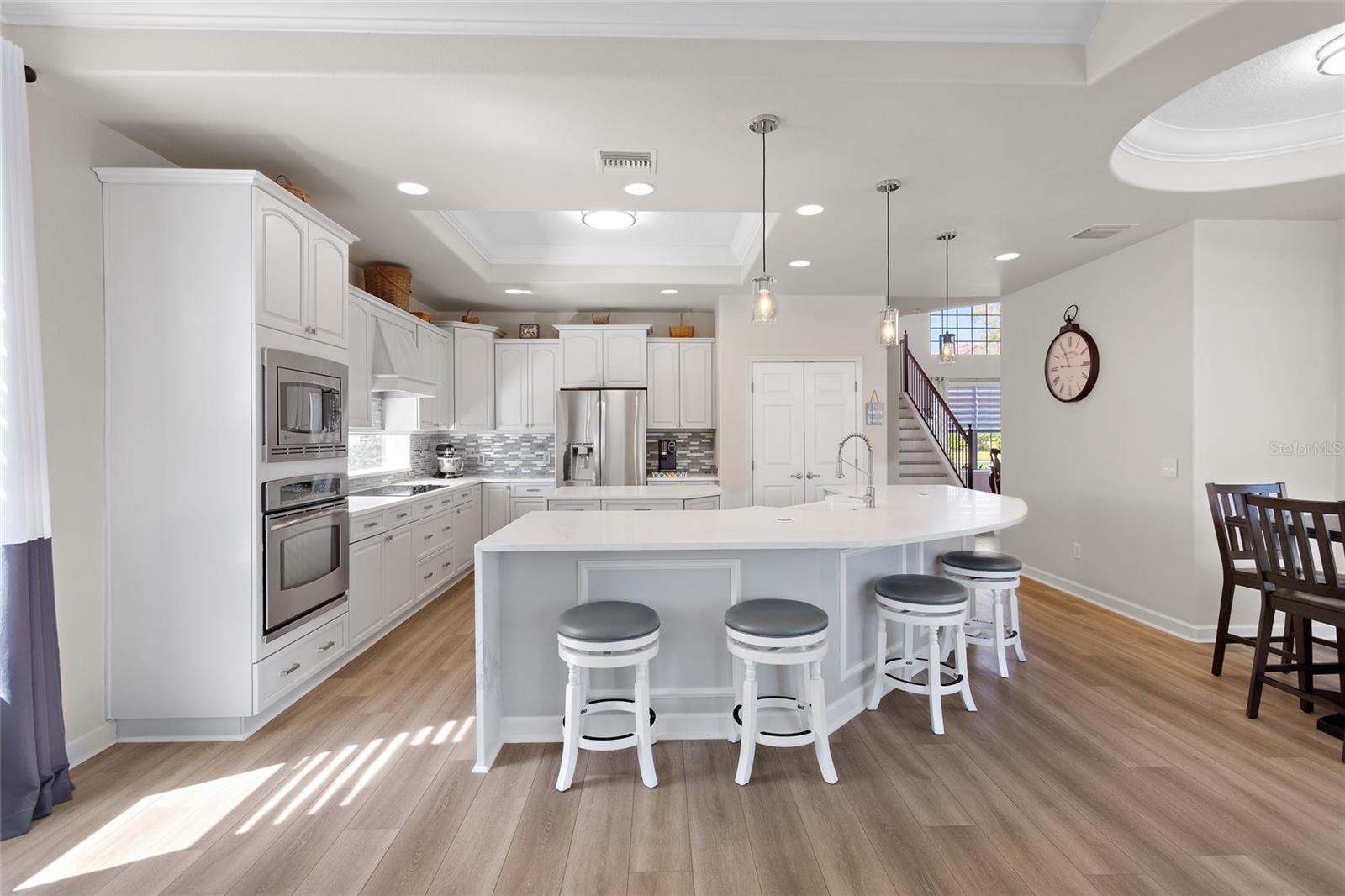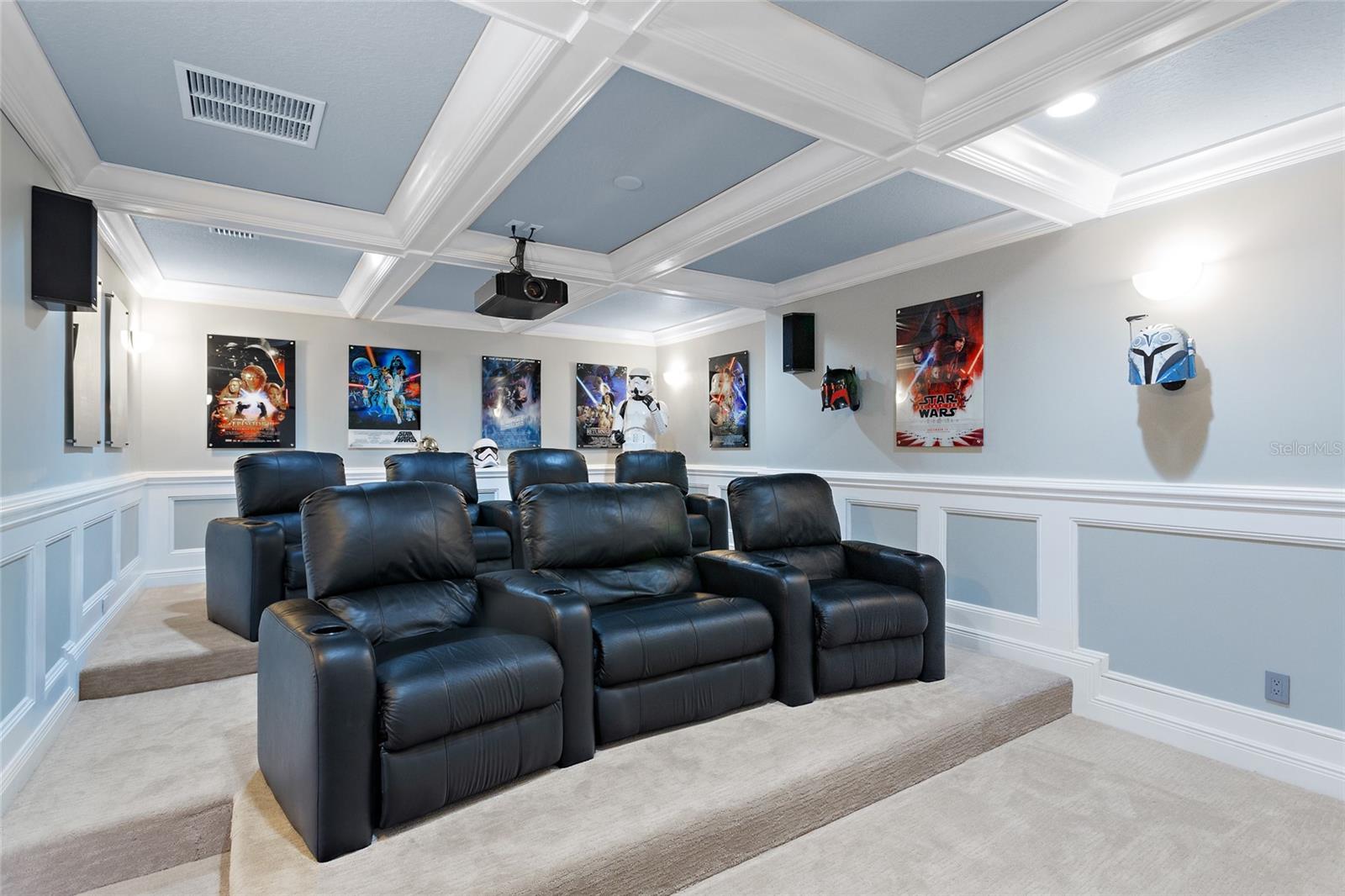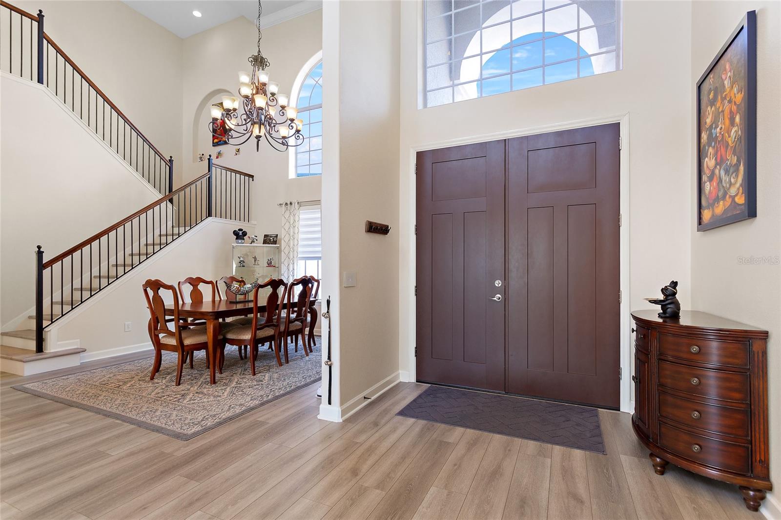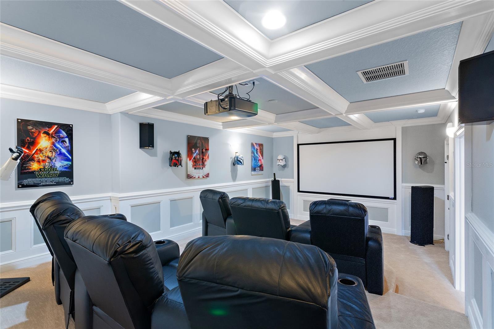 Step inside through brand-new double doors and take in the fresh, contemporary feel with newly painted interiors and exteriors. The spacious floor plan includes a dedicated theater room, a versatile home office, and an impressive primary suite tucked away on the main level for ultimate privacy. This owner’s retreat features custom dual closets and a completely remodeled en-suite with a spa-like ambiance—highlighted by a freestanding soaking tub, an oversized walk-in shower, and double vanities with striking waterfall countertops. LVP flooring and tray ceilings add a refined touch to the space. The heart of the home is the fully renovated kitchen, designed to impress with sleek quartz waterfall countertops, a stylish farmhouse sink, and updated appliances. Whether you’re cooking a gourmet meal or entertaining guests, this kitchen is a true showstopper. The main level has been upgraded with new flooring throughout, and the second floor also boasts fresh updates, including plush carpeting in the theater room. Upstairs, a spacious loft provides a flexible living area, accompanied by two additional bedrooms and two full bathrooms. Movie lovers will appreciate the tiered-seating theater room, which comes fully equipped for an immersive cinematic experience. Outside, the home continues to impress with a three-car garage featuring an EV charging plug, updated landscaping with decorative curbing, and a brand-new pool heater. The backyard is a private oasis, complete with no rear neighbors, a sparkling pool, spa, oversized covered patio, and a screened enclosure—perfect for year-round enjoyment. Located in the guard-gated Providence community, residents enjoy world-class amenities, including a championship golf course, two resort-style pools, a clubhouse, a fitness center, tennis courts, a dog park, and scenic walking trails. This exceptional home is move-in ready and offers a rare opportunity to experience luxury living in one of Central Florida’s premier communities. Don’t miss your chance—schedule your private showing today!