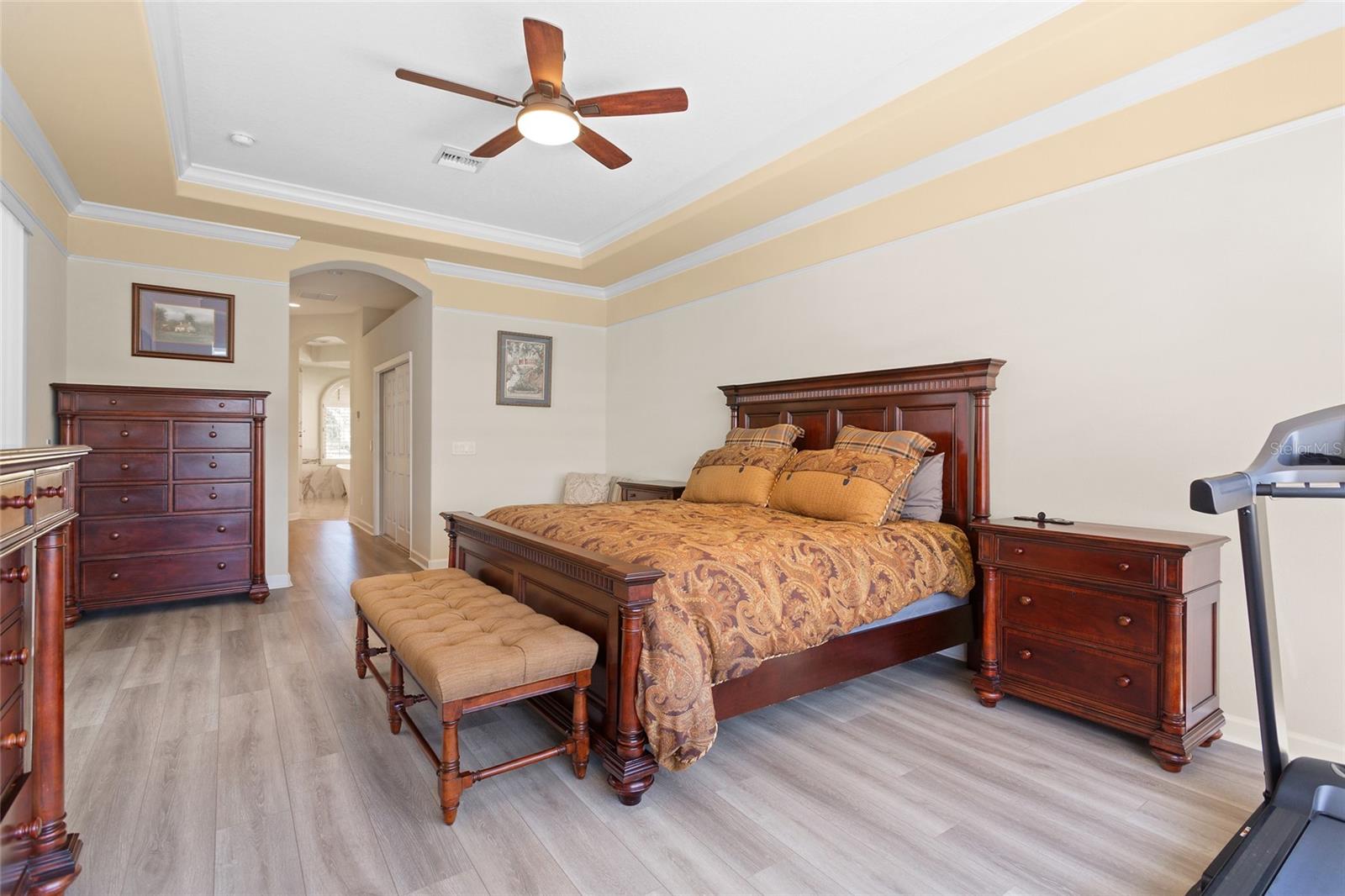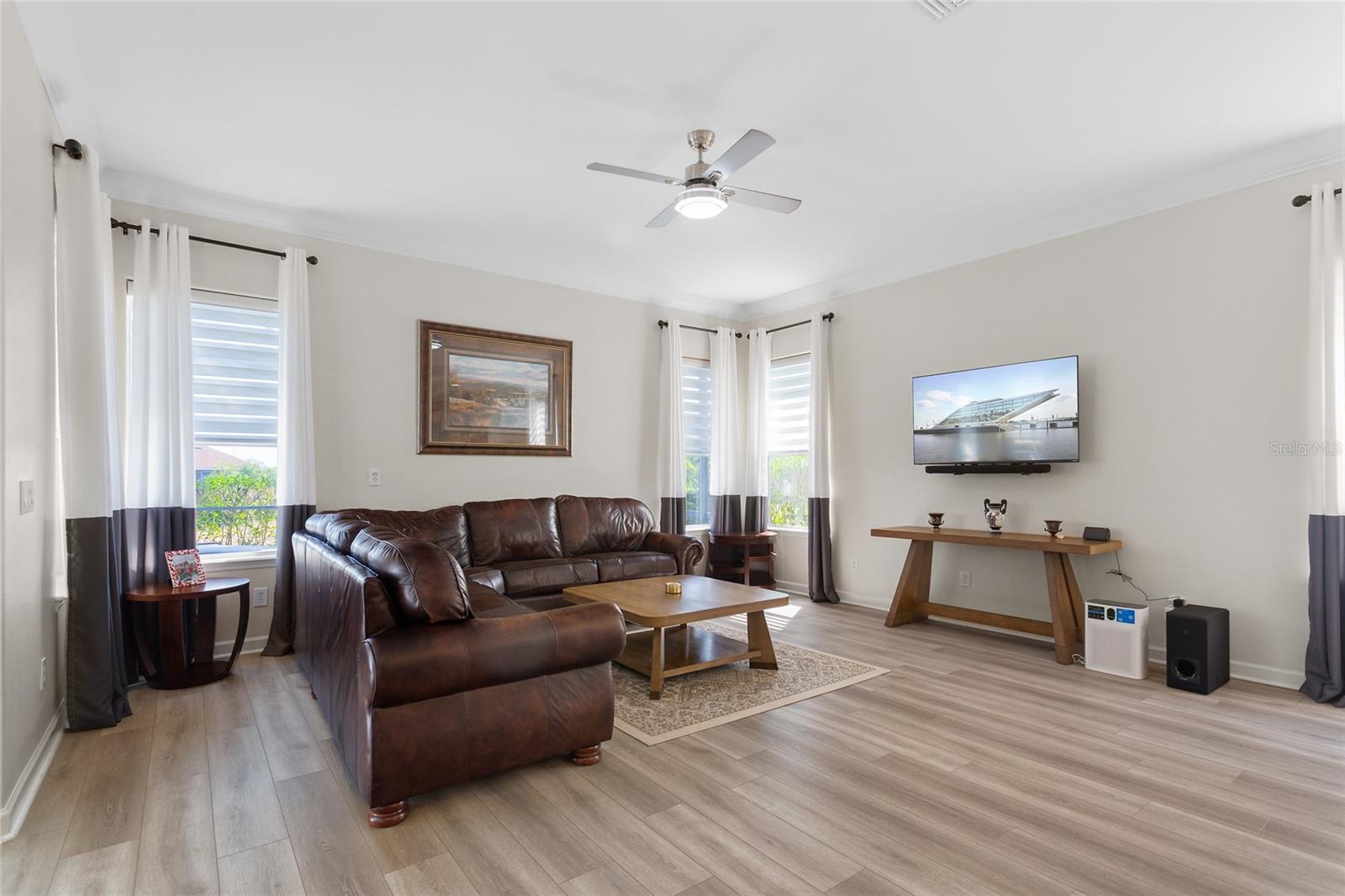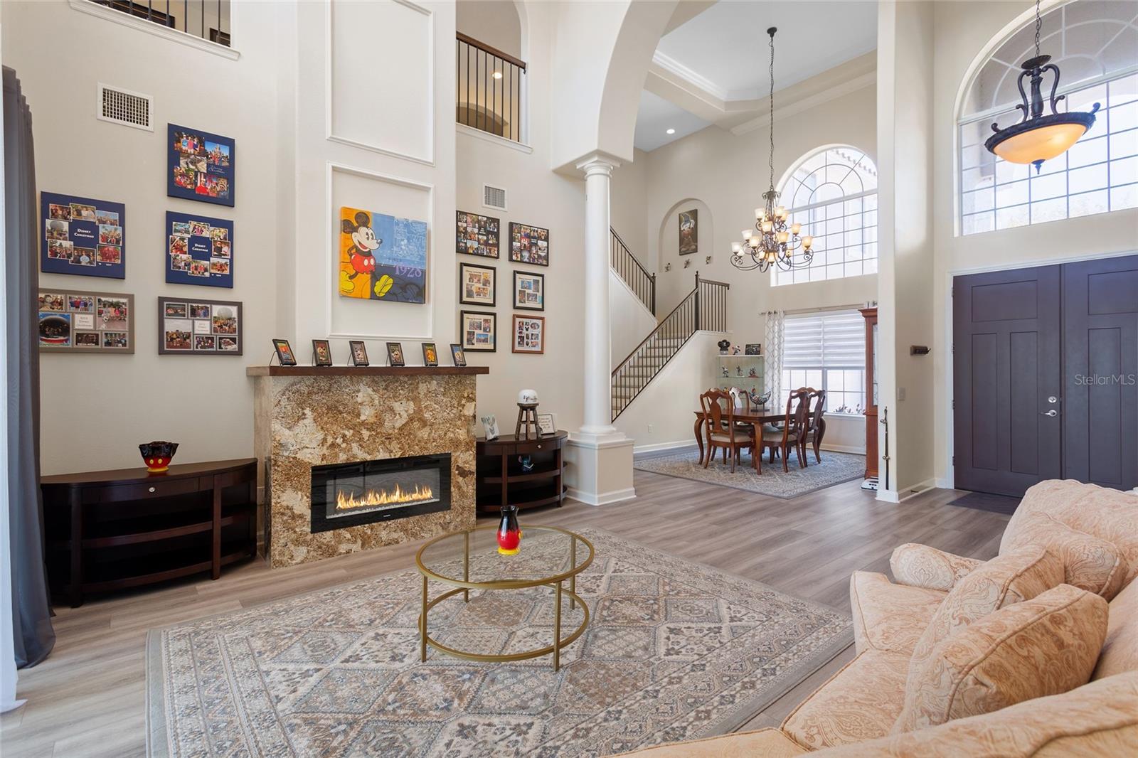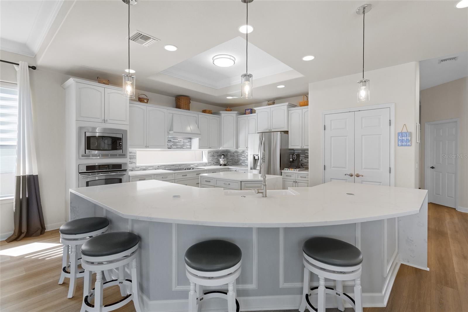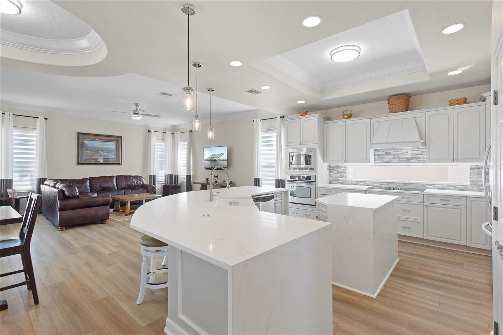 Step inside through brand-new double doors and take in the fresh, contemporary feel with newly painted interiors and exteriors. The spacious floor plan includes a dedicated theater room, a versatile home office, and an impressive primary suite tucked away on the main level for ultimate privacy. This owner’s retreat features custom dual closets and a completely remodeled en-suite with a spa-like ambiance—highlighted by a freestanding soaking tub, an oversized walk-in shower, and double vanities with striking waterfall countertops. LVP flooring and tray ceilings add a refined touch to the space. The heart of the home is the fully renovated kitchen, designed to impress with sleek quartz waterfall countertops, a stylish farmhouse sink, and updated appliances. Whether you’re cooking a gourmet meal or entertaining guests, this kitchen is a true showstopper. The main level has been upgraded with new flooring throughout, and the second floor also boasts fresh updates, including plush carpeting in the theater room. Upstairs, a spacious loft provides a flexible living area, accompanied by two additional bedrooms and two full bathrooms. Movie lovers will appreciate the tiered-seating theater room, which comes fully equipped for an immersive cinematic experience. Outside, the home continues to impress with a three-car garage featuring an EV charging plug, updated landscaping with decorative curbing, and a brand-new pool heater. The backyard is a private oasis, complete with no rear neighbors, a sparkling pool, spa, oversized covered patio, and a screened enclosure—perfect for year-round enjoyment. Located in the guard-gated Providence community, residents enjoy world-class amenities, including a championship golf course, two resort-style pools, a clubhouse, a fitness center, tennis courts, a dog park, and scenic walking trails. This exceptional home is move-in ready and offers a rare opportunity to experience luxury living in one of Central Florida’s premier communities. Don’t miss your chance—schedule your private showing today!