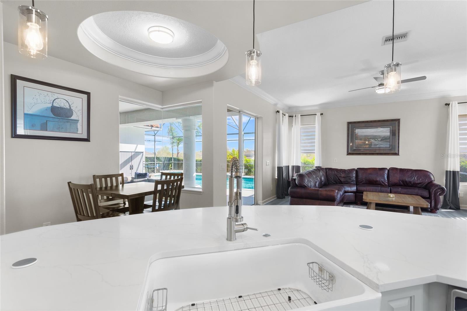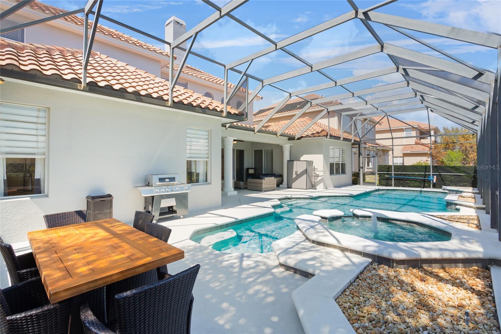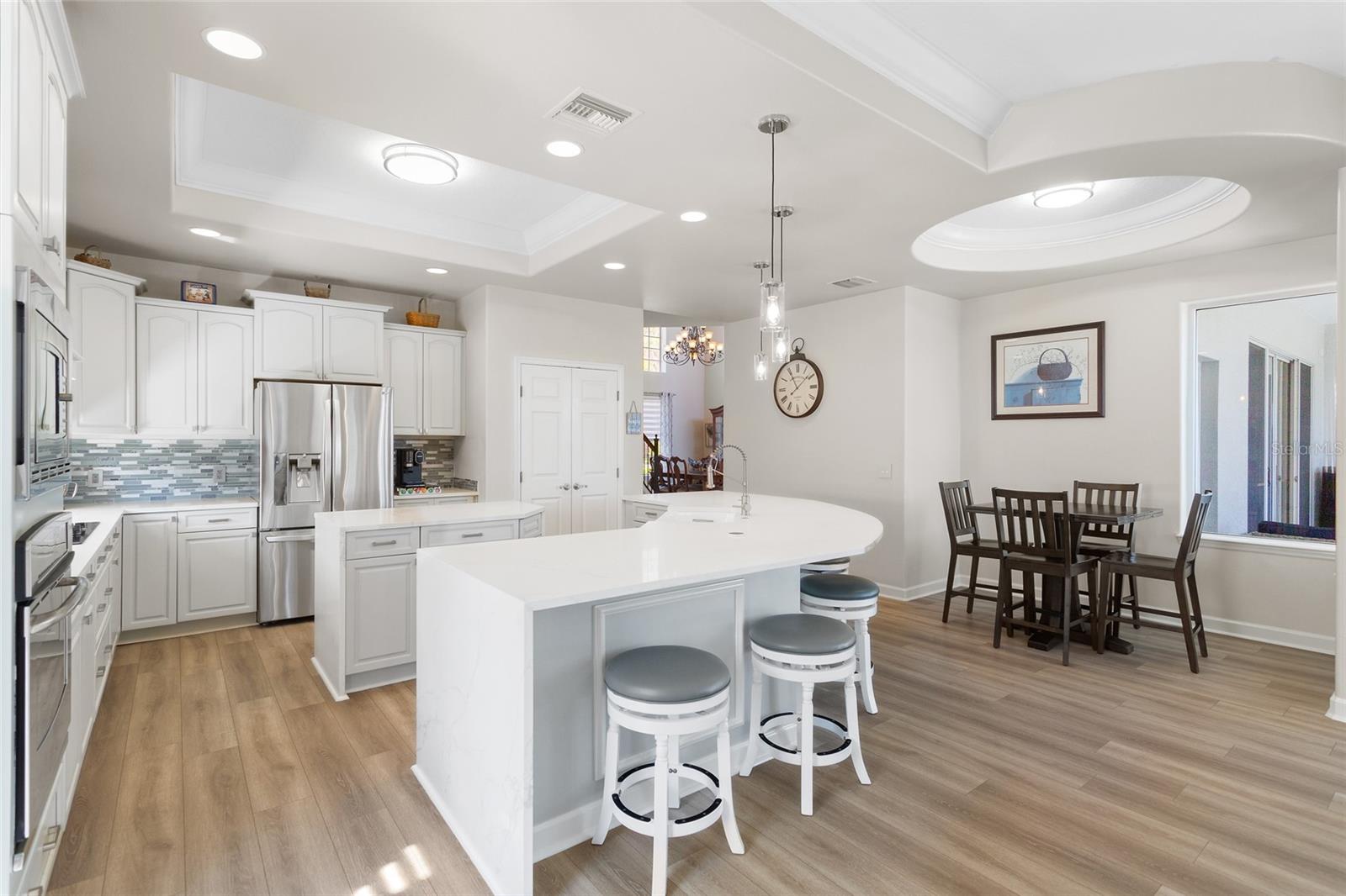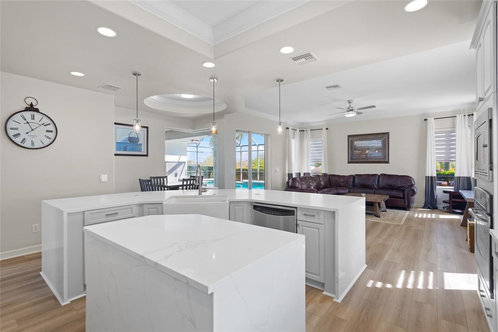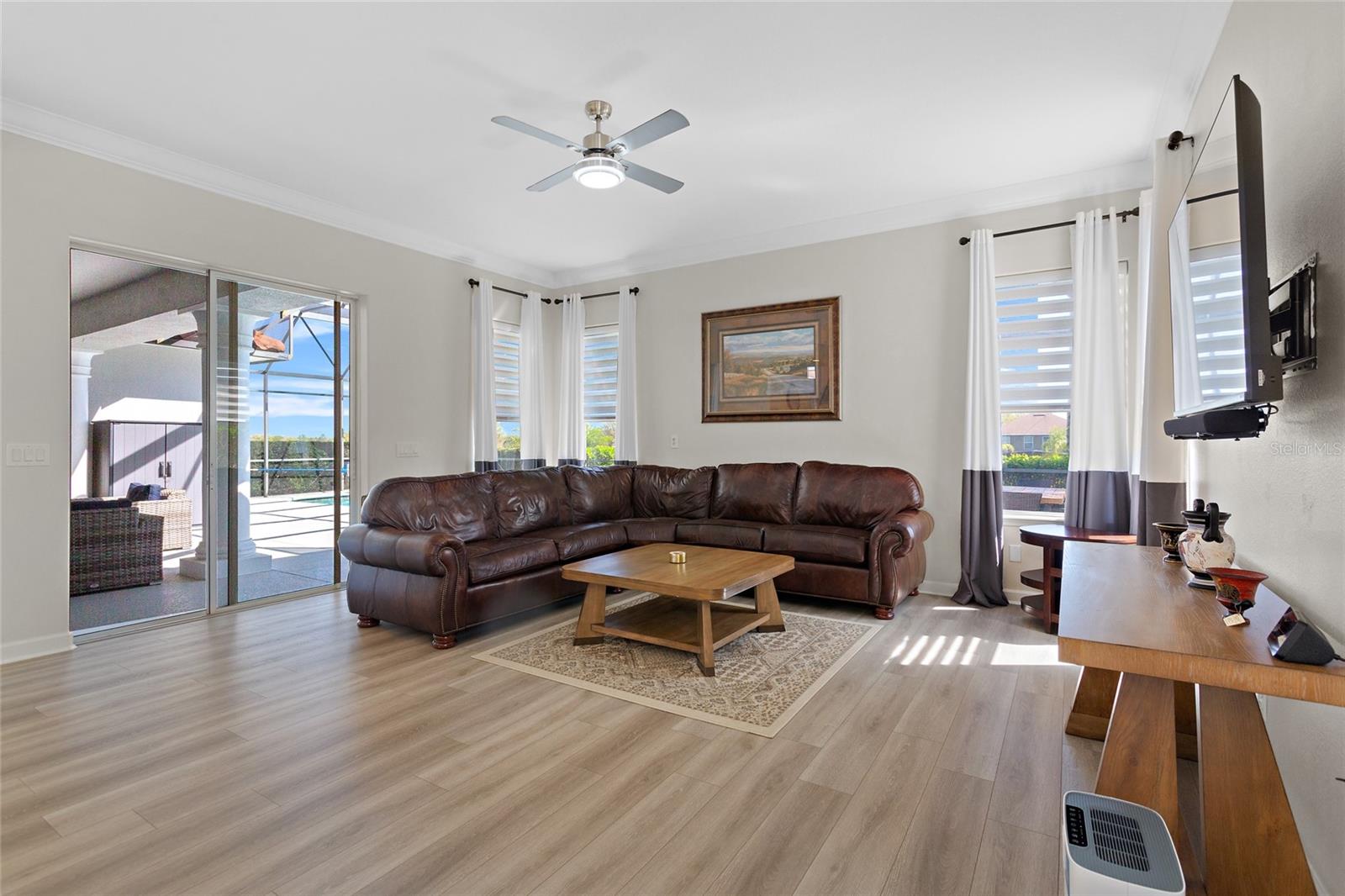 Step inside through brand-new double doors and take in the fresh, contemporary feel with newly painted interiors and exteriors. The spacious floor plan includes a dedicated theater room, a versatile home office, and an impressive primary suite tucked away on the main level for ultimate privacy. This owner’s retreat features custom dual closets and a completely remodeled en-suite with a spa-like ambiance—highlighted by a freestanding soaking tub, an oversized walk-in shower, and double vanities with striking waterfall countertops. LVP flooring and tray ceilings add a refined touch to the space. The heart of the home is the fully renovated kitchen, designed to impress with sleek quartz waterfall countertops, a stylish farmhouse sink, and updated appliances. Whether you’re cooking a gourmet meal or entertaining guests, this kitchen is a true showstopper. The main level has been upgraded with new flooring throughout, and the second floor also boasts fresh updates, including plush carpeting in the theater room. Upstairs, a spacious loft provides a flexible living area, accompanied by two additional bedrooms and two full bathrooms. Movie lovers will appreciate the tiered-seating theater room, which comes fully equipped for an immersive cinematic experience. Outside, the home continues to impress with a three-car garage featuring an EV charging plug, updated landscaping with decorative curbing, and a brand-new pool heater. The backyard is a private oasis, complete with no rear neighbors, a sparkling pool, spa, oversized covered patio, and a screened enclosure—perfect for year-round enjoyment. Located in the guard-gated Providence community, residents enjoy world-class amenities, including a championship golf course, two resort-style pools, a clubhouse, a fitness center, tennis courts, a dog park, and scenic walking trails. This exceptional home is move-in ready and offers a rare opportunity to experience luxury living in one of Central Florida’s premier communities. Don’t miss your chance—schedule your private showing today!
