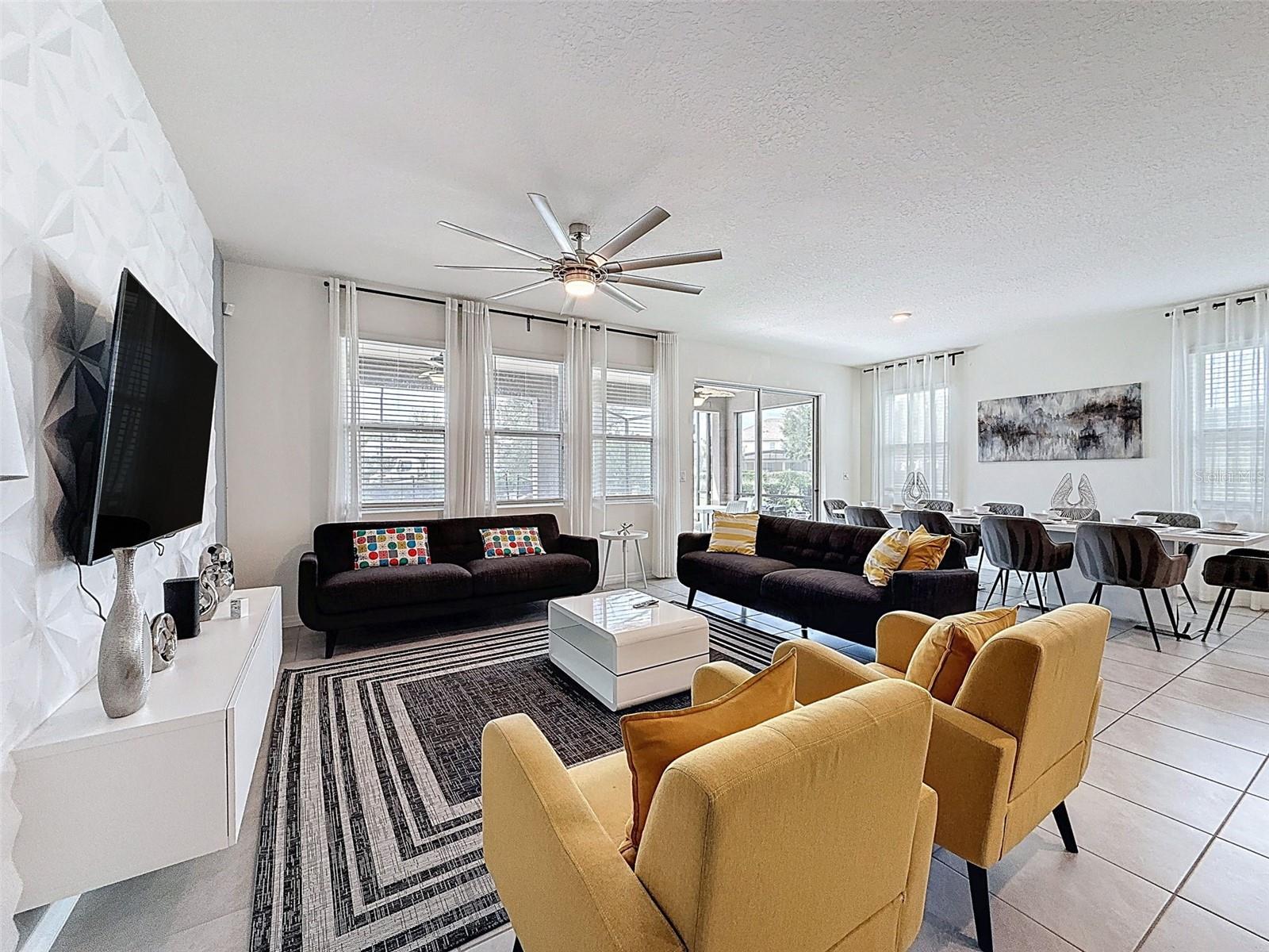 Whether you’re looking for a full-time residence, luxury vacation home, or income-producing short or long term rental investment, this property is ideally located. This 7-bedroom, 5.5-bath pool home is located in the exclusive, guard-gated community of Solterra Resort. What sets this home apart is its premium lot with no rear neighbors, offering exceptional privacy. Add side shades to the screened lanai and it can feel like your own private island! The modern, high-end interior design features sleek, neutral furnishings accented with pops of yellow and blue, creating an elegant and sophisticated atmosphere that truly wows...making this home the one to choose! With combined HOA and CDD fees averaging only about $625 per month, owners receive outstanding value. Mowing, fertilizing, exterior pest control, landscaping and irrigation system maintenance, cable, internet, and valet trash pickup are all included. Purchased separately, these services could easily cost $300+ per month. Add in Solterra’s luxury amenities and picturesque setting and it’s clear why this fee is so competitive compared to other resort communities charging $700+ monthly. Solterra’s world-class amenities include a resort-style pool, lazy river, water slide, cabanas, splash zone, fitness center, tennis, pickleball, and volleyball courts, a clubhouse and the Café Sol poolside bar & grill. The home itself is equally impressive, offering a spacious open floor plan with abundant natural light, a gourmet kitchen with gas stove, granite countertops and stainless steel appliances, multiple living areas including two primary suites(one downstairs & one upstairs)with ensuite baths, 2 additional bedrooms with a Jack & Jill ensuite bath and a loft for an additional living area. The tile roof offers a potential lifespan of more than 50 years. The private heated pool and spa with an expansive patio and exterior bathroom create the perfect retreat on this superior lot with no rear neighbors—so no risk of awkward staring contests across the way! Currently operating as a short-term rental, existing bookings may convey if the buyer continues with the current management company. near Disney, Universal, shopping, dining, and major highways. Don’t forget to check out the Virtual Tour link for an immersive 3D experience…. where you can walk through the home, explore every angle, and zoom in or out to see all the details.