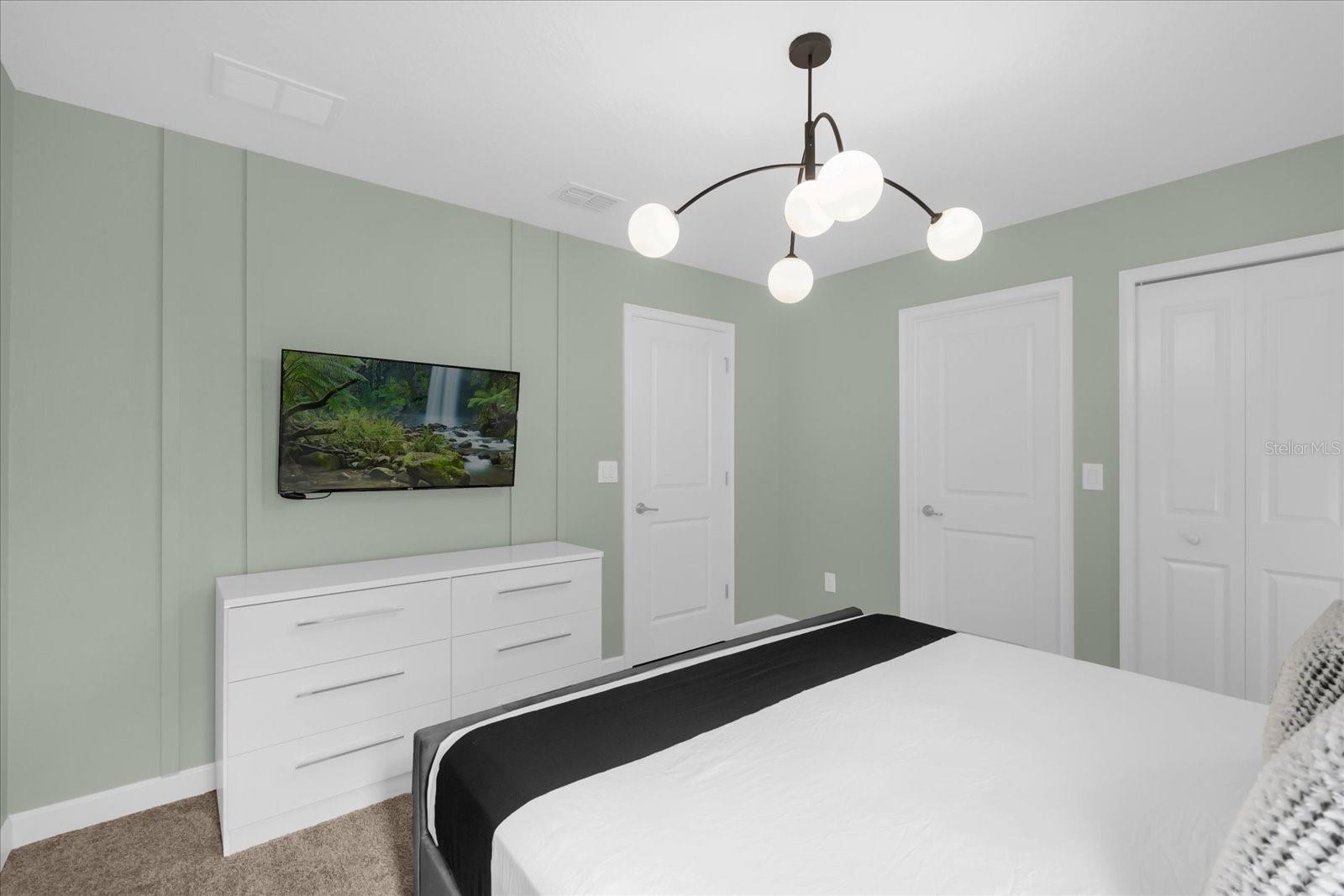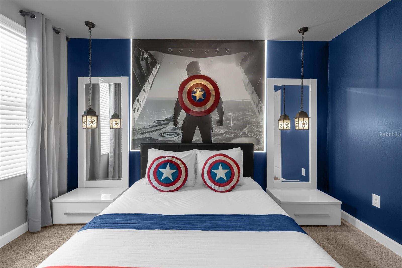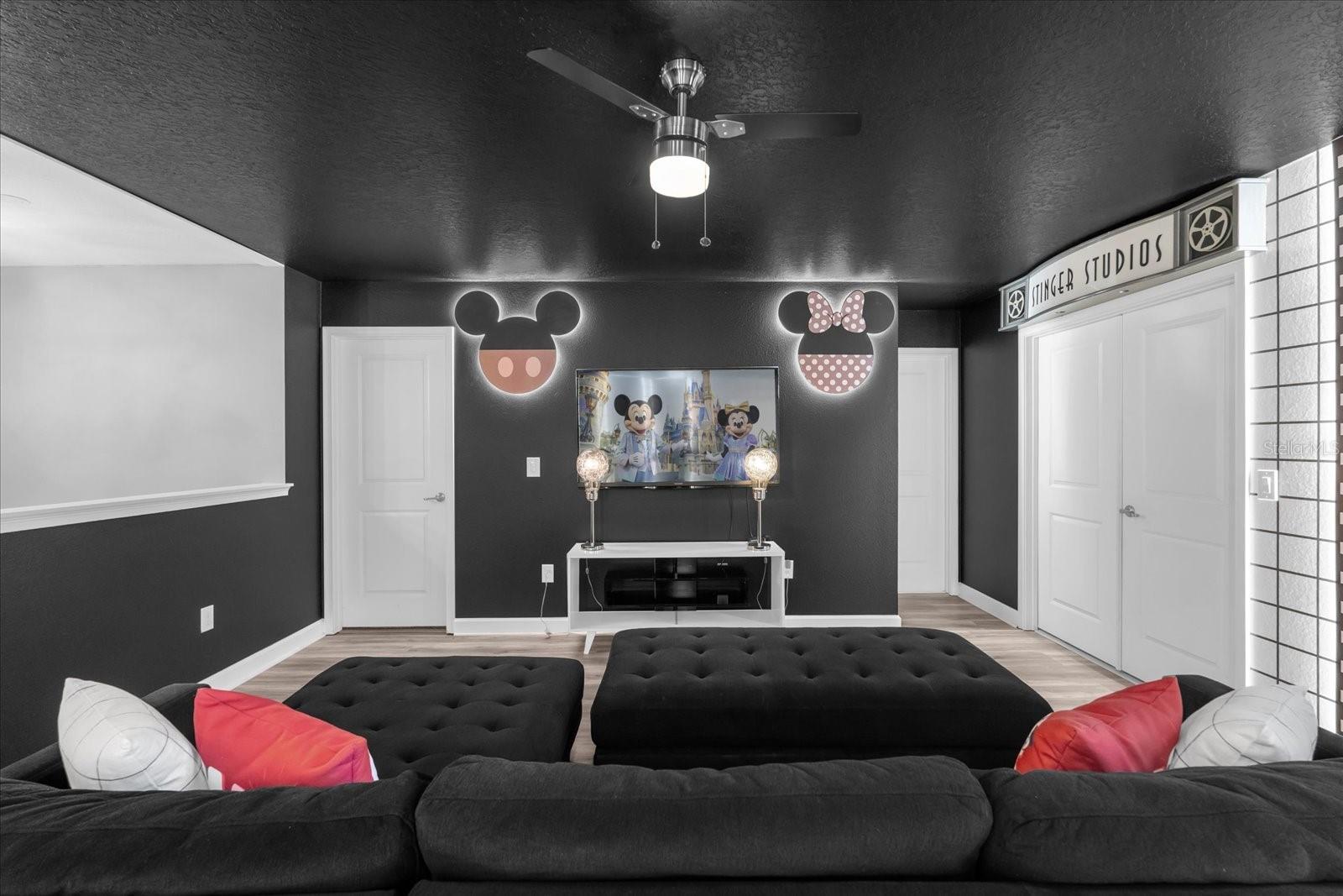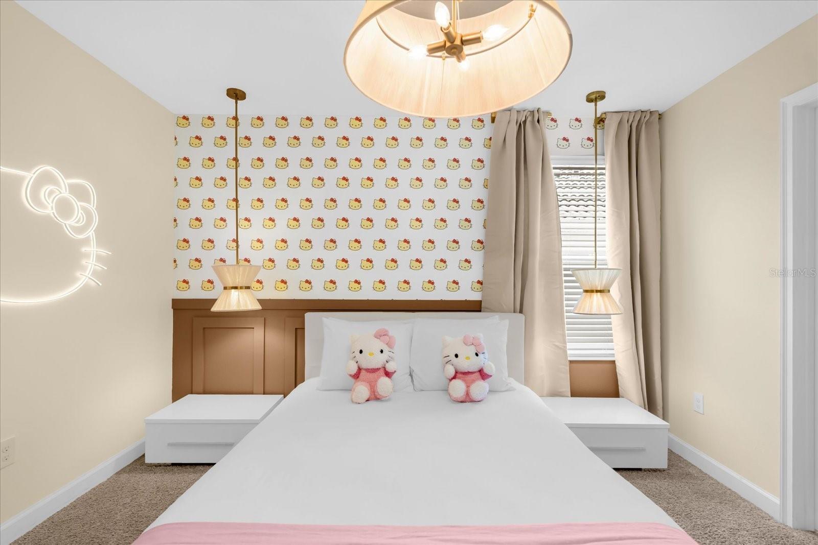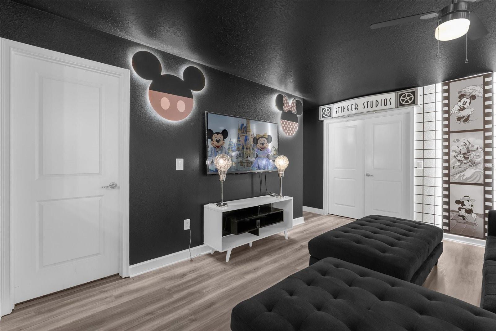 Welcome to this spectacular 8-bedroom, 5-bathroom fully furnished home located in the highly sought-after Retreat at Champions Gate, one of Orlando's premier gated resort communities. Whether you're seeking a high-performing short-term rental or a luxurious second home, this property delivers both style and income—with over $120K in gross rental income in 2023! Professionally designed and filled with natural light, this home features themed bedrooms, a converted game room, and spacious living areas perfect for entertaining. The main level offers two bedrooms, including a primary suite with direct access to the pool deck and an en suite bath with a dual vanity, soaking tub, and glass-enclosed shower. The open-concept kitchen boasts 42" shaker style cabinets, granite countertops, stainless steel appliances, and a bar seating area—flowing seamlessly into the dining and family room. Step outside to enjoy the screen-enclosed pool and lanai, perfect for relaxing or hosting guests. Upstairs, a cozy loft TV room is surrounded by six additional bedrooms and a bonus room that can be converted into a 9th bedroom. The garage-turned-game-room is air-conditioned with epoxy flooring and features a pool table—ensuring endless fun for guests. Just a short walk to the Oasis Clubhouse, where world-class amenities include a lazy river, water slides, splash pad, resort-style pool, fitness center, movie theater, arcade, restaurant, Tiki Bar, and more. A free community shuttle provides easy access to all amenities and nearby golf courses. Located just minutes from Disney, major highways, shopping, and dining, this home is in a zoning phase that allows both short- and long-term rentals—with no restrictions on owner stays. Don’t miss your chance to own one of the most desirable and versatile properties in Central Florida!