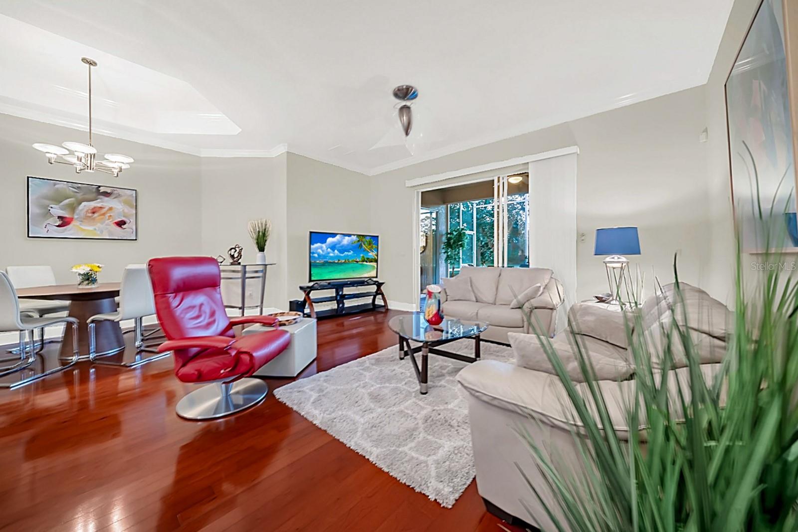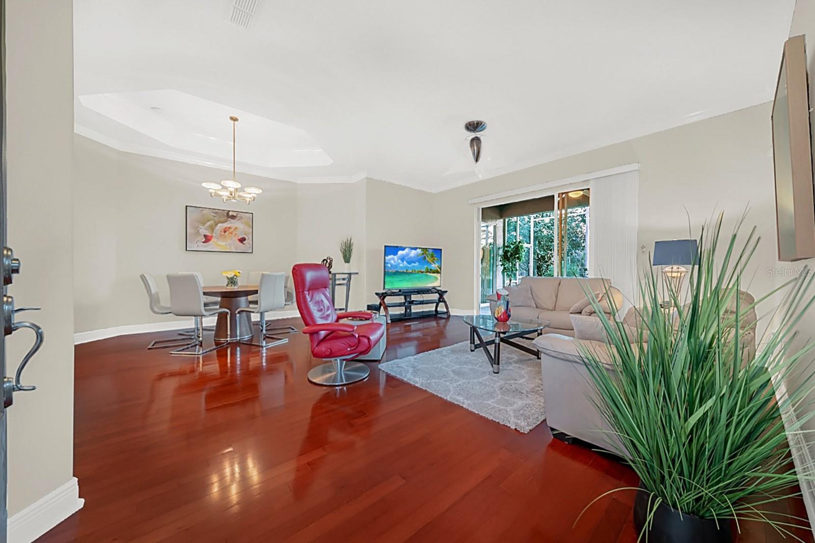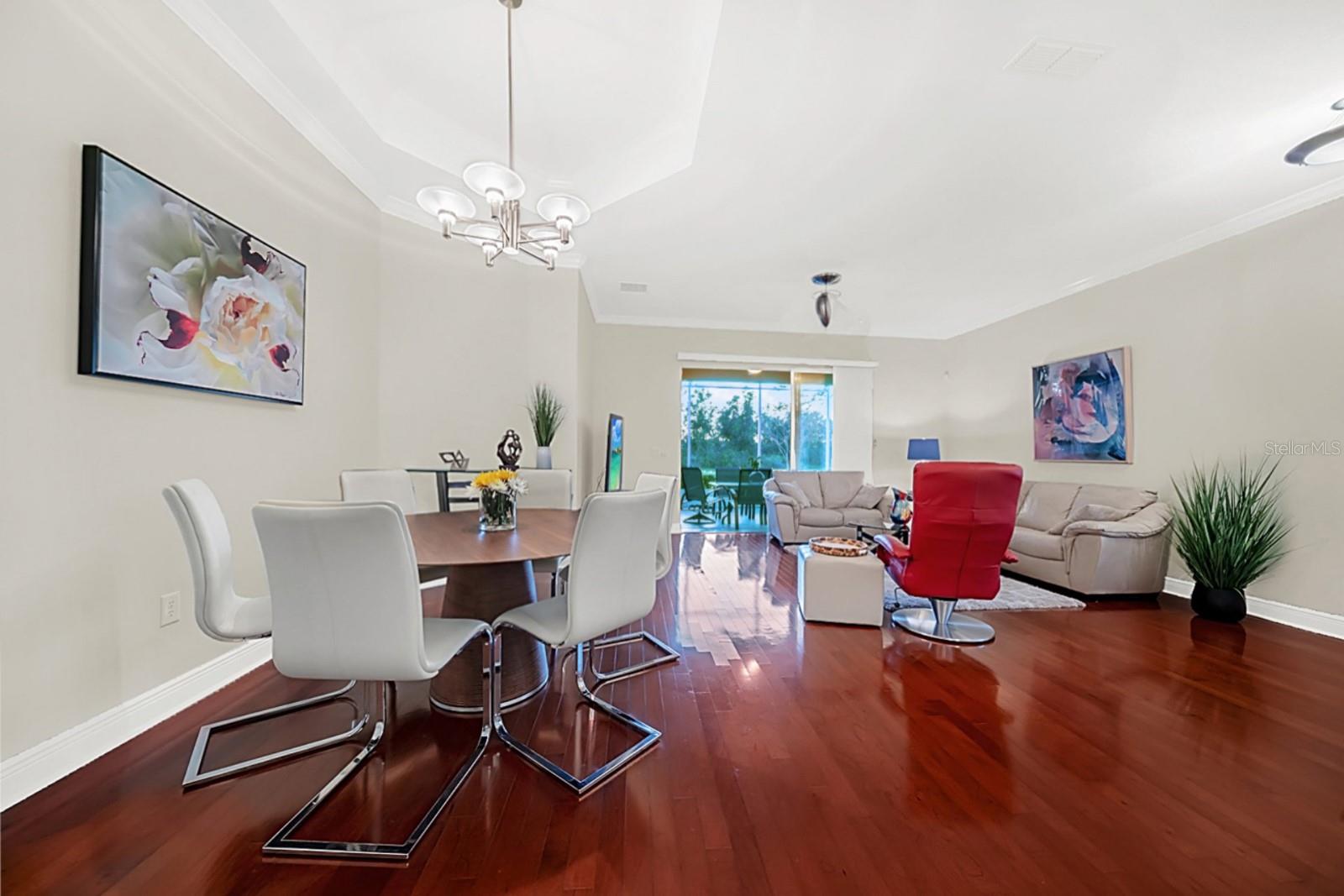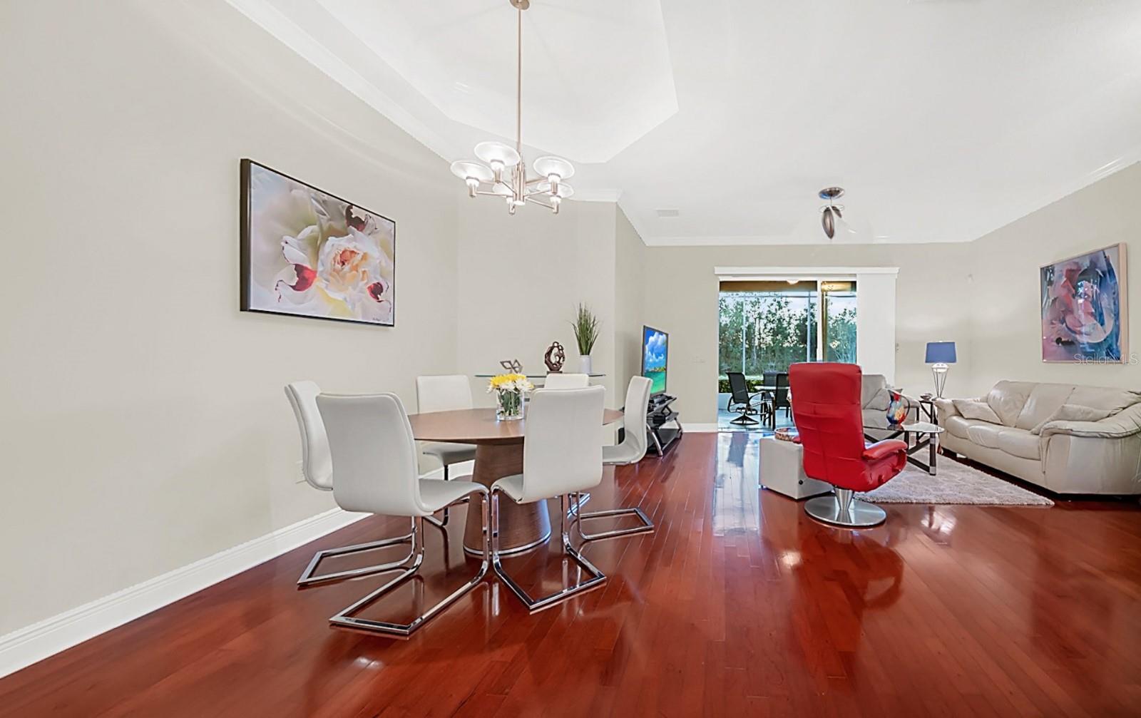 The main living area is quite impressive with ENGINEERED WOOD FLOORING and an OCTANGULAR TRAY CEILING defining and elevating the dining area for more than just daily routine meals.