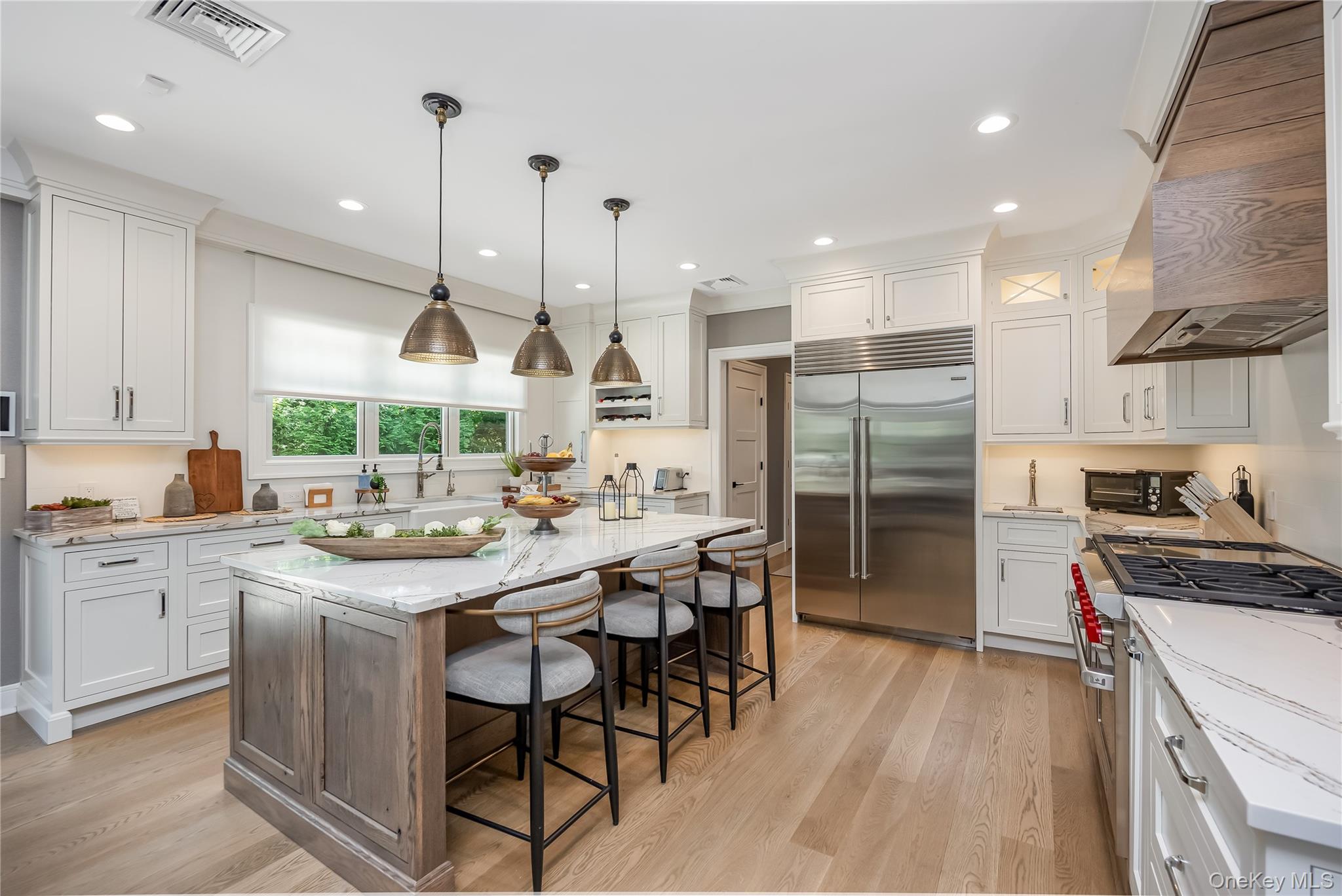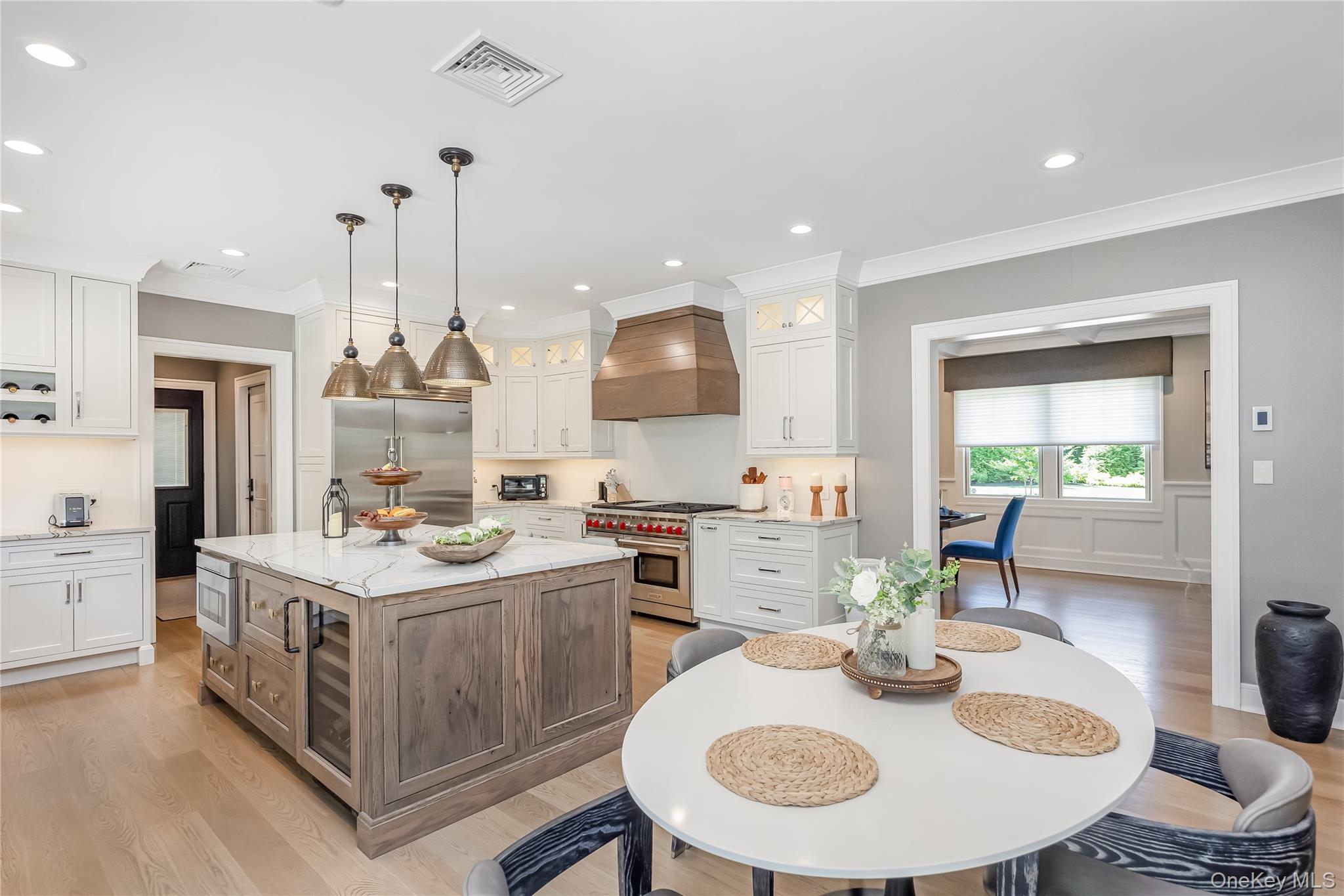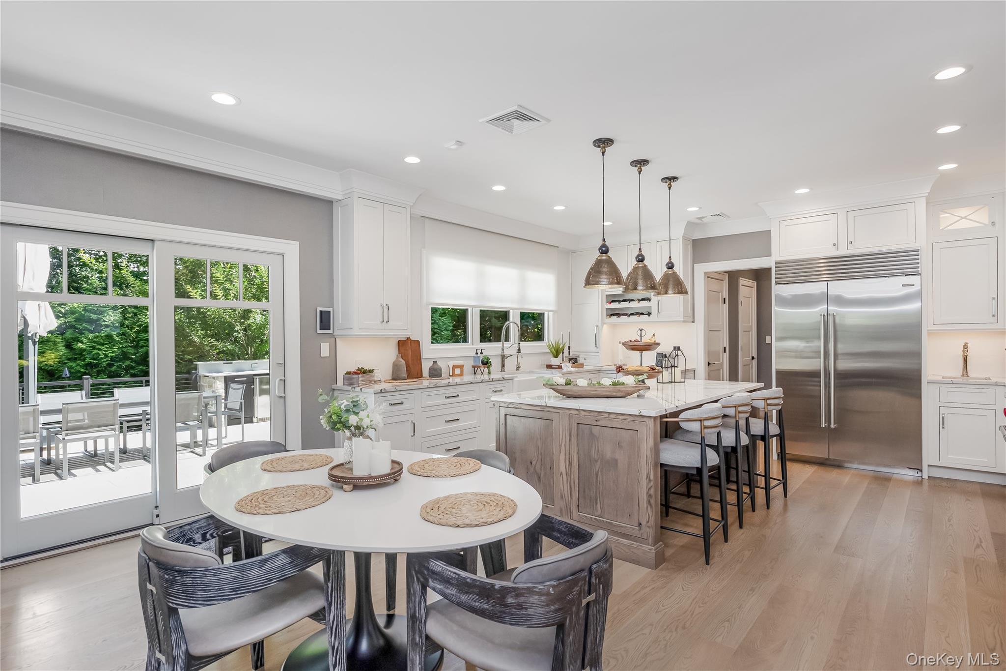 Welcome to your dream home—an elegant gated 9-room Colonial nestled in one of the most vibrant and sought-after suburban communities. Blending timeless architecture with luxurious modern upgrades, this residence is a true masterpiece inside and out! Step inside to discover expansive living and dining areas, both adorned with custom built-in cabinetry and a charming wood-burning fireplace in the living room. Crystal sliding glass door opens into a dedicated office featuring a built-in desk designed to accommodate two workstations, ideal for remote professionals or creative pursuits. A culinary enthusiast’s paradise awaits including Wolf professional-grade stove, Sub-Zero refrigerator, Marvel wine fridge, Beko hidden dishwasher, High-end Candlelight cabinetry, sleek Cambria countertops, & a 2nd utility sink. Whether you're preparing weekday meals or hosting guests, this kitchen seamlessly combines function and style. Lutron lighting and shade system, as well as a filtered water system throughout the entire house. Your sanctuary awaits in the spacious master bedroom, featuring a cozy gas fireplace and a fully customized Candlelight closet system. The en-suite bathroom offers spa-like luxury with Cambria countertops and rich Candlelight cabinetry. Convenience and elegance continue upstairs with custom cabinetry and a fully equipped laundry room featuring LG washer and dryer units. Entertain in style in your fully finished basement to include: Full bar with Cambria countertops, Marvel refrigerator, beer tap & keg fridge, and Sub-Zero ice machine, Silhouette professional wine cellar (approx. 50-bottle capacity), Glass-enclosed room perfect for a home gym or studio, Built-in Candlelight cabinetry for sleek storage Your outdoor oasis is an entertainer’s dream. The backyard features: • Built-in XO BBQ station • Marvel outdoor refrigerator • Custom outdoor cabinetry and cooking area Adjacent to your in-ground pool, the charming pool house includes: • Marvel refrigerator • Marvel keg fridge The storage unit behind the pool house is as large as the pool house! Perfect for summer gatherings or serene evenings by the fire. This exceptional home offers a rare blend of luxury, functionality, and style in a lively, community-focused neighborhood. A must-see for discerning buyers who appreciate quality craftsmanship and effortless indoor-outdoor living. Contact us today to schedule your private tour!