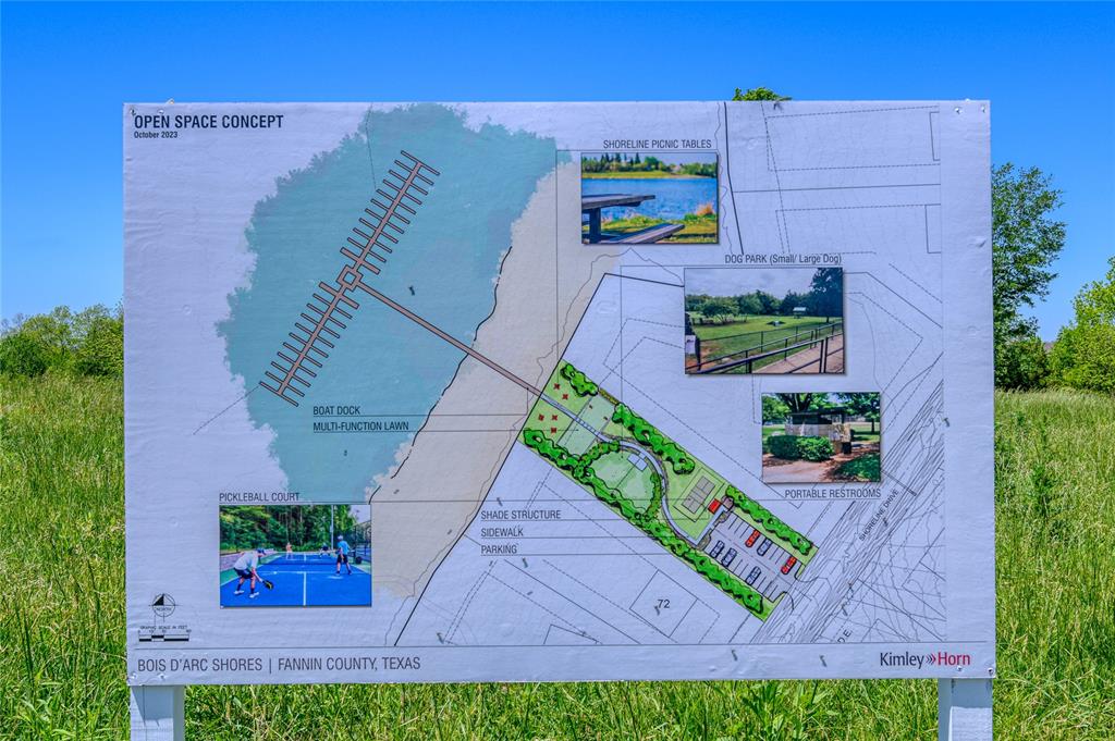 290 Wildflower Way (Lot 114), Dodd City, TX 75438 – Bois d’Arc Shores Lot 114 is a 1.02-acre interior lot in Bois d’Arc Shores, a gated lake community on the west side of Bois d’Arc Lake, just 45 minutes northeast of the DFW Metroplex. Whether you're planning to build your personal lake retreat, a future retirement home, or looking for long-term investment potential, this property offers a solid foundation with both location and amenities on its side. The lot is within a short golf cart ride of the planned common areas on Lot 73 and Lot 34, which will feature community amenities such as a pickleball court, multi-use lawn, shaded gathering spaces, shoreline picnic tables, grilling stations, portable restrooms, and dog parks for both large and small breeds. While this is an interior lot, the lake is never far—the nearest public boat ramp is the FM 897 Boat Ramp, just five minutes away, offering quick access to open water for fishing and recreation. Bois d’Arc Lake has quickly gained recognition for trophy bass fishing and is one of the few areas in the state where hunting is permitted along designated shoreline zones, making this area popular with outdoor enthusiasts. Utilities are now available, and the first home in the community has broken ground, marking the beginning of residential development in Bois d’Arc Shores. As infrastructure and amenities come online, the value of early ownership is expected to grow. This lot offers the flexibility to build on your timeline, making it a smart option for those looking to invest now and build later. Lot 114 provides a peaceful, nature-connected setting with recreational access and long-term upside—ideal for a personal escape or investment in one of North Texas’s emerging lakefront areas. Buyer to verify all information**