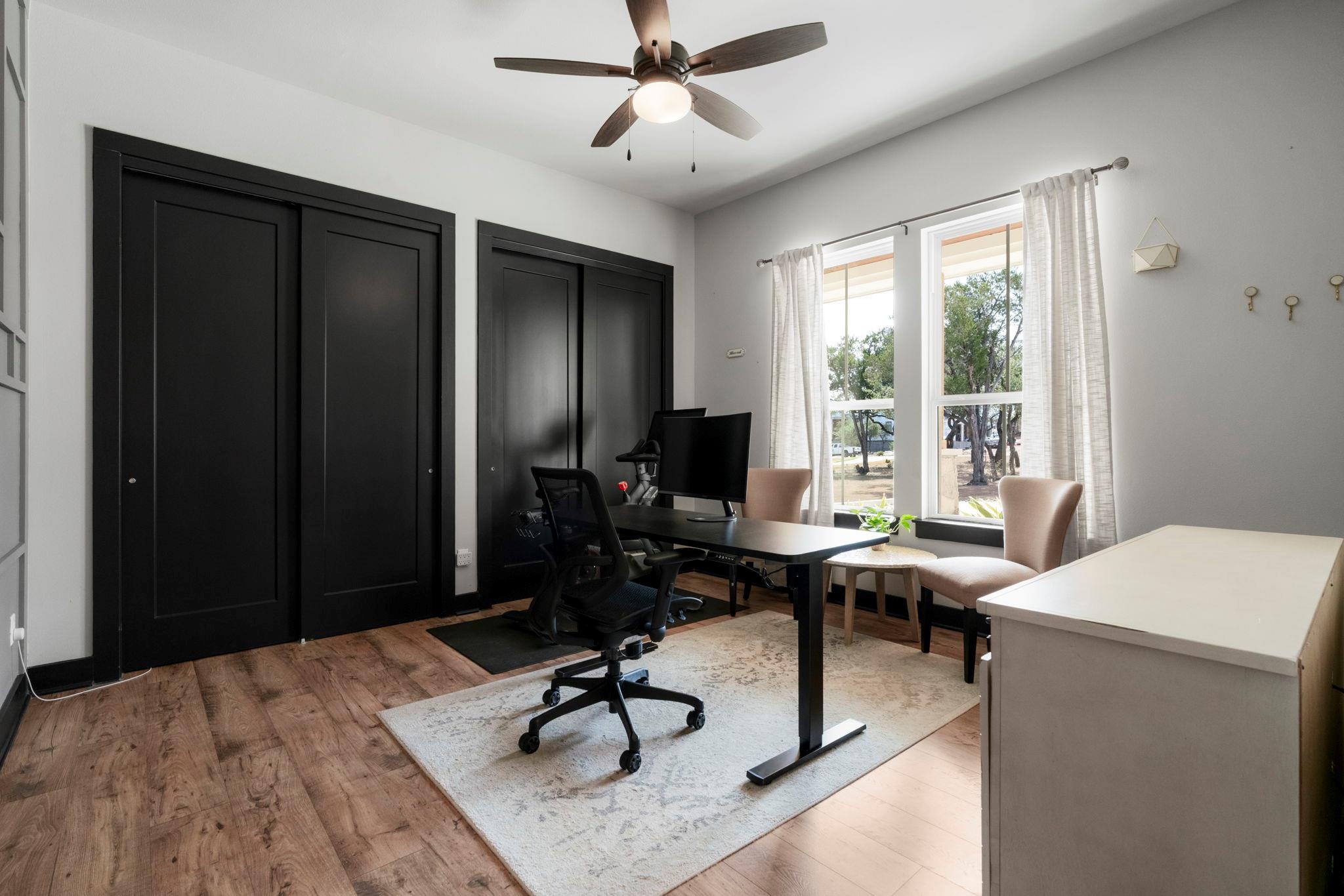 Welcome to 125 Brown Saddle Cove, where refined luxury meets relaxed Hill Country living in one of Driftwood’s most sought-after gated communities! Custom built in 2021, this 3,664 square foot estate captures the perfect balance of sophistication, functionality, and Texas charm, all set on a tree-filled 1.82 acre corner lot that offers rare privacy and space to breathe. Vaulted ceilings, exposed wood beams, and a grand stone fireplace create a dramatic yet inviting main living area, while walls of windows fill the home with natural light. The heart of the home is a true chef’s kitchen, anchored by a 48 inch ZLINE range with double ovens, quartz countertops, abundant cabinetry, and an oversized island built for gathering. Every surface has been thoughtfully designed for beauty and performance, from the durable Mohawk RevWood flooring to the exquisite tilework.The primary suite is a sanctuary of comfort with high ceilings, a spa worthy bathroom, and a closet designed to impress. Four additional well proportioned bedrooms, a large study (can be another bedroom), and an upstairs bonus living area with a full bath make this home ideal for both quiet relaxation and lively entertaining. Energy efficient features such as blown cellulose insulation, PEX plumbing, and a hybrid electric water heater ensure modern comfort and sustainability. La Ventana offers an unparalleled lifestyle. Enjoy three resort style pools, a relaxing spa, tennis and pickleball courts, a putting green, a driving range, and scenic equestrian trails. Residents even share ownership of the community’s iconic longhorns, adding to its unmistakable Hill Country charm. Located 25 miles from Downtown Austin and minutes from local favorites like The Salt Lick BBQ and Duchman Family Winery, this home delivers the ultimate Driftwood experience, luxury living surrounded by nature, community, and timeless Texas beauty. Schedule your private showing today and discover why life in La Ventana is truly extraordinary.