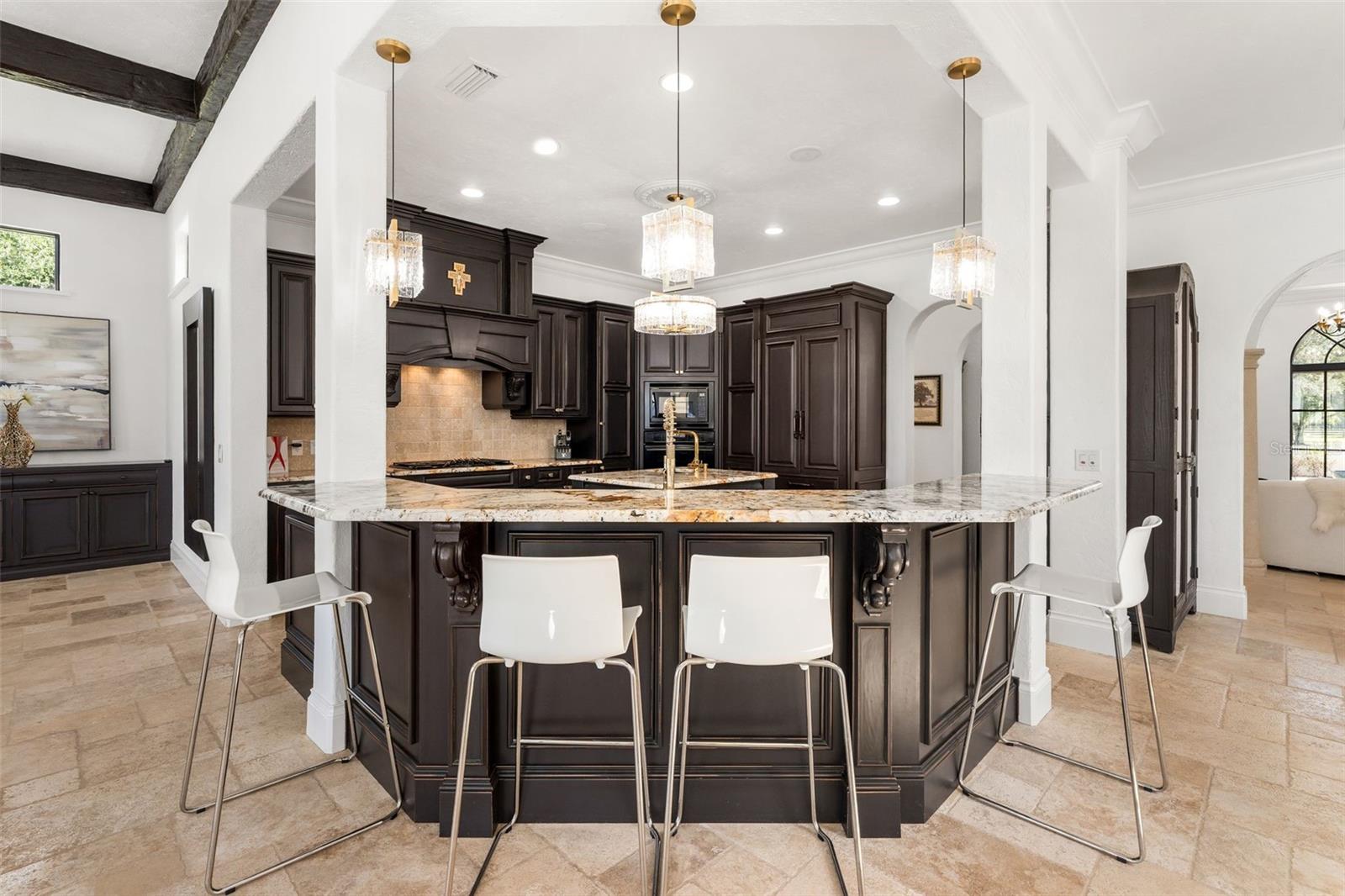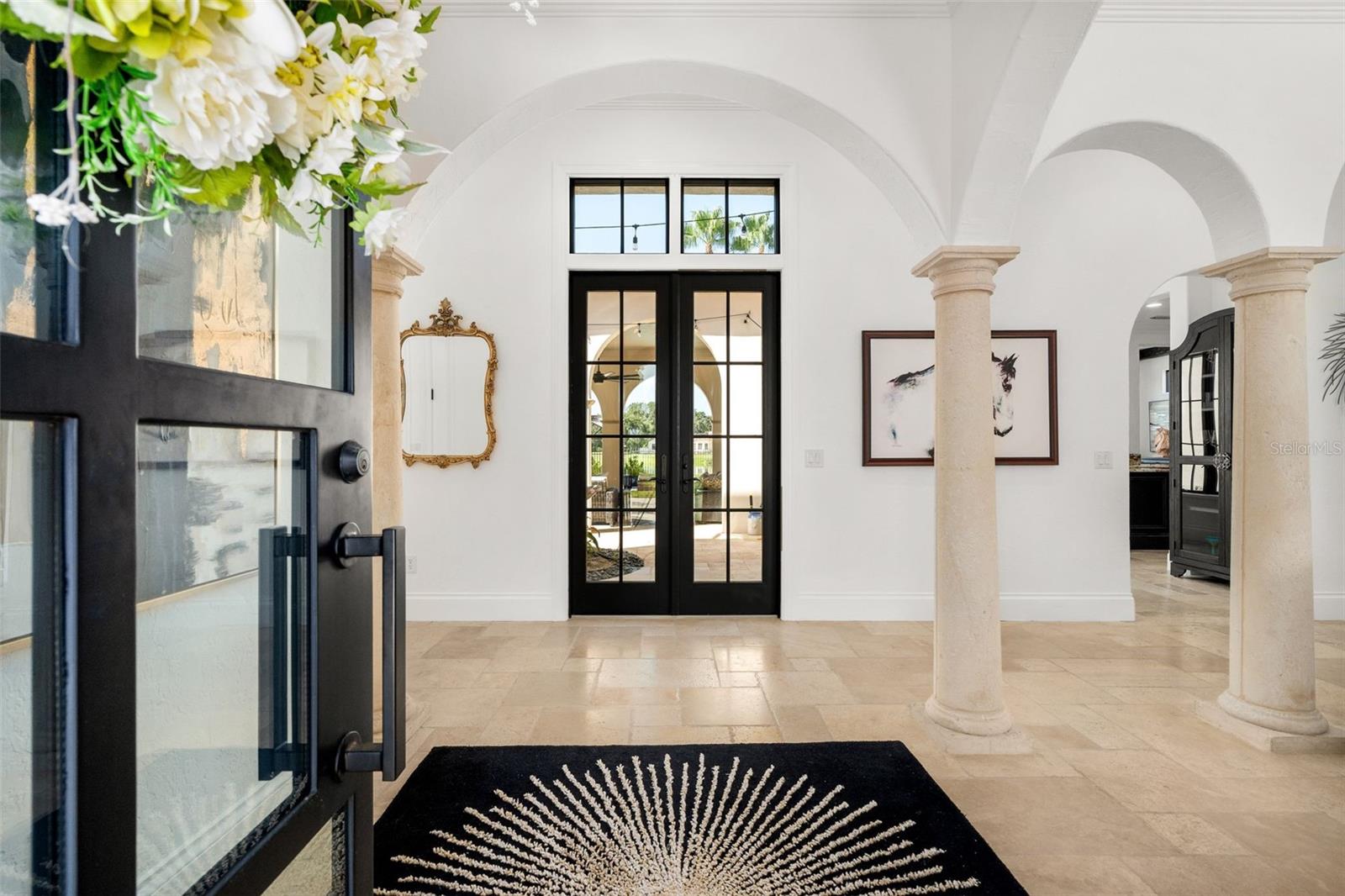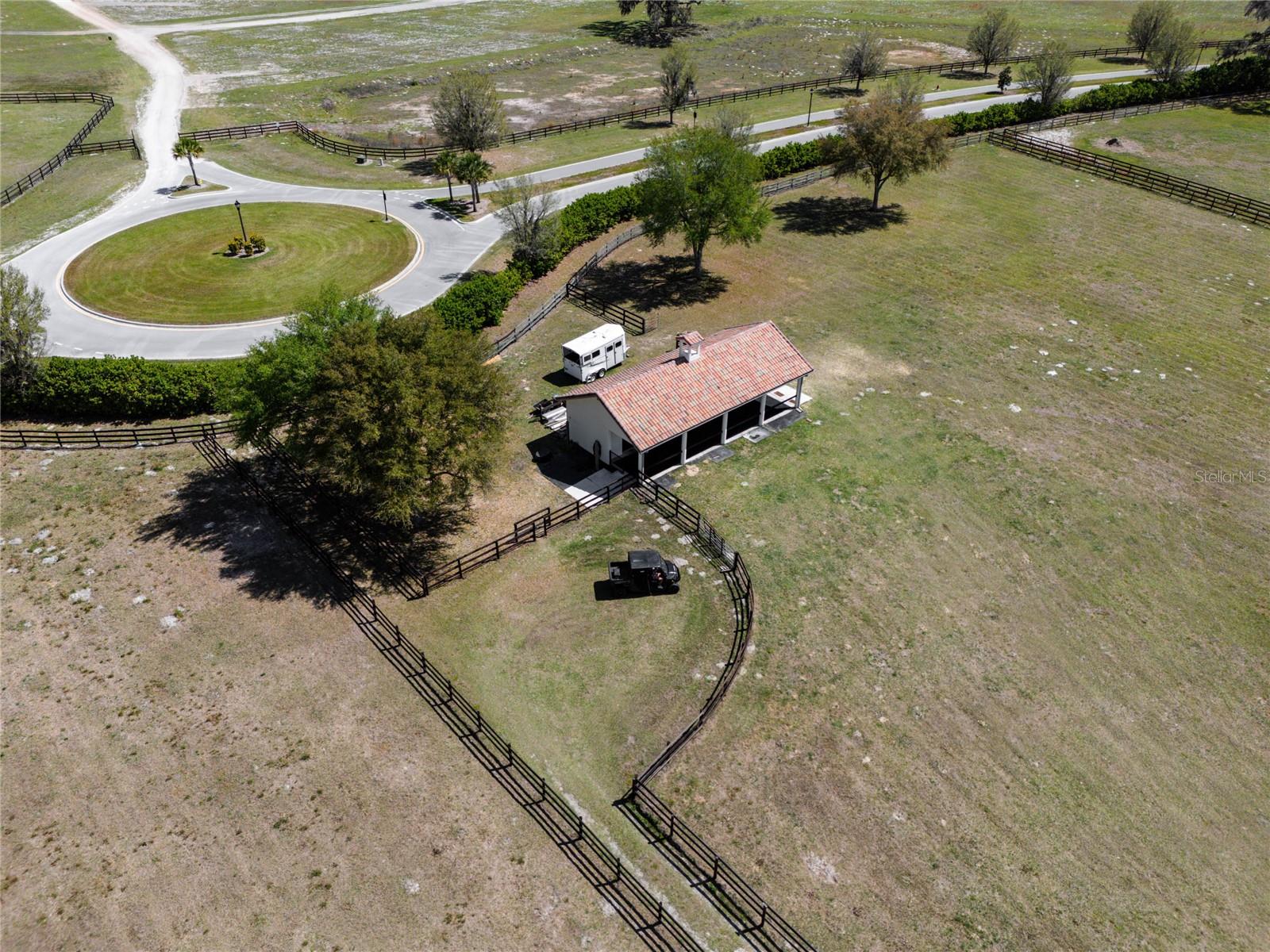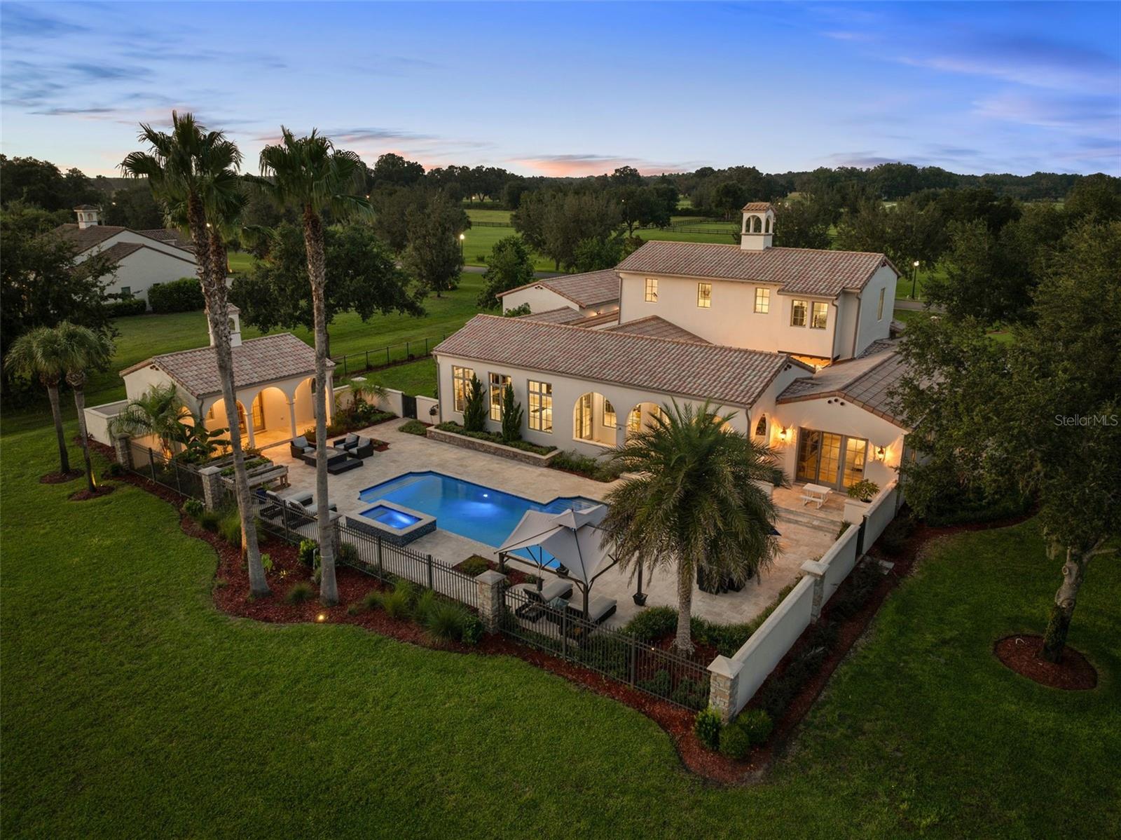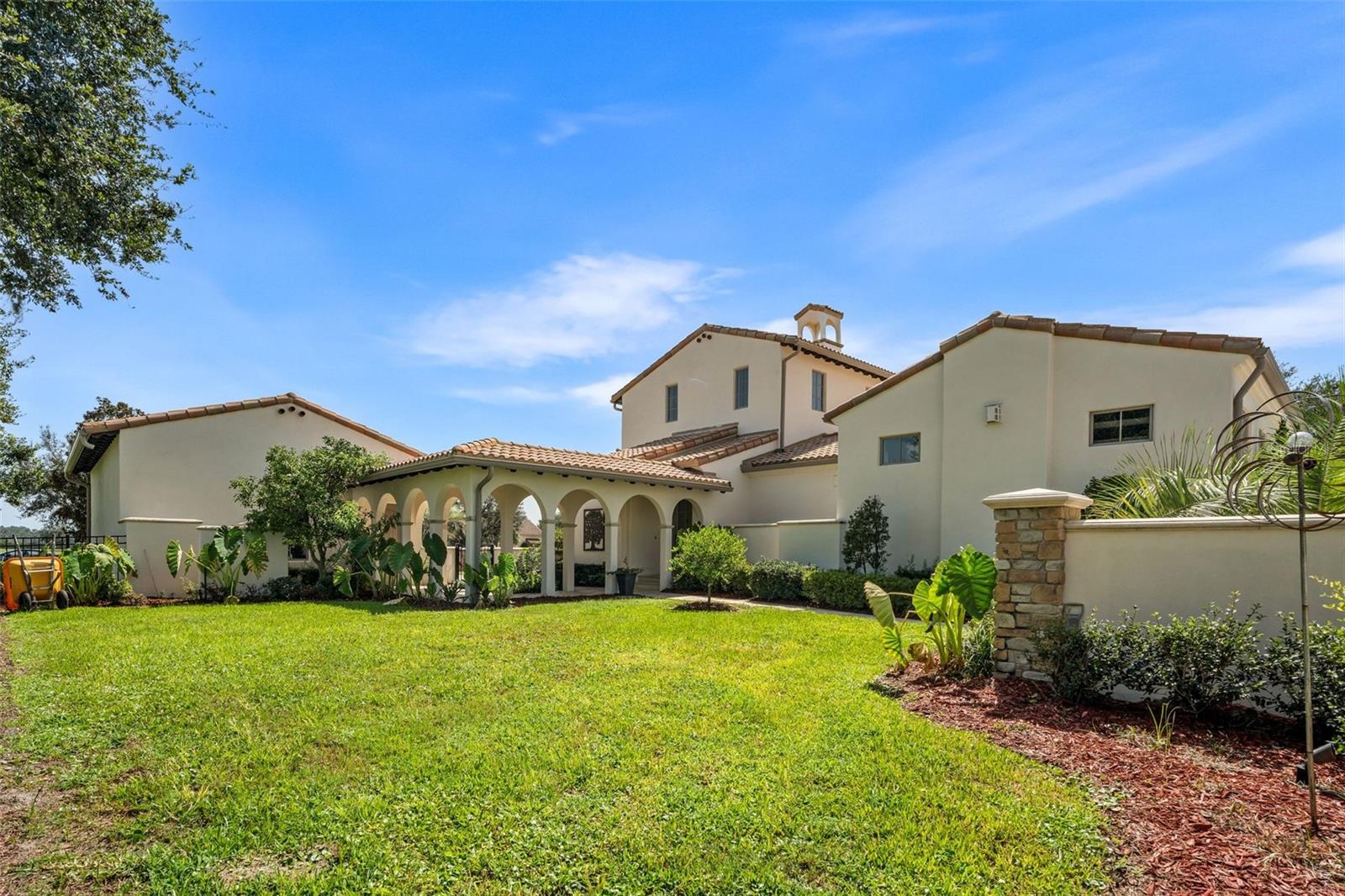 Welcome to a one-of-a-kind equestrian estate in Bel-Lago, the exclusive gated community whose name translates to “beautiful lake” in Italian. Nestled in the heart of Ocala’s horse country, Bel-Lago is a premier enclave offering lakefront and equestrian properties. Here, a rare opportunity awaits: a lakefront estate paired with a buildable equestrian lot, complete with a custom 2-stall block barn built in 2022. Bring your horses, and enjoy the stunning lakefront views. Originally crafted as the developer’s own residence, this Modern Mediterranean masterpiece was designed to capture sweeping lake views from nearly every room. Every inch of its 4,000+ sqft is marked by distinctive details and elevated finishes, even including a 500+ sqft detached guest casita. The main home offers 4 bedrooms, 3.5 bathrooms, a private dining room or den, and a 3-car garage. The garage features custom shelving and a Culligan water system with charcoal filters. The casita provides a 1-bedroom, 1-bathroom suite with kitchenette, currently enjoyed as a home theater. Step inside to discover timeless craftsmanship paired with modern luxury: an arched impact-rated glass front door, soaring ceilings with coffered and tray detailing, Travertine and white oak floors, rustic beams, and graceful archways - all accentuated by a modern white, black, and gold color palette. Entertain with ease with a whole-home surround-sound system, a private courtyard with fountain, and a brand-new (2025) outdoor kitchen fully equipped with refrigerator, reverse osmosis ice maker, dishwasher, and high-end gas grill. Outdoors, enjoy a heated saltwater pool and spa as the sun sets across the lake. Set on 1.40 acres of manicured grounds shaded by Live Oaks and citrus trees, the property overlooks a fully stocked lake that attracts waterfowl and even Bald Eagles - your own private bird sanctuary. On your spacious equine lot, you’ll find a buildable homesite, creosote 3-board fenced paddock, and an impressive 2-stall barn. Designed with durability and functionality in mind, the barn features inset rubber pavers, metal barn boards, sealed LED lighting, and a Hardie board ceiling. Each 12x12 stall includes custom steel doors, Nelson automatic waterers, and sloped flooring for a no-shaving and easy-drain environment. Behind an arched wooden door, an A/C tack room and office with custom shelving awaits, along with an A/C feed room with half bath. A wash rack and fly spray system complete the setup. With a blend of elegance, functionality, and exclusivity, this estate offers the very best of both worlds - waterfront serenity and equestrian excellence - in one of Ocala’s most coveted communities.