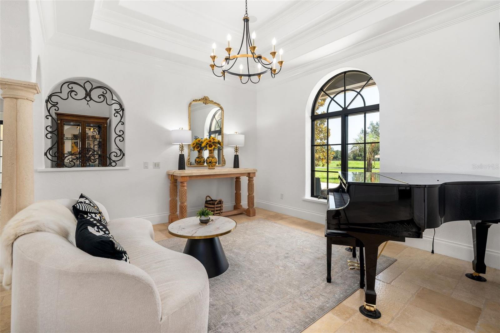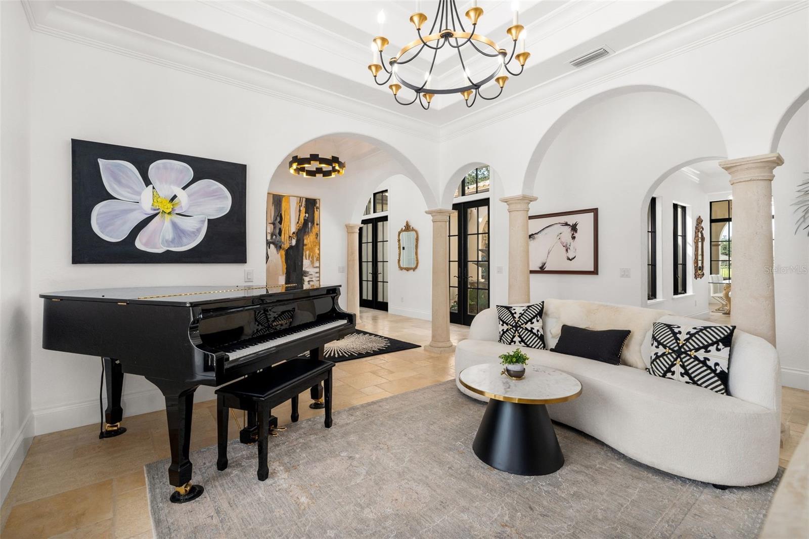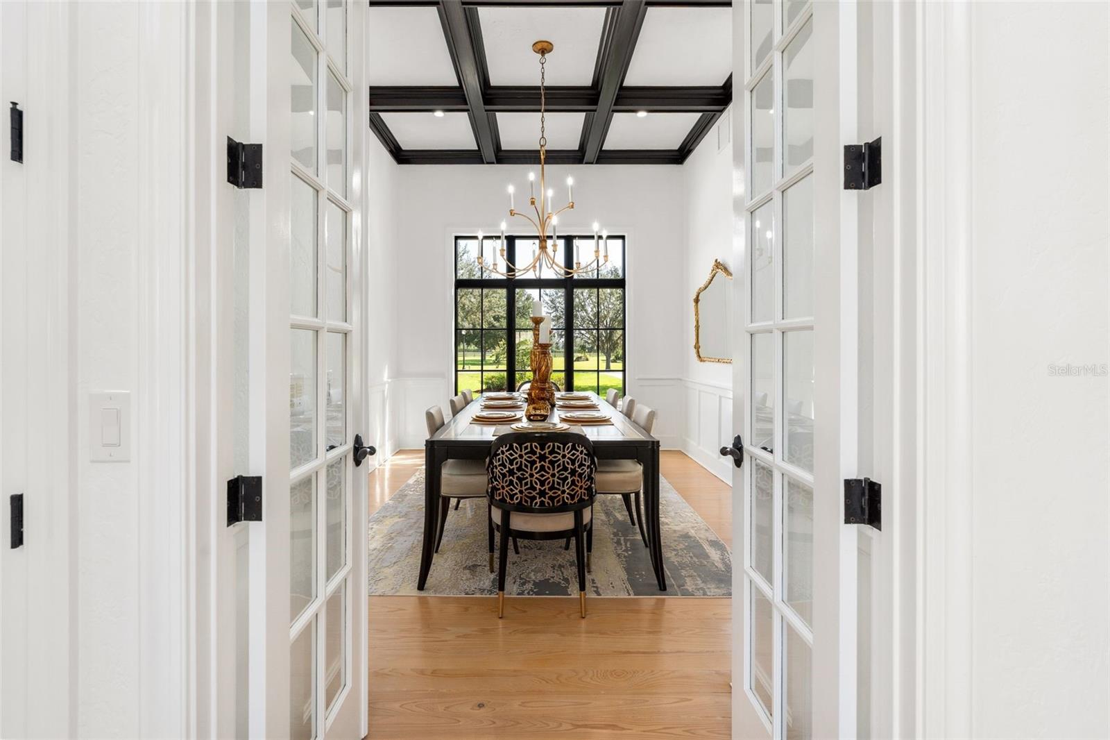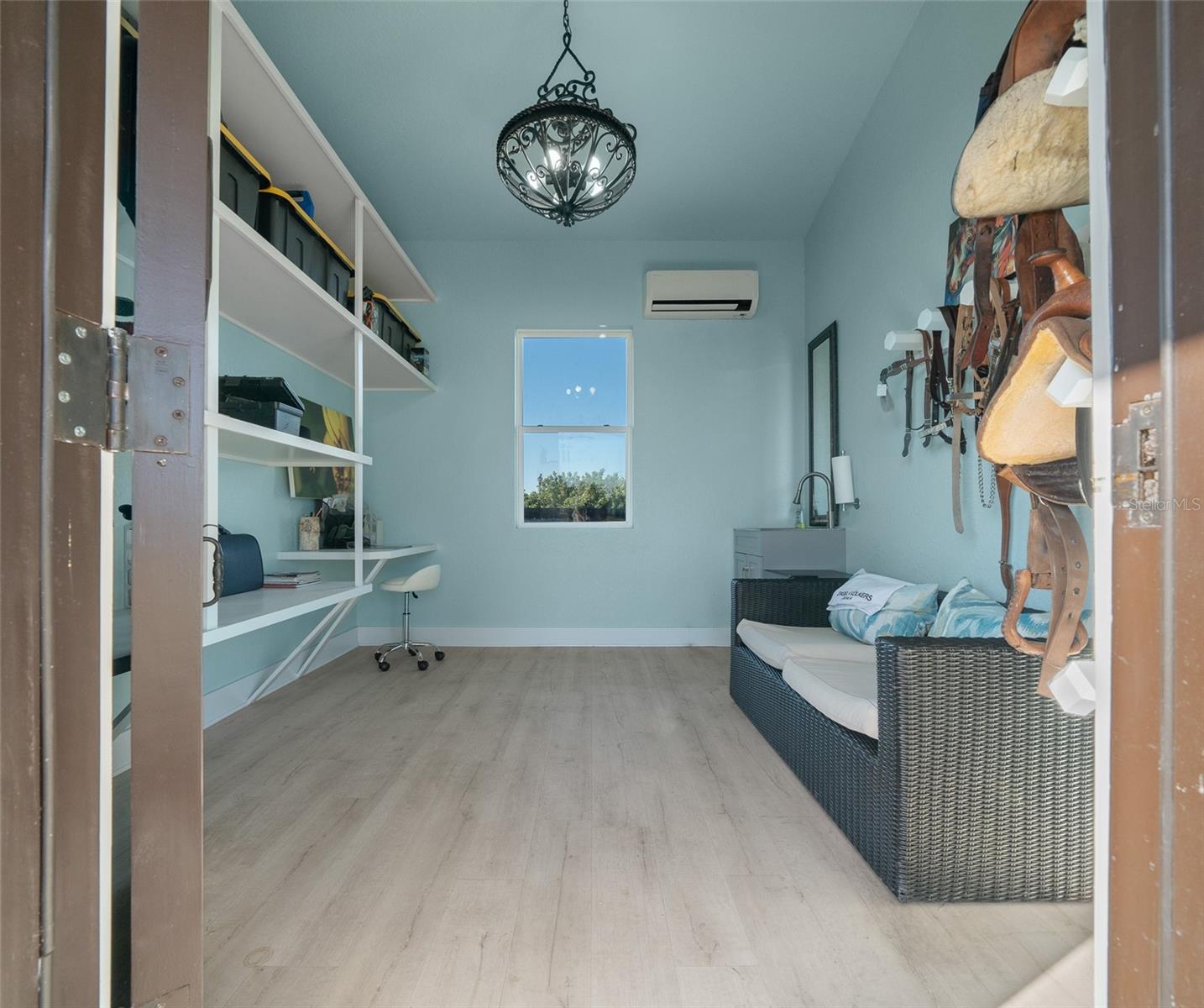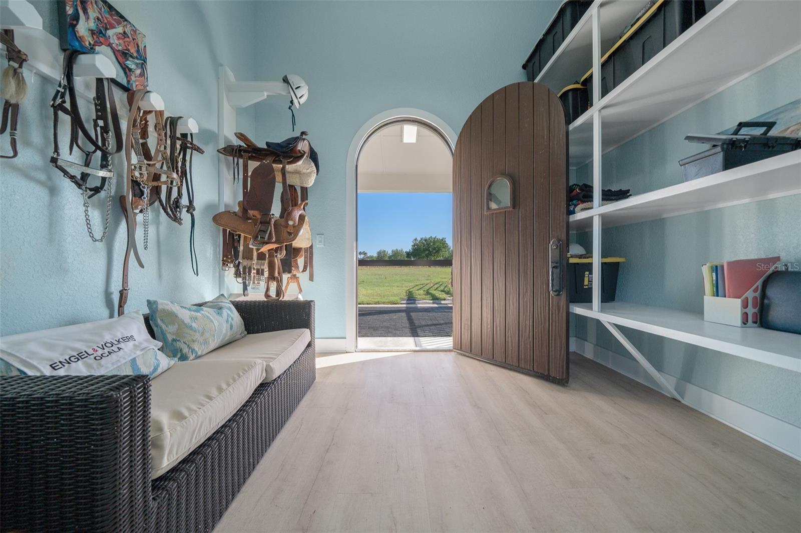 Welcome to a one-of-a-kind equestrian estate in Bel-Lago, the exclusive gated community whose name translates to “beautiful lake” in Italian. Nestled in the heart of Ocala’s horse country, Bel-Lago is a premier enclave offering lakefront and equestrian properties. Here, a rare opportunity awaits: a lakefront estate paired with a buildable equestrian lot, complete with a custom 2-stall block barn built in 2022. Bring your horses, and enjoy the stunning lakefront views. Originally crafted as the developer’s own residence, this Modern Mediterranean masterpiece was designed to capture sweeping lake views from nearly every room. Every inch of its 4,000+ sqft is marked by distinctive details and elevated finishes, even including a 500+ sqft detached guest casita. The main home offers 4 bedrooms, 3.5 bathrooms, a private dining room or den, and a 3-car garage. The garage features custom shelving and a Culligan water system with charcoal filters. The casita provides a 1-bedroom, 1-bathroom suite with kitchenette, currently enjoyed as a home theater. Step inside to discover timeless craftsmanship paired with modern luxury: an arched impact-rated glass front door, soaring ceilings with coffered and tray detailing, Travertine and white oak floors, rustic beams, and graceful archways - all accentuated by a modern white, black, and gold color palette. Entertain with ease with a whole-home surround-sound system, a private courtyard with fountain, and a brand-new (2025) outdoor kitchen fully equipped with refrigerator, reverse osmosis ice maker, dishwasher, and high-end gas grill. Outdoors, enjoy a heated saltwater pool and spa as the sun sets across the lake. Set on 1.40 acres of manicured grounds shaded by Live Oaks and citrus trees, the property overlooks a fully stocked lake that attracts waterfowl and even Bald Eagles - your own private bird sanctuary. On your spacious equine lot, you’ll find a buildable homesite, creosote 3-board fenced paddock, and an impressive 2-stall barn. Designed with durability and functionality in mind, the barn features inset rubber pavers, metal barn boards, sealed LED lighting, and a Hardie board ceiling. Each 12x12 stall includes custom steel doors, Nelson automatic waterers, and sloped flooring for a no-shaving and easy-drain environment. Behind an arched wooden door, an A/C tack room and office with custom shelving awaits, along with an A/C feed room with half bath. A wash rack and fly spray system complete the setup. With a blend of elegance, functionality, and exclusivity, this estate offers the very best of both worlds - waterfront serenity and equestrian excellence - in one of Ocala’s most coveted communities.
