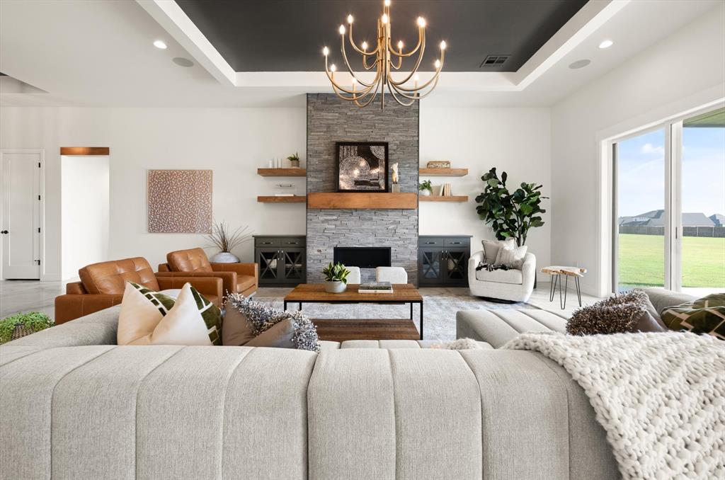 Allow us to open the door to your exceptional new home at 2270 NW 227th Street, where sophistication and comfort meet in perfect harmony. Located in the exclusive, gated community of Addington Farms, this residence is designed with an emphasis on elevating your lifestyle. The expansive first-floor living area is the heart of the home, thoughtfully designed to host gatherings in style. The main living room features an elegant coffered ceiling, a gas fireplace framed by a natural wood mantle, & stunning views of the meticulously landscaped backyard. The chef’s kitchen is a true masterpiece, complete with a grand island, a butler’s pantry, dual ovens, a convenient pot filler faucet above the range, & an abundance of counter space. An adjacent dining room provides the perfect setting for intimate meals or larger entertaining. On the left wing of the main level lies the opulent primary suite, designed for ultimate relaxation and luxury. Two separate vanities, a free-standing soaking tub, and a spacious walk-in closet with custom built-ins and a full-length mirror offer an extraordinary retreat. The second level is impeccably planned, featuring a versatile game/media room equipped with a beverage station, along with a guest bedroom and en-suite bath, providing privacy and comfort for visitors. Step outside onto the expansive covered patio, complete with a cozy outdoor fire pit. There is ample space to add a pool, should you wish to further enhance the outdoor experience. The home also features integrated speakers in both the main living area & the outdoor patio, enhancing your entertainment options. The property is equipped with premium utilities, including OG&E electric, ONG gas, a private well, an aerobic septic system, & private trash service. Deer Creek School District. Every detail of this home reflects captivating finishes and superior craftsmanship, offering an unparalleled living experience. Schedule a private tour today-- Welcome Home!