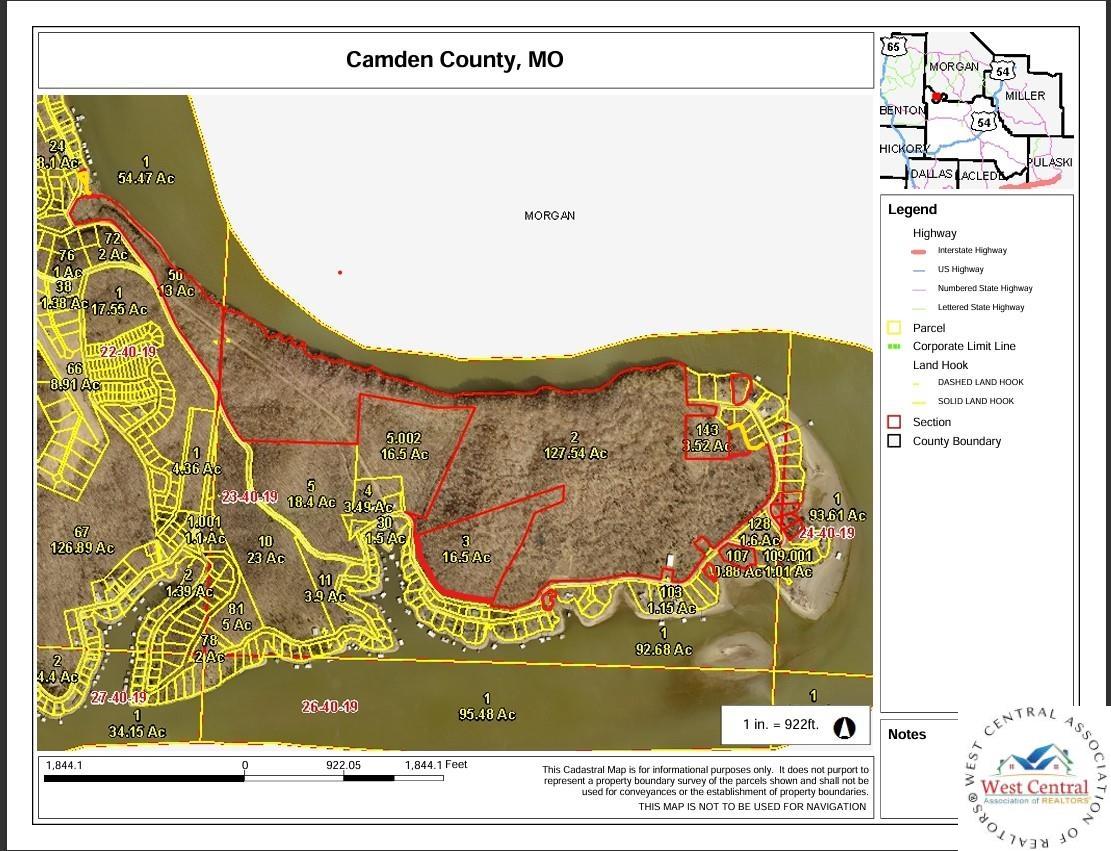 Don't miss out on this rare opportunity to acquire a vast tract of land in a prime lakeside location. Large tracts and numerous lots make up these 14 Parcels of wooded landscape with multiple terrains, within the gated Emerald Hills. The 160+ acres boast more than 6300 feet of Lake of the Ozarks shoreline. Electric, waste treatment and water well already in place, capable of servicing up to 75 homes, 10+ lots have utilities at the properties. The 100x50 Barn with electric, water, and sewer already installed—perfect for storage, office space, or on-site operations. Sellers are also offering the following equipment: John Deere backhoe, John Deere 240 skidsteer, Kabota LA805 L4060 tractor with loader and brush hog and a second tractor, everything you need to get started on development right away! Come take a look and let your imagination run wild with the endless possibilities this property offers!