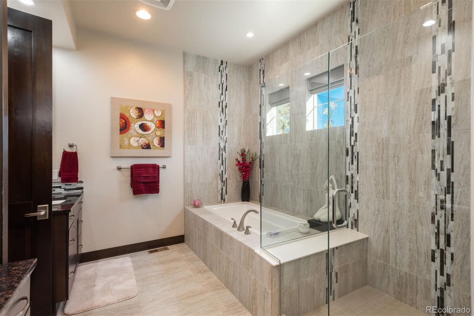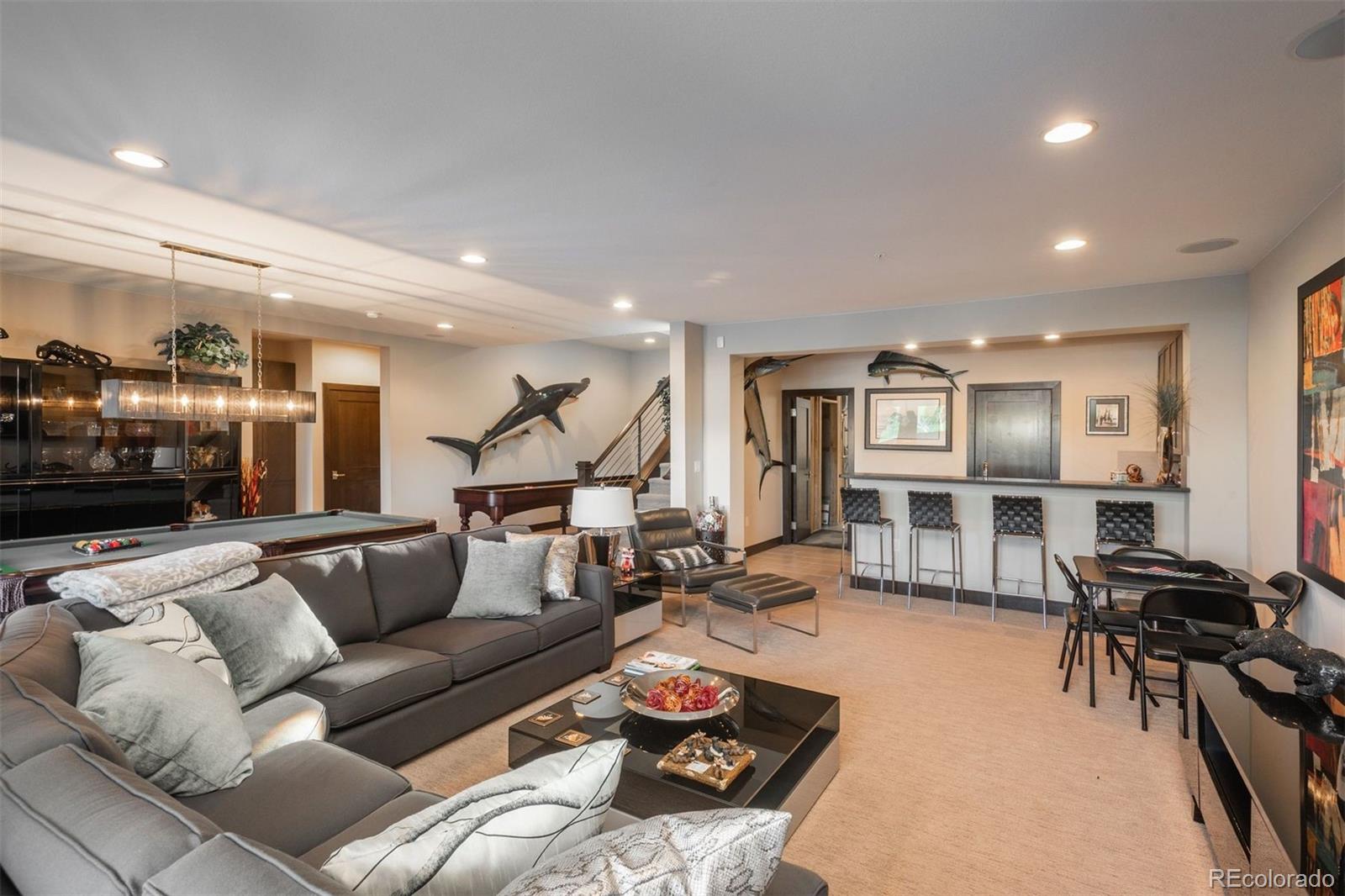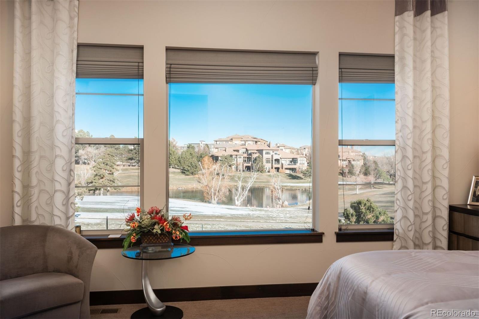 Welcome to this one of a kind, lock and leave home in the sought after gated community of Villas at Vallagio III. This former model home stands apart from every other ranch in Inverness, offering an additional 1,700 total sqft. With 3 beds, 4 baths, main floor office & a 3 car fully finished & insulated garage with epoxy floors & shelving, this home is loaded with upgrades including a built-in sound system, suede granite counters, & high end stainless steel appliances. The moment you enter through the private courtyard, you are welcomed by soaring 14 foot ceilings, an open floorplan, & wood floors that flow throughout the main living areas. The chef inspired kitchen features a large center island & exceptional cabinet space, opening seamlessly to the dining & family rooms for effortless entertaining. Nearly every room captures stunning views of a lake & the second fairway of the semi-private Inverness Golf Course, which can also be enjoyed from the covered deck or four-season patio below. The expansive primary suite offers a large picture window framing the golf course & lake views, along with a spa like bath featuring an oversized shower, soaking tub, & a custom walk-in closet. The fully finished walkout basement is an entertainer’s dream with a full wet bar, wine fridge, dishwasher, & space for a future wine room. Two additional bedrooms provide ideal guest accommodations; one designed as a second primary with an en-suite bath, the other adjacent to a three quarter bath. In addition to the upstairs laundry room a second full size washer & dryer set is also located in the basement. Restaurants, light rail are within walking distance & Park Meadows Mall is a short drive. Residents of Vallagio get a discount on social & golf memberships available at the nearby Hilton providing indoor/outdoor pool, pickleball, tennis, golf, gym, spa & restaurants. This exceptional home blends luxury, comfort, & unbeatable views in one of the south metros most desirable communities.