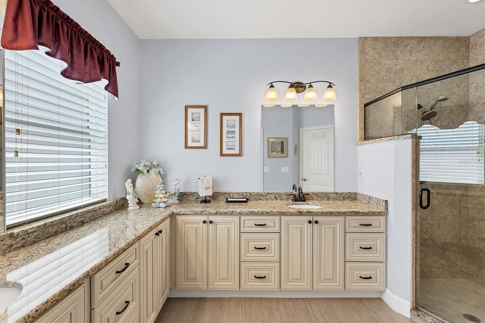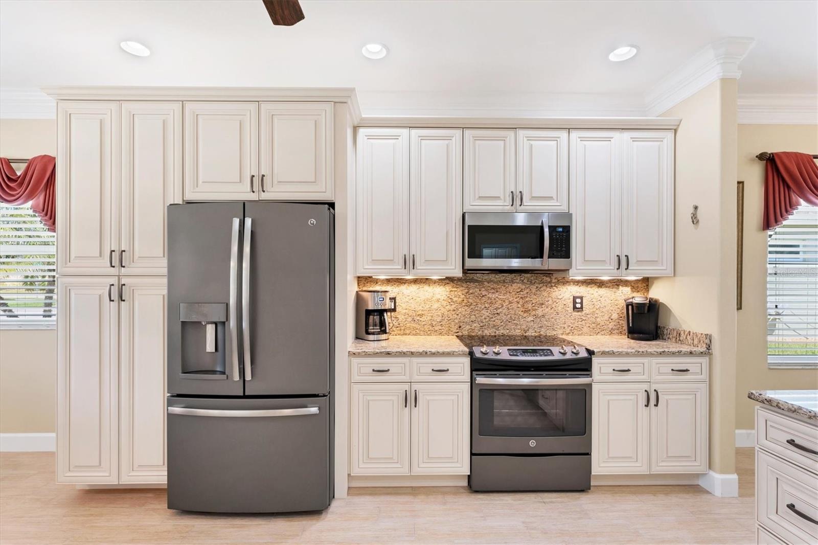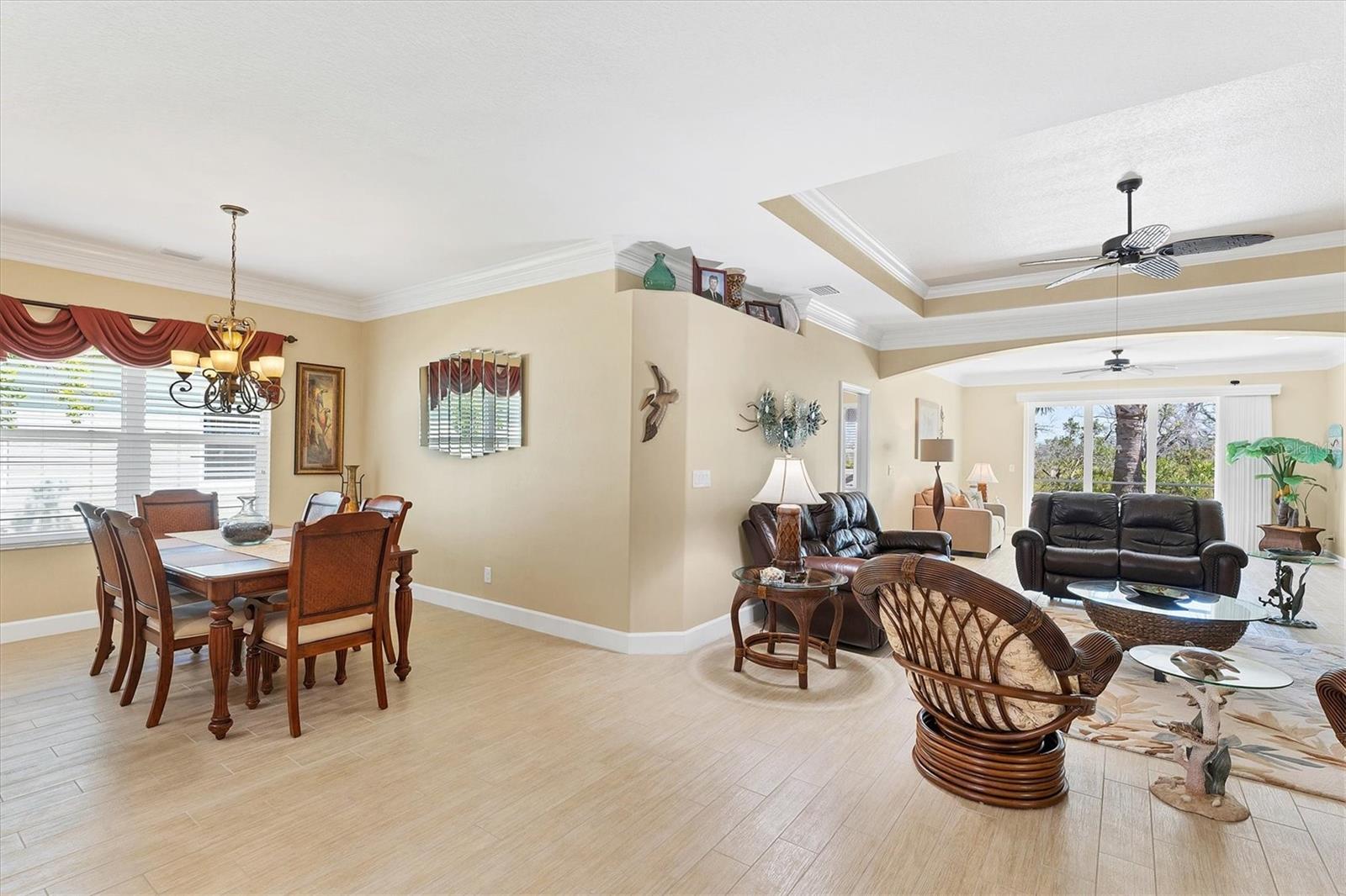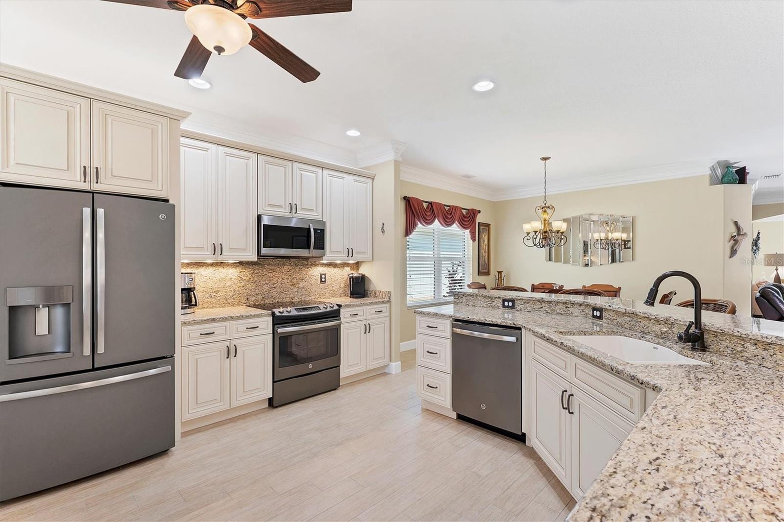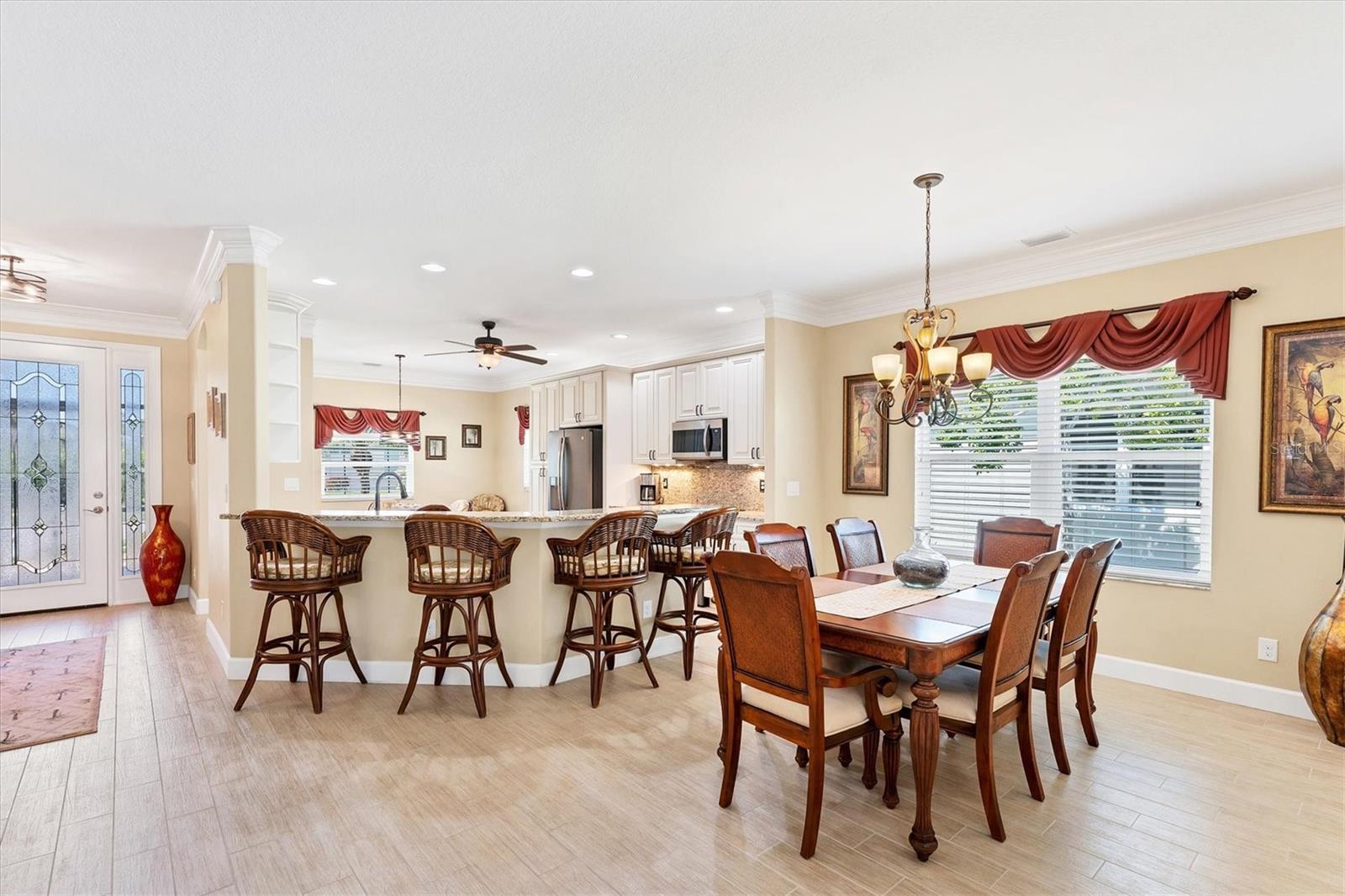 Live the Good Life in Park Forest - A Golf Cart Friendly 55+ Gated Community with Wildlife & Activities! This beautifully maintained, one-owner Pearl Model designed home offers three bedrooms, two bathrooms, an oversized two-car garage, and is in the X flood zone. Thoughtfully updated with comfort and style in mind, it’s located in one of Englewood’s most sought-after 55+ communities. Outside, you’ll appreciate the paver driveway, hurricane rated insulated garage door with power screening, mature landscaping, and no-see-um screened entry. Step inside through the decorative leaded glass front door into a bright, open space featuring top-tier wood-look tile flooring throughout, crown molding, custom window treatments, impact windows and doors, an accordion shutter for the front entry, and a 2023 A/C system with ionizer. The spacious kitchen opens to the great room and features cream-colored wood soft-close cabinets with custom handles, granite countertops, under-cabinet lighting, stainless steel appliances, and a raised breakfast bar. A dry bar and closet pantry in the adjoining casual kitchen cafe area provide additional storage and convenience. Sliding glass doors and a formal dining area in the great room offer plenty of space for entertaining. Double doors lead to the ensuite master retreat, complete with a tray ceiling, plant shelves, a large walk-in closet, and convenient access to the study/home office area. The master bathroom showcases a custom-designed dual sink vanity with ample countertop space and storage, along with a fully tiled, glass-enclosed walk-in shower. The guest bedrooms feature reach-in closets, and the well-appointed guest bath includes a tiled shower/tub combo and a granite-topped vanity. The interior laundry room is equipped with built-in cabinets and a utility sink for added convenience. The garage was designed with space in mind and extended to accommodate a workshop and additional storage options and pull down stair access to the floored attic with lighting provides even more storage opportunities. Outside, the extended screened lanai offers a peaceful wooded view, where you may spot turkeys, sandhill cranes and their chicks, deer, and a variety of birds that frequent the preserve and conservation area behind the home. An open-air paver patio makes grilling and dining al fresco a breeze, while the outdoor shower with both hot and cold water adds a touch of luxury to your outdoor living - ideal for rinsing off in comfort anytime you like. Park Forest is a vibrant 55+ gated community in Englewood, Florida, offering a variety of recreational amenities and social activities. Residents have access to a variety of amenities including a pool, spa, tennis and shuffleboard courts, and a clubhouse for social events and gatherings. Need space for your toys? The community features convenient RV and boat storage. Ideally located just minutes from golf courses, world-class fishing, boating, and the stunning Gulf beaches. Nearby towns like Englewood, Venice, Wellen Park, and Sarasota offer an abundance of dining, cultural attractions, and shopping destinations. From potluck suppers to dinner dances, Park Forest’s social calendar is filled with activities, and there are plenty of opportunities for residents to get involved and volunteer. Don’t miss your chance to see this beautiful home, schedule your private showing today!