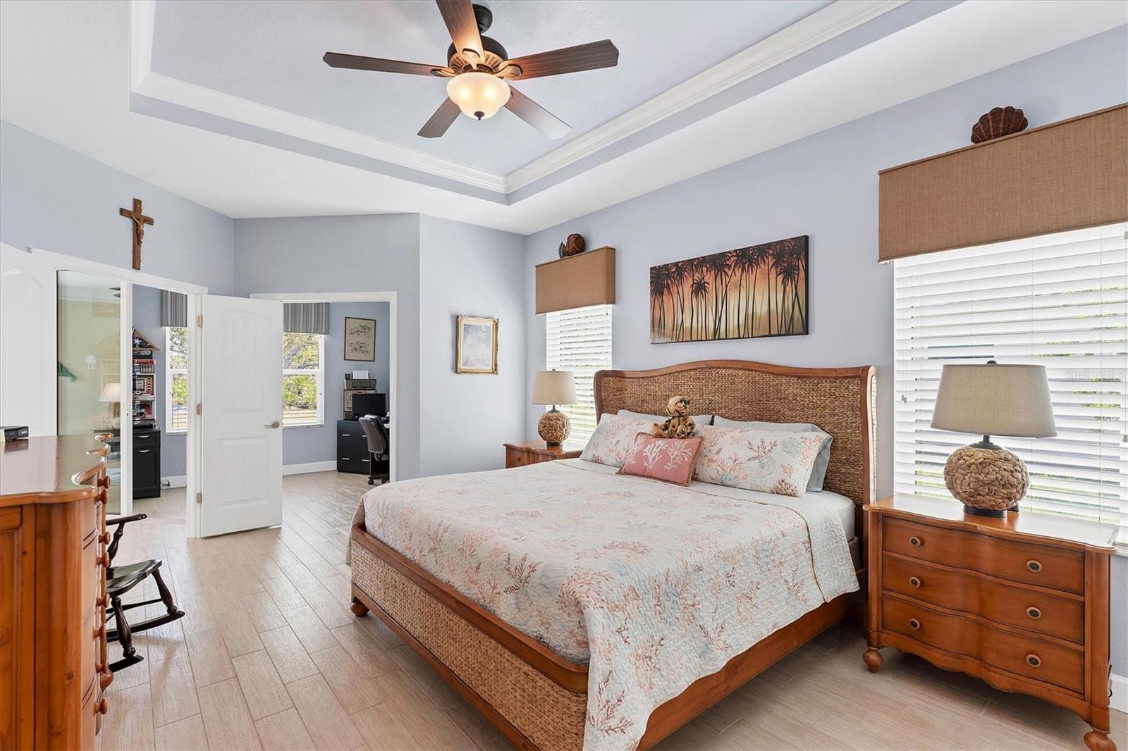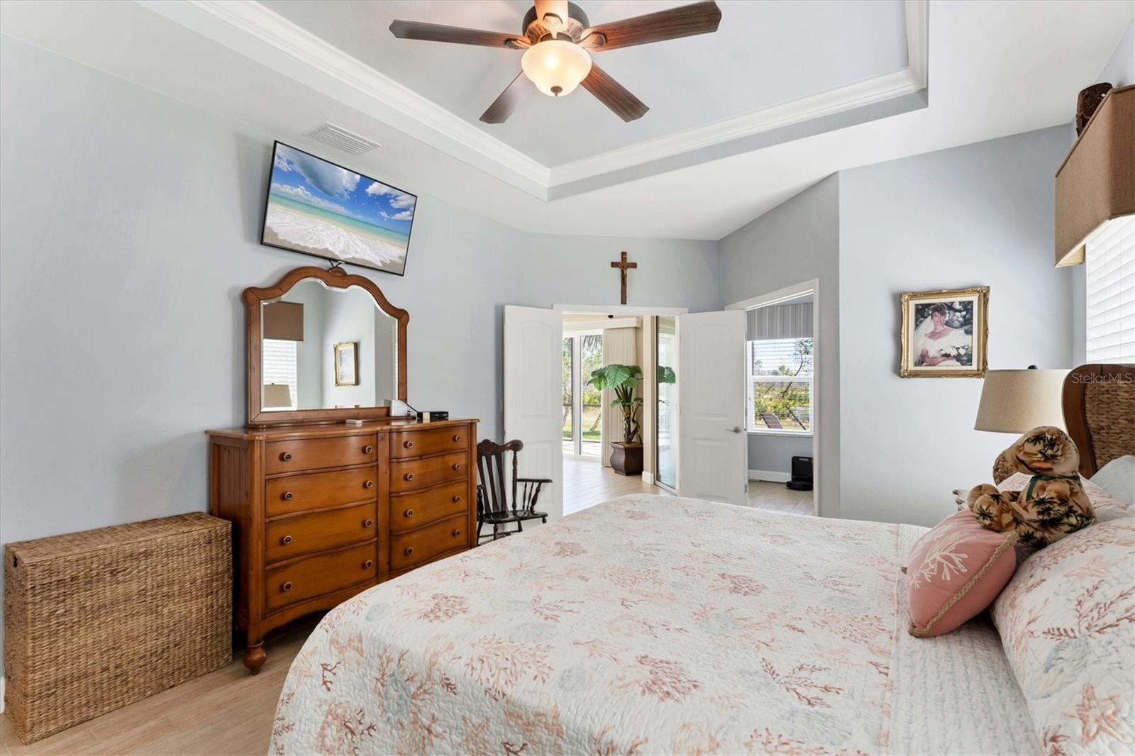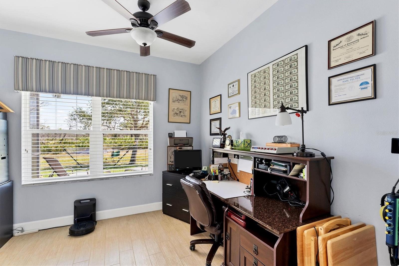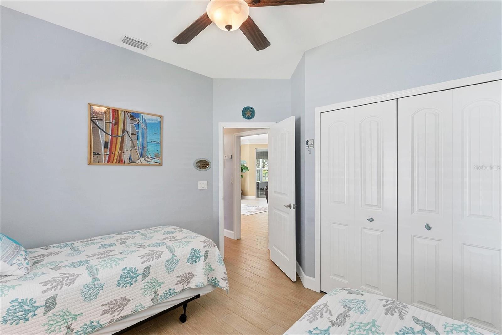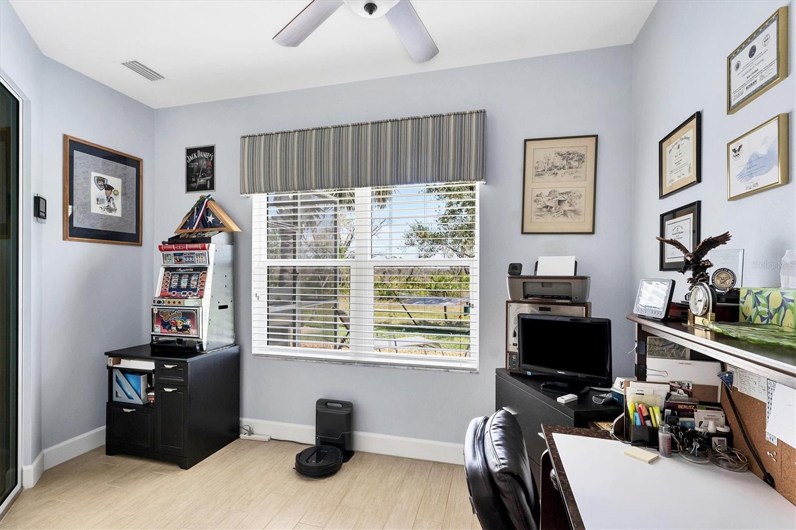 Live the Good Life in Park Forest - A Golf Cart Friendly 55+ Gated Community with Wildlife & Activities! This beautifully maintained, one-owner Pearl Model designed home offers three bedrooms, two bathrooms, an oversized two-car garage, and is in the X flood zone. Thoughtfully updated with comfort and style in mind, it’s located in one of Englewood’s most sought-after 55+ communities. Outside, you’ll appreciate the paver driveway, hurricane rated insulated garage door with power screening, mature landscaping, and no-see-um screened entry. Step inside through the decorative leaded glass front door into a bright, open space featuring top-tier wood-look tile flooring throughout, crown molding, custom window treatments, impact windows and doors, an accordion shutter for the front entry, and a 2023 A/C system with ionizer. The spacious kitchen opens to the great room and features cream-colored wood soft-close cabinets with custom handles, granite countertops, under-cabinet lighting, stainless steel appliances, and a raised breakfast bar. A dry bar and closet pantry in the adjoining casual kitchen cafe area provide additional storage and convenience. Sliding glass doors and a formal dining area in the great room offer plenty of space for entertaining. Double doors lead to the ensuite master retreat, complete with a tray ceiling, plant shelves, a large walk-in closet, and convenient access to the study/home office area. The master bathroom showcases a custom-designed dual sink vanity with ample countertop space and storage, along with a fully tiled, glass-enclosed walk-in shower. The guest bedrooms feature reach-in closets, and the well-appointed guest bath includes a tiled shower/tub combo and a granite-topped vanity. The interior laundry room is equipped with built-in cabinets and a utility sink for added convenience. The garage was designed with space in mind and extended to accommodate a workshop and additional storage options and pull down stair access to the floored attic with lighting provides even more storage opportunities. Outside, the extended screened lanai offers a peaceful wooded view, where you may spot turkeys, sandhill cranes and their chicks, deer, and a variety of birds that frequent the preserve and conservation area behind the home. An open-air paver patio makes grilling and dining al fresco a breeze, while the outdoor shower with both hot and cold water adds a touch of luxury to your outdoor living - ideal for rinsing off in comfort anytime you like. Park Forest is a vibrant 55+ gated community in Englewood, Florida, offering a variety of recreational amenities and social activities. Residents have access to a variety of amenities including a pool, spa, tennis and shuffleboard courts, and a clubhouse for social events and gatherings. Need space for your toys? The community features convenient RV and boat storage. Ideally located just minutes from golf courses, world-class fishing, boating, and the stunning Gulf beaches. Nearby towns like Englewood, Venice, Wellen Park, and Sarasota offer an abundance of dining, cultural attractions, and shopping destinations. From potluck suppers to dinner dances, Park Forest’s social calendar is filled with activities, and there are plenty of opportunities for residents to get involved and volunteer. Don’t miss your chance to see this beautiful home, schedule your private showing today!