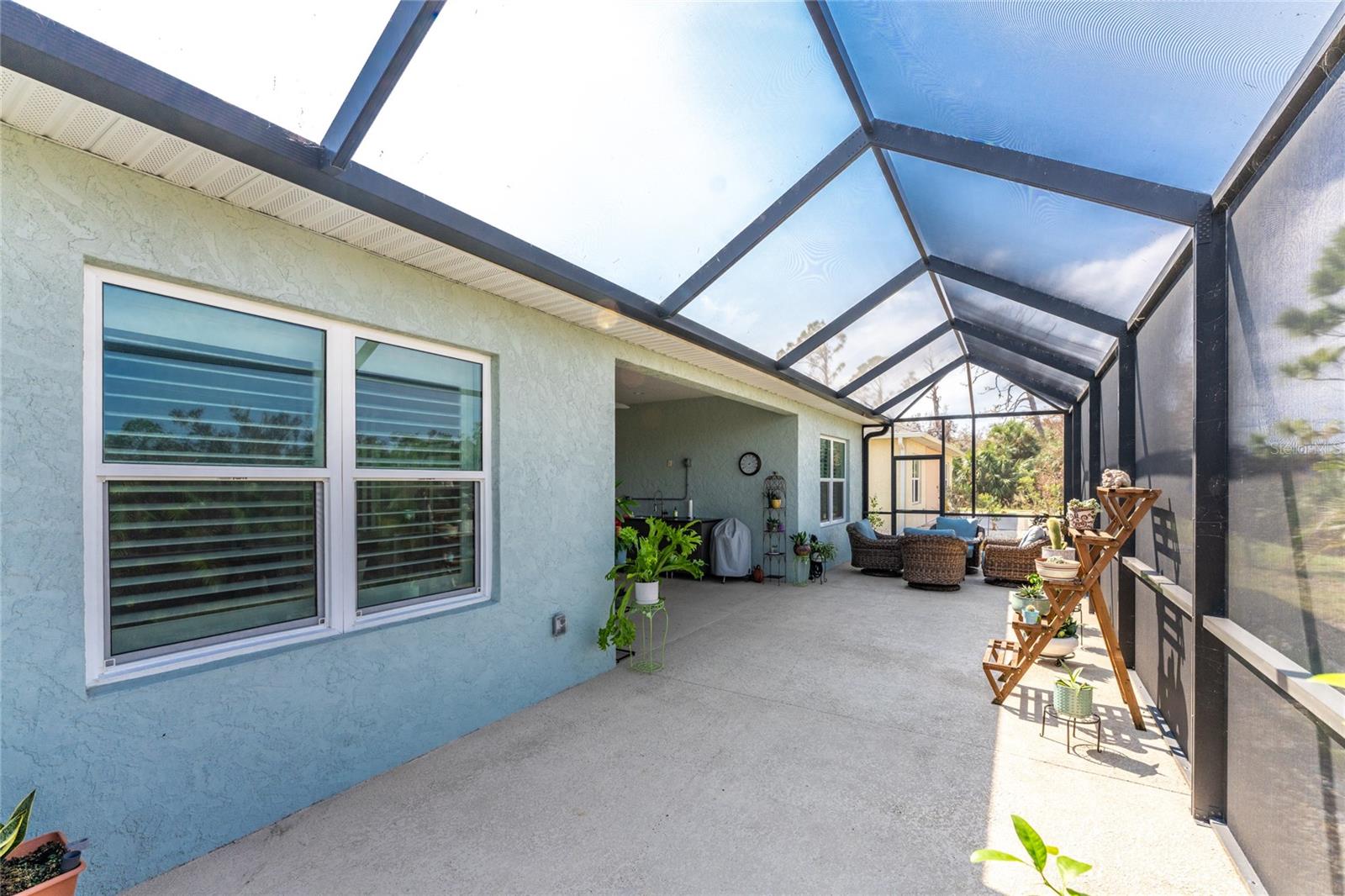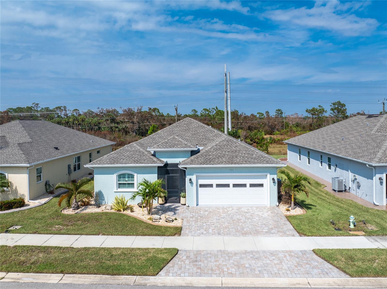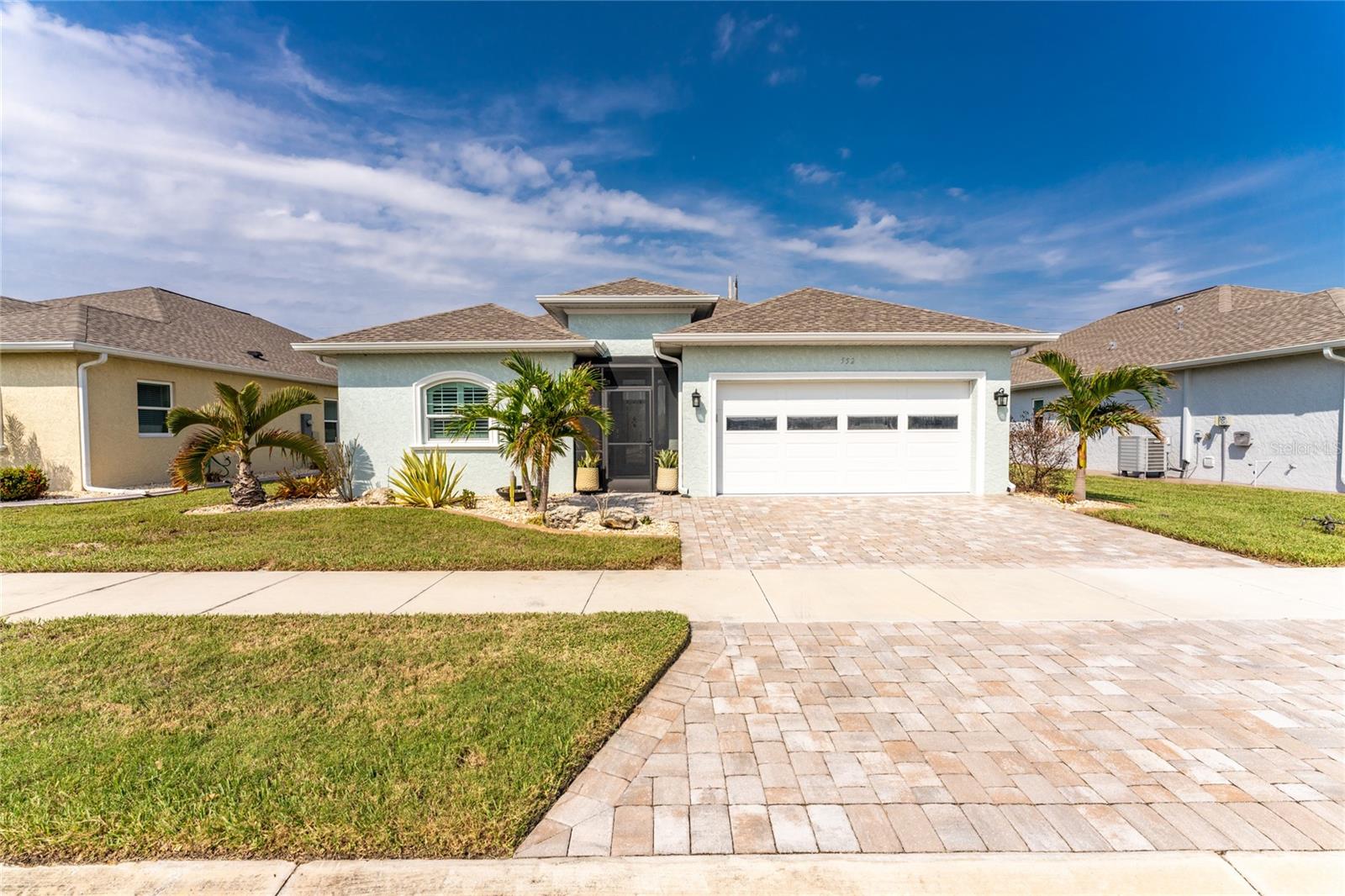 WHY BUILD OR BUY NEW? This 3 bedroom, 2 bath, 2 car garage home has so many upgrades that if you build, will cost you $1000's of dollars extra! Luxury Vinyl Plank flooring through out, crown molding in all major rooms, upgraded kitchen appliances, screened entry with pavers, extended screened lanai area, USB'S in some outlets, Impact windows and doors and so much more!!! Popular Pearl floor plan features a spacious Living area with a tray ceiling with a ceiling fan and pocket sliding doors to the lanai! Adjacent dining area is spacious with plenty of room for entertaining! Kitchen has upgraded Quartz counter tops, upgraded composite sink, pretty backsplash, closet pantry, breakfast bar, ceiling fan and a dinette area with additional cabinetry added for plenty of storage! Appliances include: GE Kitchen Hub Entertainment and Ventilation System, GE Cafe French door refrigerator, GE Cafe microwave, GE Cafe built in oven, GE Cafe dishwasher and GE Profile induction range! Main bedroom has a tray ceiling with crown molding and a ceiling fan, walk in closet with built ins, separate office/den area and another set of sliding glass doors to the lanai!! Main bath has a double vanity with upgraded Quartz top, added cabinetry for lots of storage, Oversized shower with door, privacy commode area and a linen closet. Bedrooms #2 and #3 have ceiling fans and wall closets. The adjacent Guest bath is handily located in between the Guest bedrooms, and features upgraded wood vanity with solid surface countertop, Shower with door (shower walls are tiled to the ceiling, so no wet drywall!) and linen closet. Pocket door to the guest bedrooms adds extra privacy for your guests! Laundry room has a pocket door for access, GE front load washer and dryer, utility tub, and extra cabinetry above for extra storage. The screened lanai has a ceiling fan, OUTDOOR KITCHEN with built in sink with water and electric, perfect for outdoor entertaining! The CAGED AREA has been dramatically increased, so there's plenty of outdoor living area for a firepit, plants, hot tub or whatever you choose!. The 2 car garage has an automatic garage door and pull down stairs for extra storage in the attic! The beautiful tropical landscaping adds to this amazing home. This is a special home and you would do well to call it your Florida paradise! This home is located in one of Englewood's favorite communities, with great amenities such as: clubhouse, pool, tennis/pickleball courts, RV/Boat Parking, and more activities than you could possibly take advantage of! Come take a tour today!