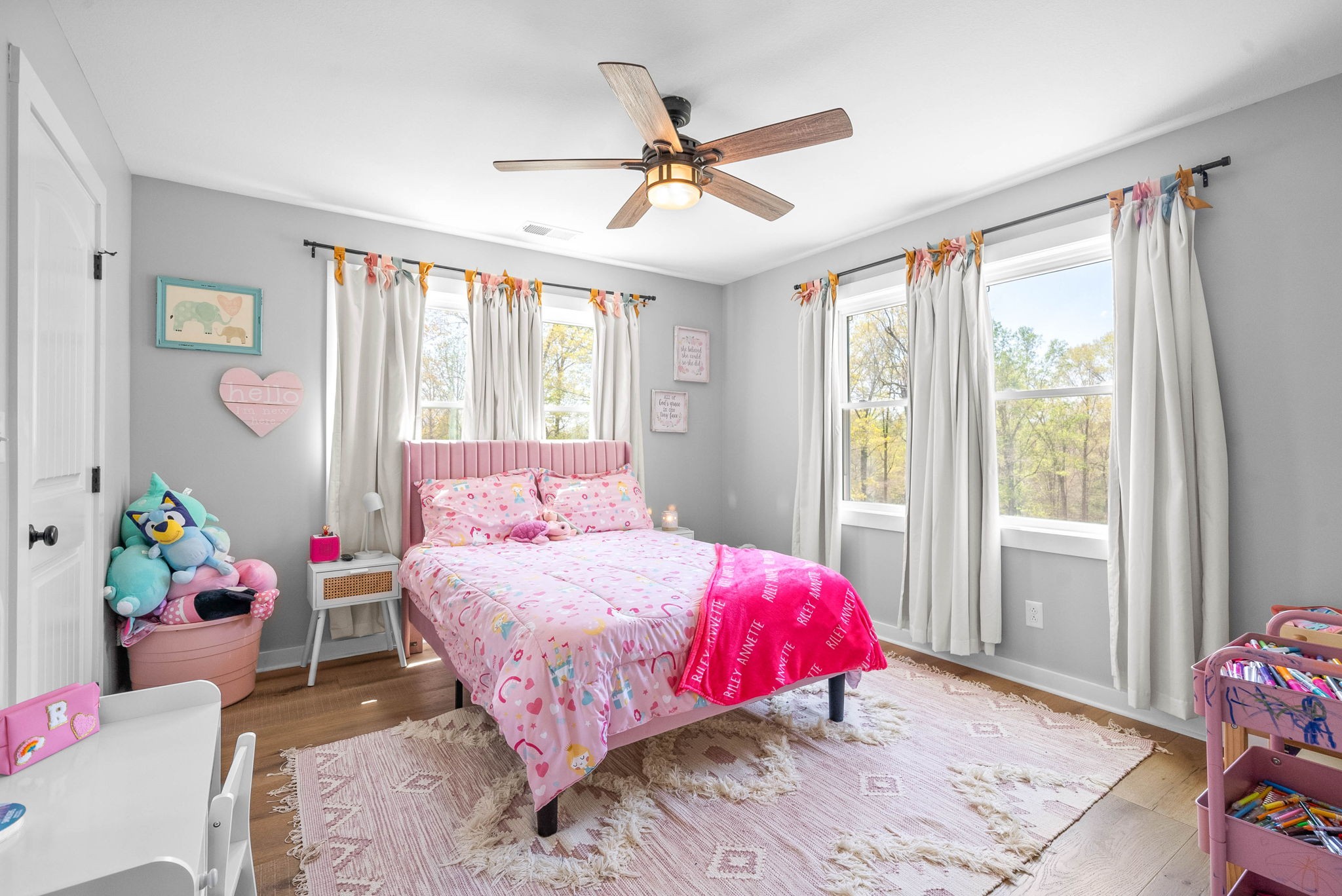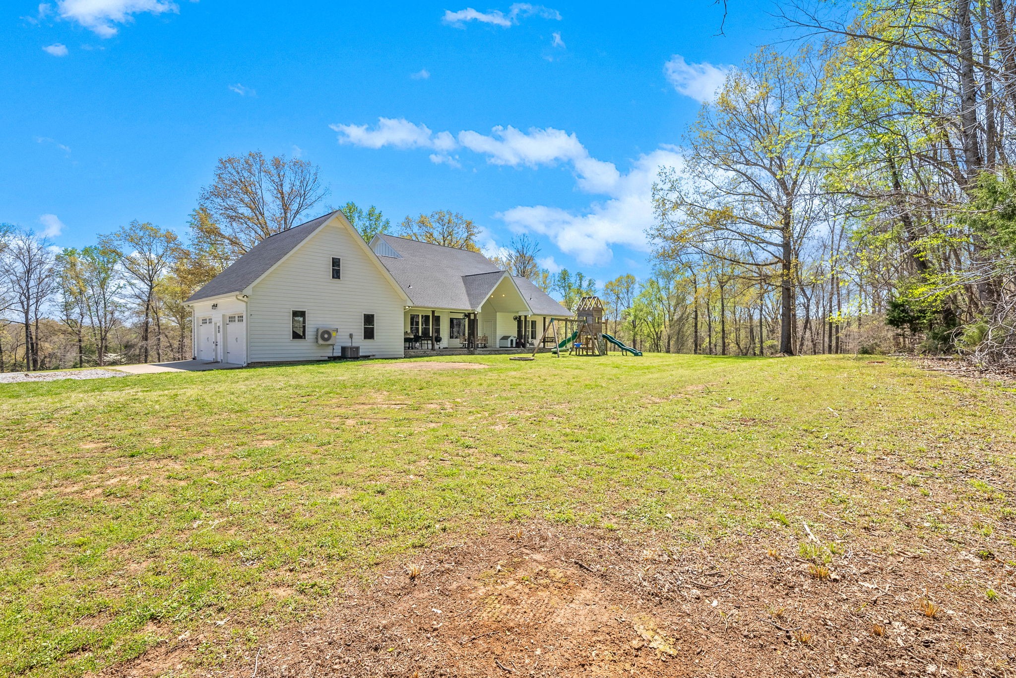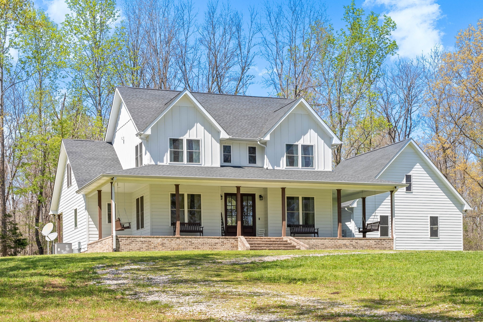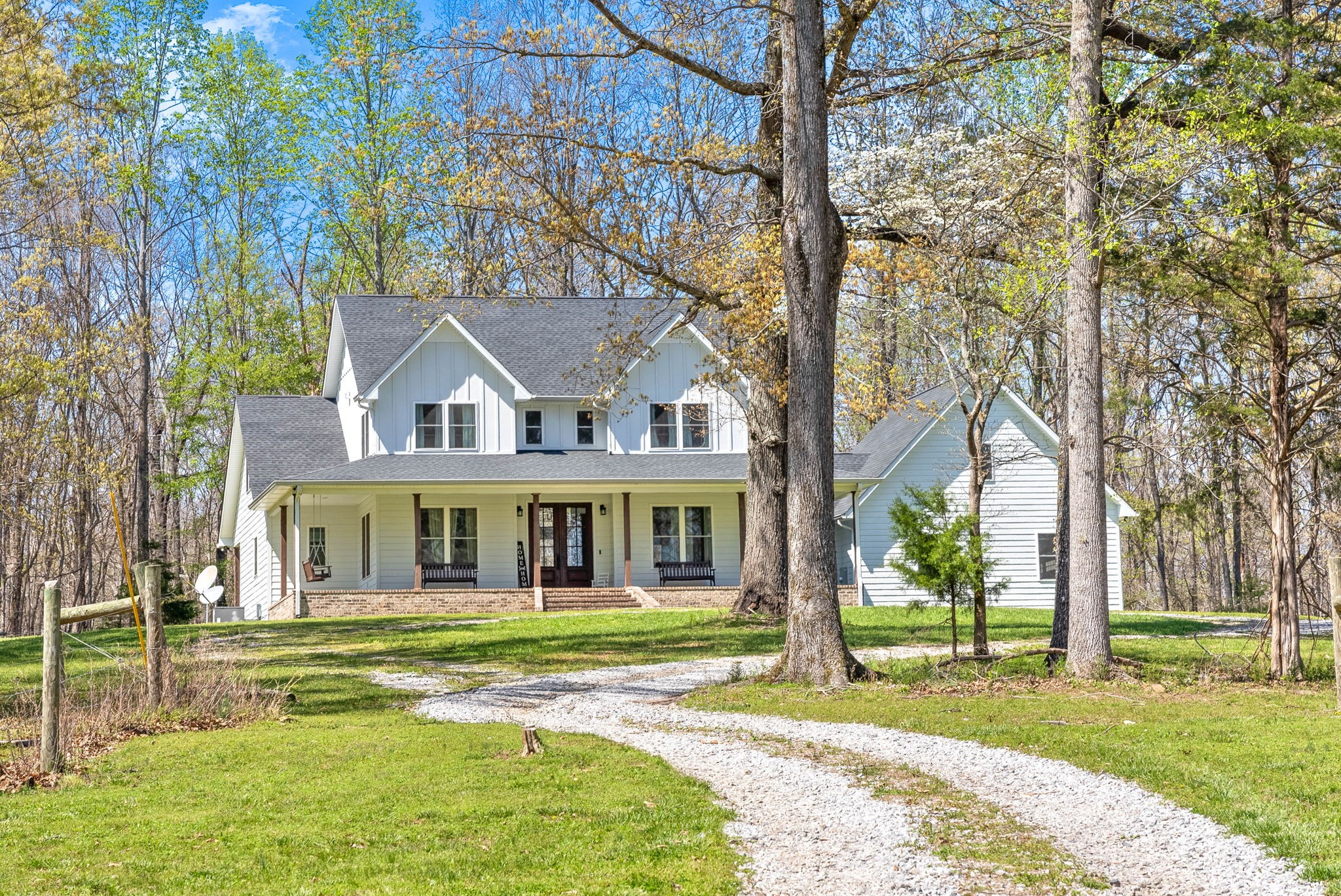 This home also includes two versatile bonus rooms, perfect for a home office or play area. Step outside to your large covered back porch, featuring impressive cathedral ceilings, an outdoor half bath, all perfect for relaxing or entertaining while enjoying the picturesque surroundings. An attached heated & cooled two-car garage adds convenience to this exceptional property. Immerse yourself in modern luxury and country charm in this remarkable farmhouse!
