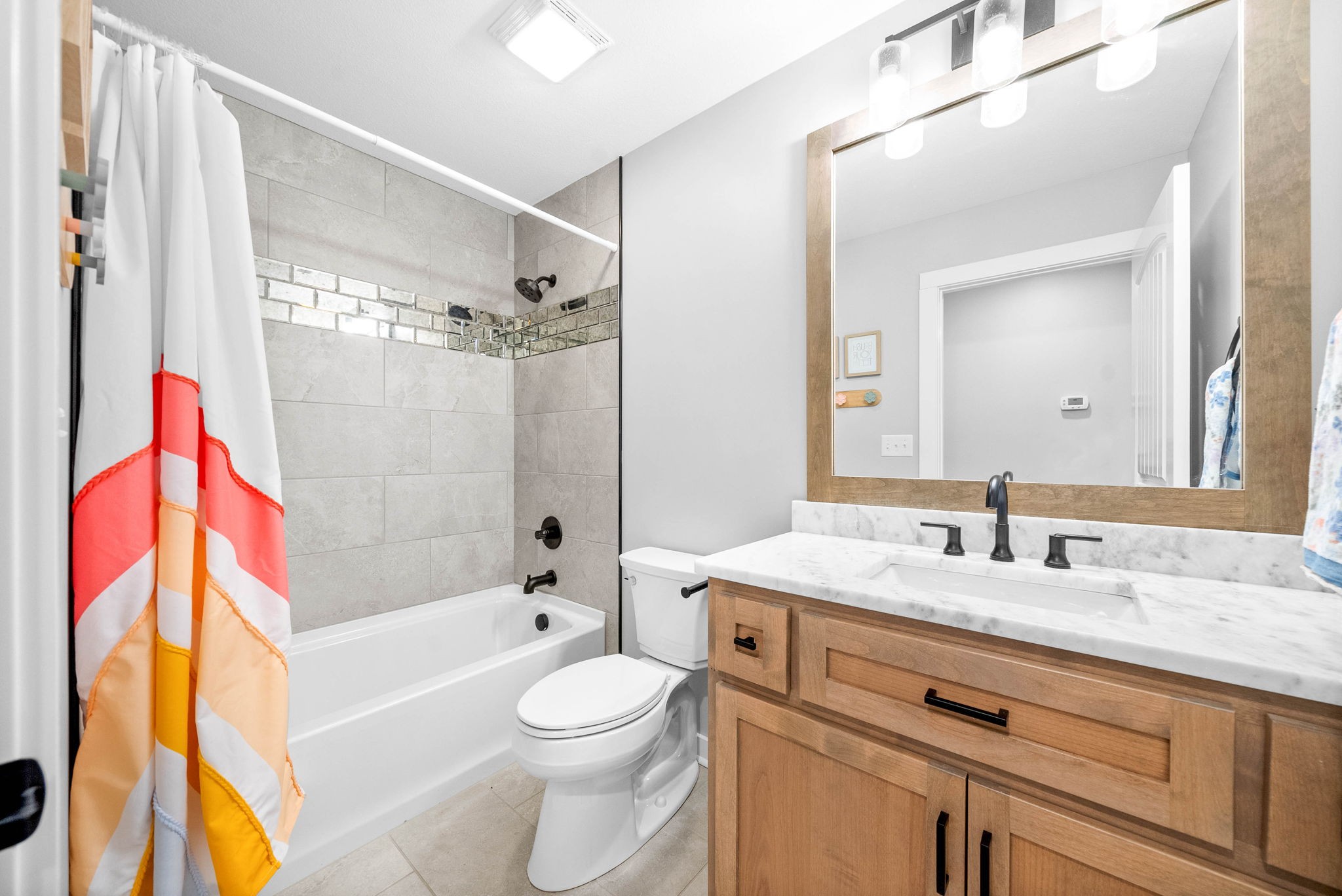 The heart of the home is the expansive kitchen, boasting luxurious marble countertops and a cozy breakfast nook, perfect for morning gatherings. Adjacent is a formal dining room, ideal for entertaining guests. With four spacious bedrooms, including a master suite with elegant finishes, and three and a half beautifully designed baths, comfort is paramount.