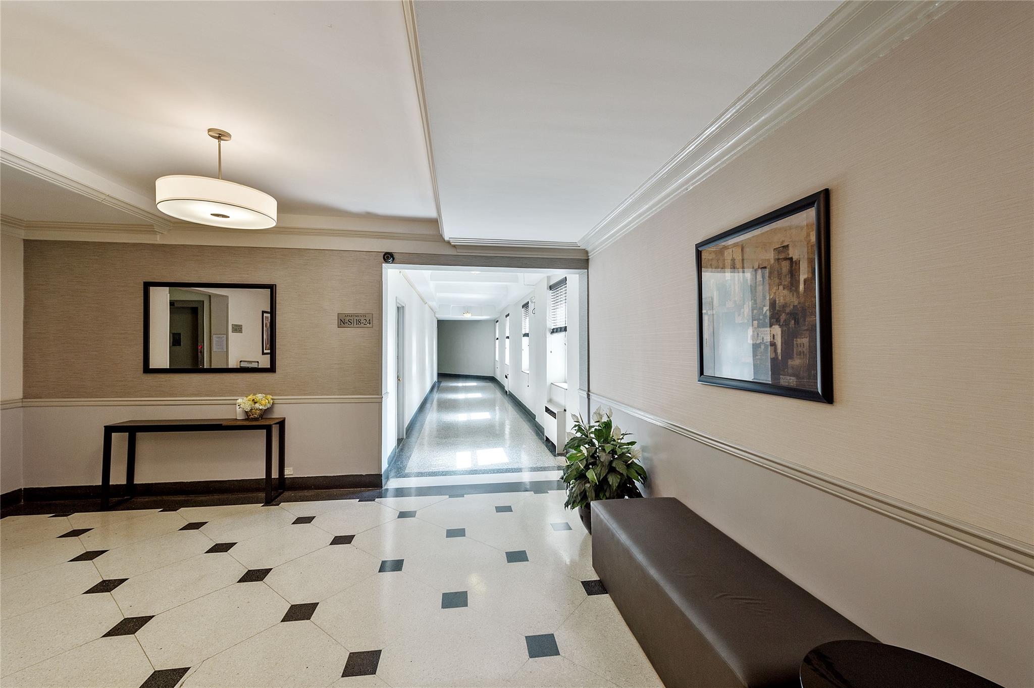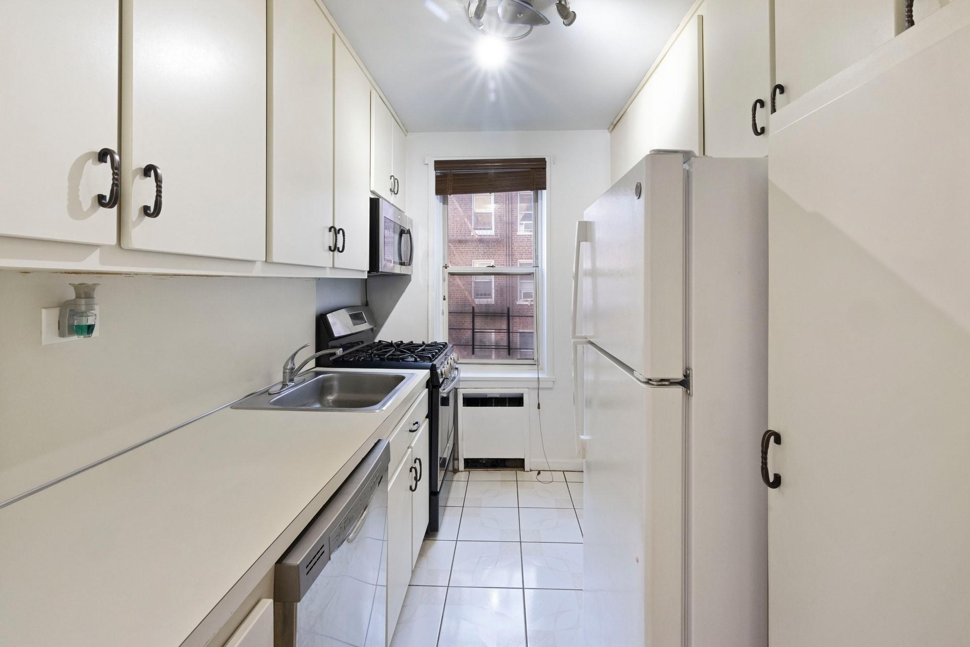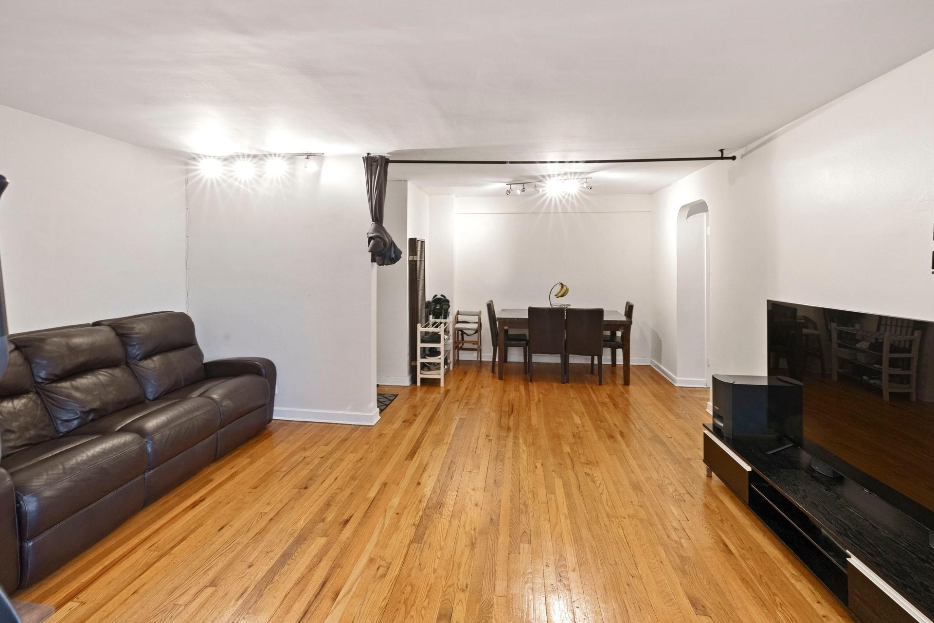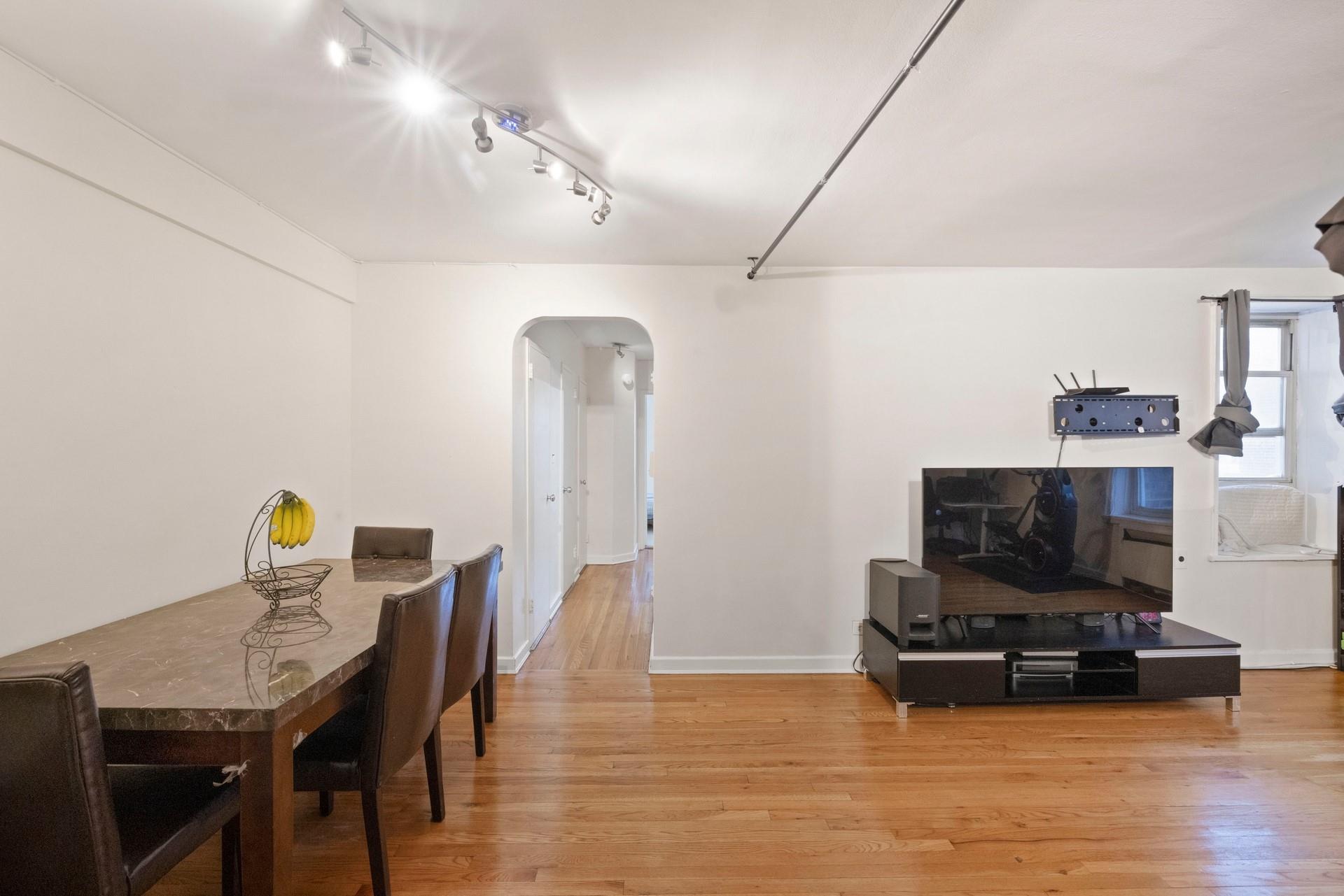 Discover this spacious, 1BR co-op nestled on a quiet and residential street in the heart of Forest Hills. The entryway leads to an open layout living room/dining area with sunlit exposure. The galley kitchen features large cabinets with generous countertops. The hallway leads to an updated windowed bathroom with vanity, tiled walls and floors. The large bedroom easily accommodates a Queen-size bed with double exposure windows and nature views. Freshly painted walls and rich, hardwood floors accentuate the space. (4) floor-to-ceiling closets for ample storage. Sunlit exposure for a bright and airy living experience. A full-service, elevator building that offers a gorgeous, new lobby area, new laundry center, private-gated courtyard/playground, community garden and more. Easy access to all transportation - E/F subway trains (three blocks), MTA buses into Manhattan, LIRR, Forest Hills stadium. Convenient access to LaGuardia/Kennedy airports.
