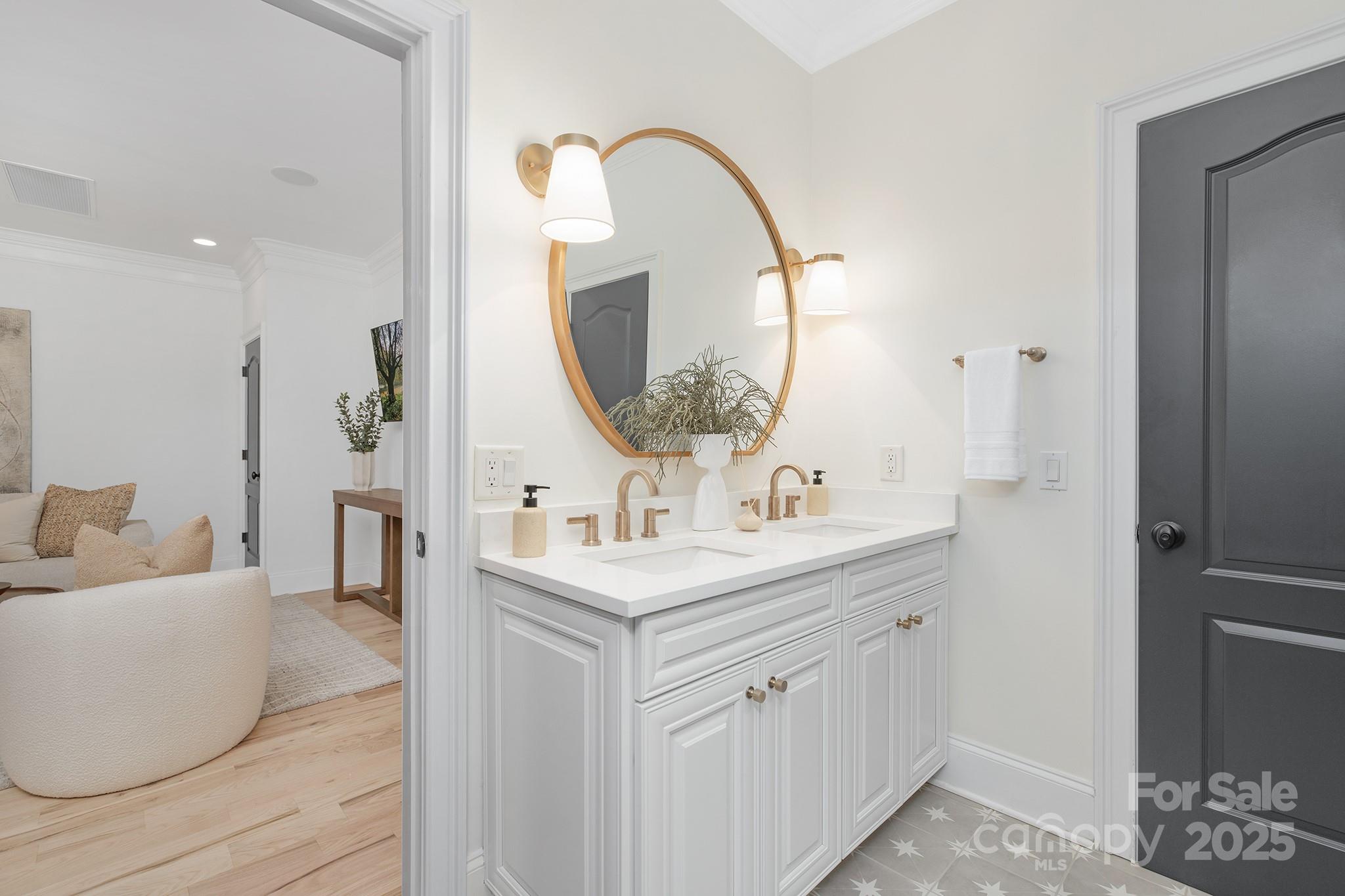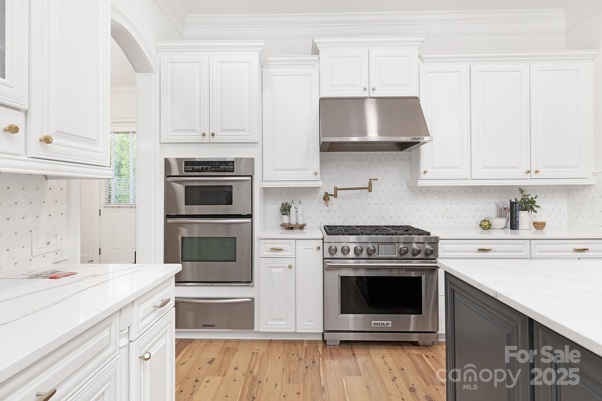 Exceptional home in the gated community of Longbrooke. Fully updated by current owners. Spectacular curb appeal with tiered stonework and terraces. Lush landscaping with fruit & olive trees. Backyard retreat with heated saltwater pool & spa and travertine patio. Iron front door, Australian Cypress wood flooring, 10-13 ft ceilings throughout main level. 2-story foyer flanked by dining & formal living room/study, family room with coffered & beamed ceiling and stone fireplace. Sunroom off kitchen & vaulted breakfast room. Stunning chef's kitchen with island & breakfast bar. Primary suite on main with new marble bath & veranda access. Fully equipped media room with wet bar, loft with secondary staircase, & 3 additional bedrooms. 2-car garage & additional 2-car carriage house garage. Control4 Smart Home system for whole-house/backyard AV. Longbrooke is a meticulously planned community of custom homes. Private, serene location with easy access to Ballantyne.