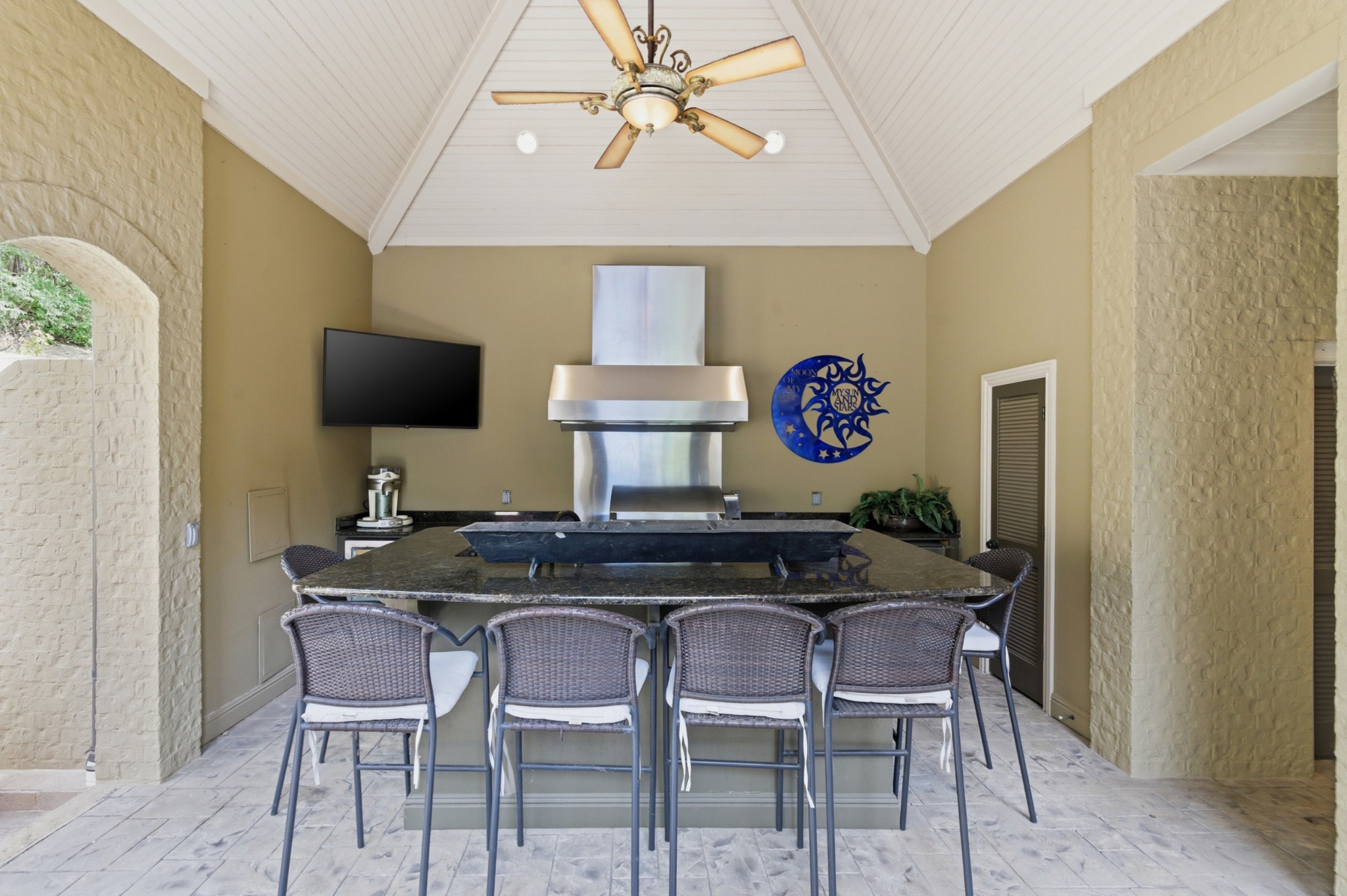 Outside, enjoy a built-in grill, a covered patio, and a stunning saltwater pool featuring an elegant water fountain—ideal for indoor-outdoor living.