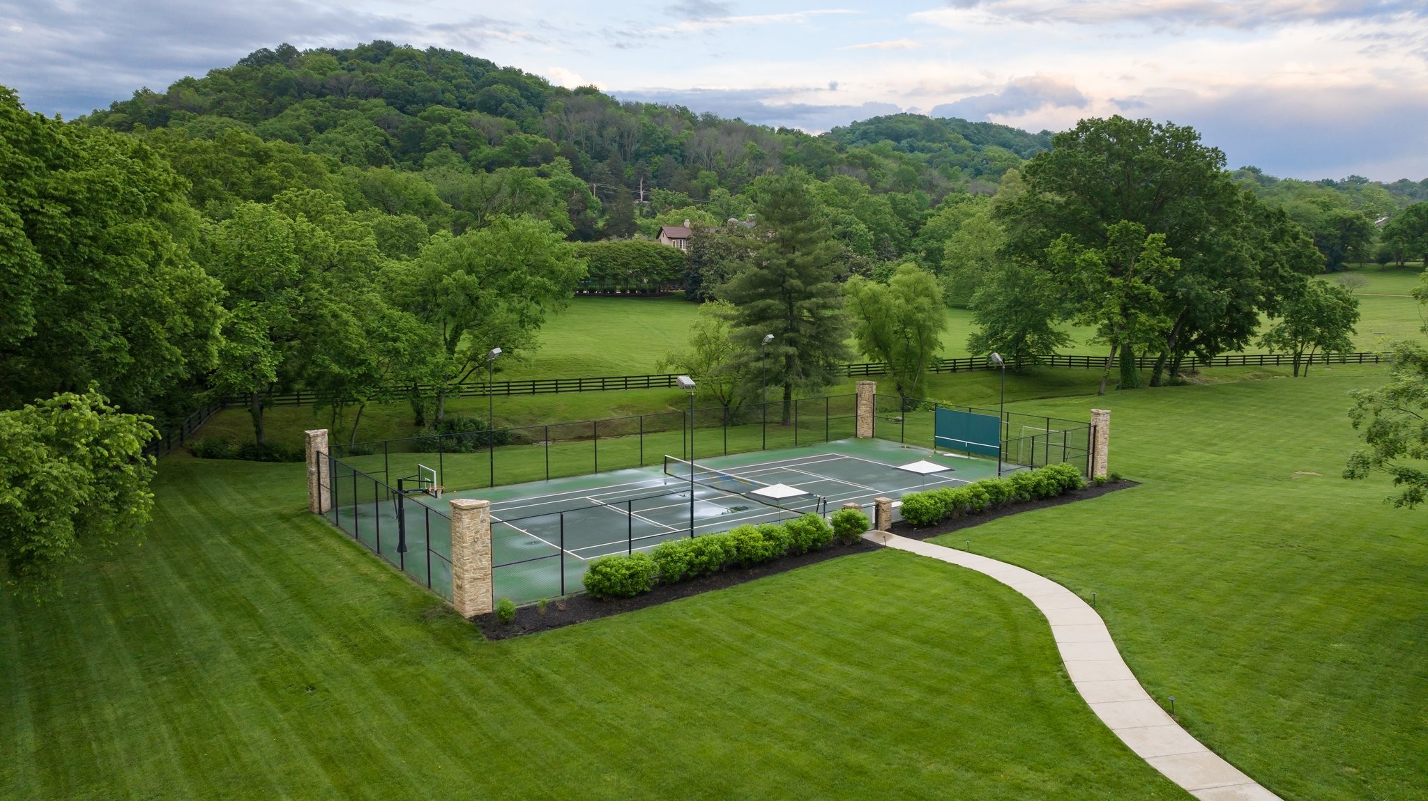 Tucked within one of Franklin’s most exclusive gated communities, 2410 Hidden River Lane is the epitome of modern Southern elegance. Set on nearly six private, level acres with flat green pastures and direct access to scenic community horse trails, this estate offers the rare balance of quiet luxury and purposeful design—just minutes from the charm of downtown Franklin and the vibrancy of Nashville. Completely reimagined since 2022, the residence features over 15,000sqft, 5 bedrooms, 9/3 baths, a newly constructed chef’s kitchen adorned with marble countertops, custom cabinetry, and a full wet bar with wine cellar for effortless entertaining. The interior is graced with wide-plank white oak flooring, curated designer lighting, and an elegant marble foyer that sets the tone for the rest of the home. The primary suite offers a serene escape with a spa-inspired bath, dual vanities, soaking tub, and an expansive custom dressing room. Additional enhancements include a private sauna, a state-of-the-art home theater with new projector and seating, and whole-home smart automation system. Guest quarters include an additional 2,000 sqft of living space. Outdoors, the transformation is equally stunning. A newly resurfaced and tiled pool anchors the backyard, flanked by an extended patio, updated gas firepit, and a fully renovated exterior bar that services a dedicated pool bath—ideal for seamless indoor-outdoor living. The grounds are meticulously maintained and professionally groomed, with manicured turf play areas, a full-size sport court, and a charming children’s playground. Custom pathways wind through blooming hydrangeas, cherry blossoms, magnolia trees, and vibrant maple plantings. With a new roof and copper gutters, updated security and surveillance systems, and an advanced water filtration system, no detail has been overlooked. 2410 Hidden River is more than a home—it is a private estate crafted for those who appreciate elevated design and natural beauty.