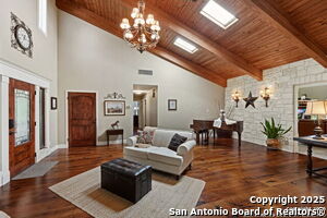 Interior Features : Three Living Area, Liv/Din Combo, Island Kitchen, Breakfast Bar, Walk-In Pantry, Study/Library, Game Room, 1st Floor Lvl/No Steps, High Ceilings, Open Floor Plan, Skylights, Cable TV Available, All Bedrooms Downstairs, Laundry Main Level, Laundry Room