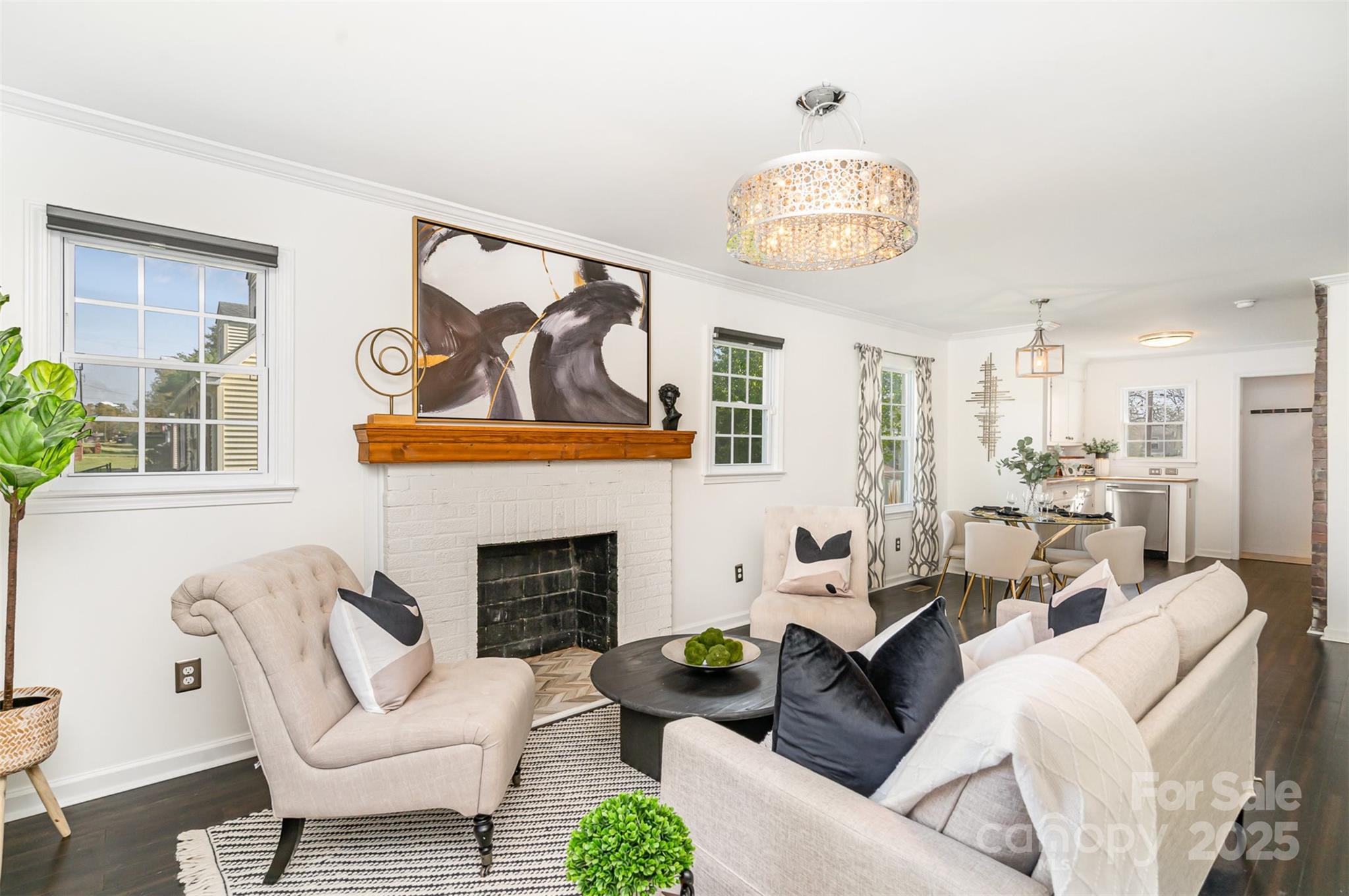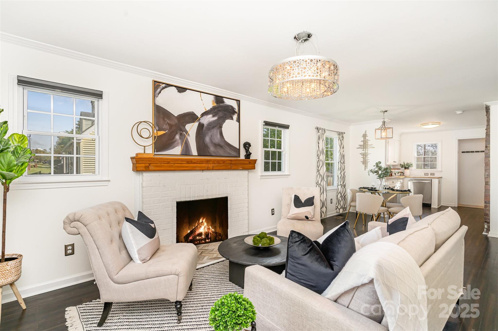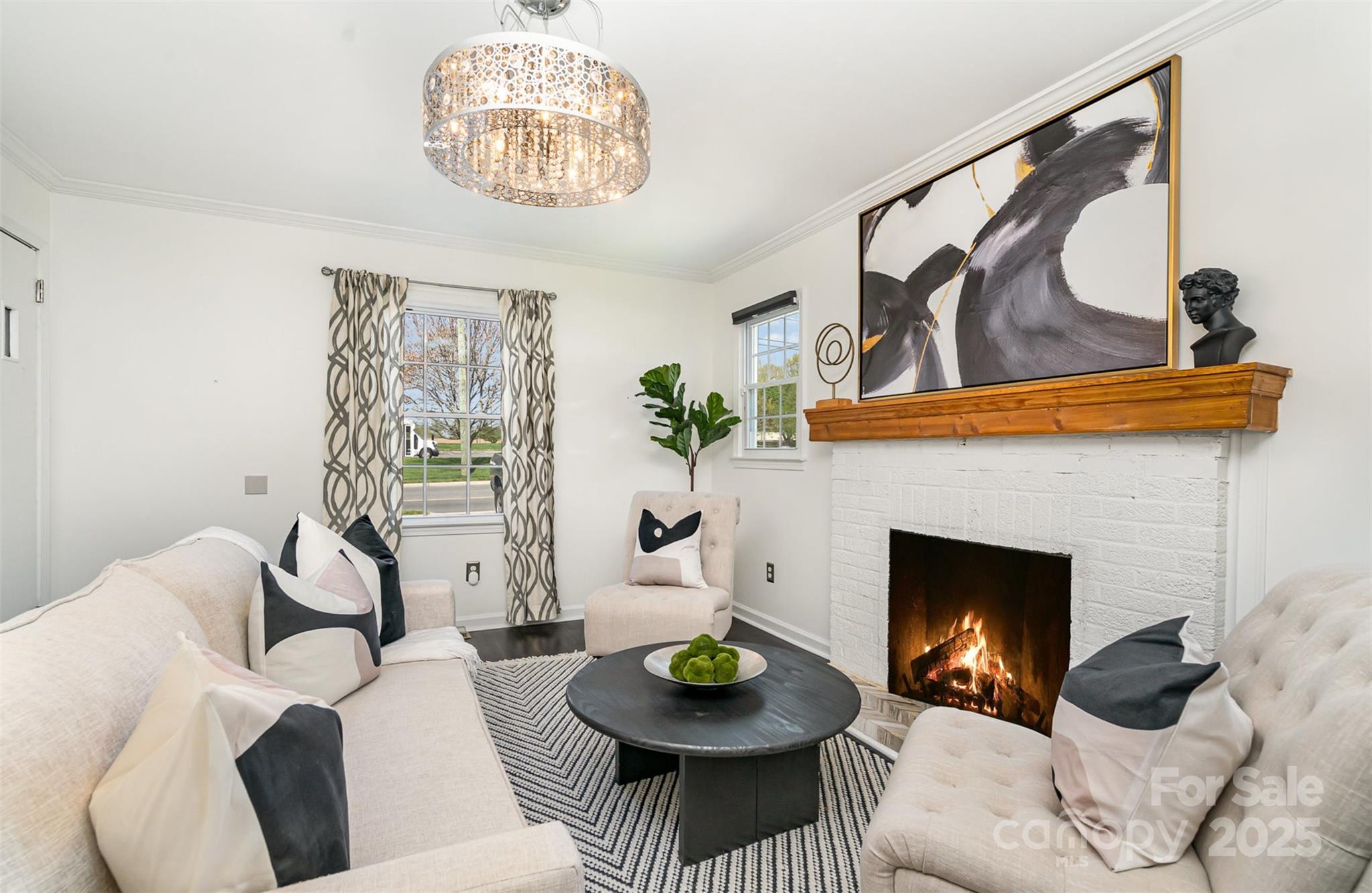 Fall in love with this charming, light-filled gem thoughtfully updated in 2019! The open-concept layout effortlessly blends modern style with cozy comfort — from the custom fireplace mantle and eye-catching exposed brick wall to the butcher block countertops in the stylish kitchen. Unique lighting adds personality and warmth throughout.