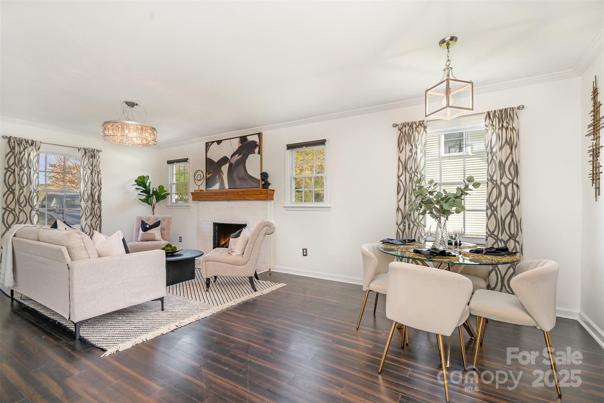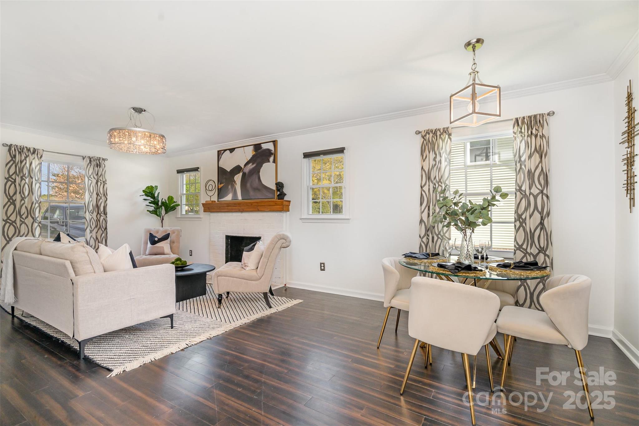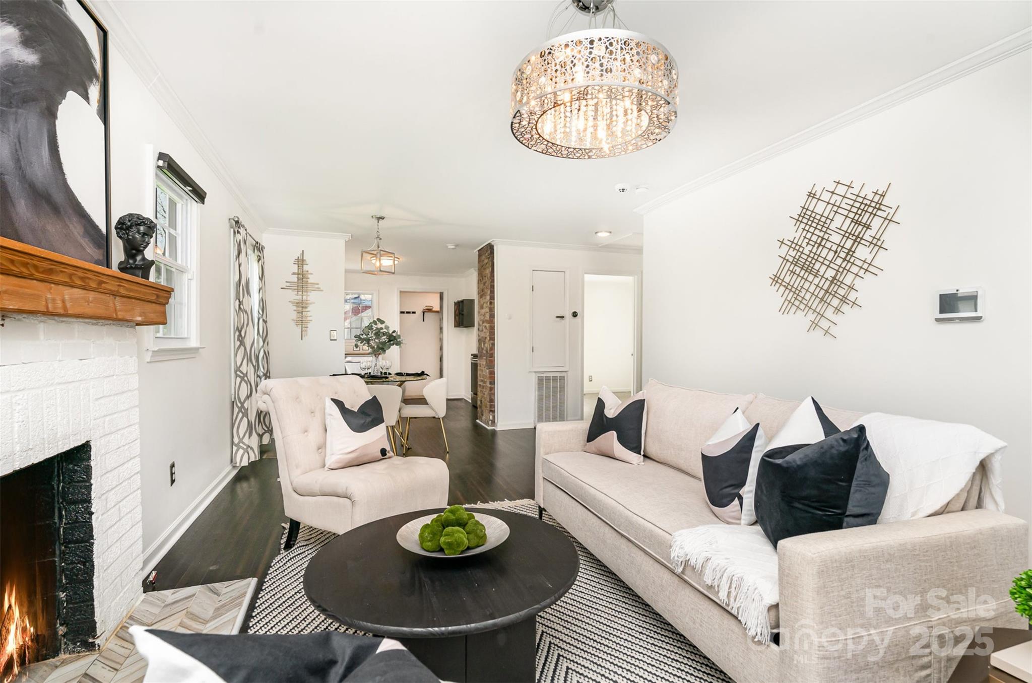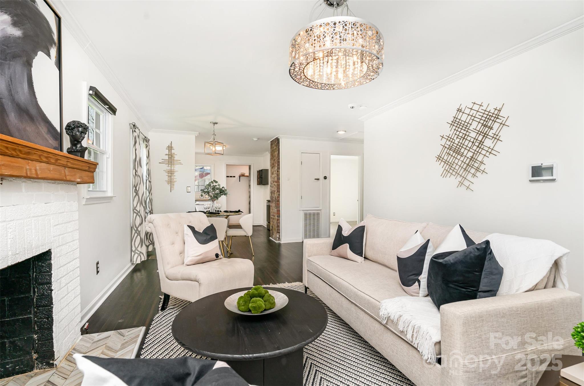 Fall in love with this charming, light-filled gem thoughtfully updated in 2019! The open-concept layout effortlessly blends modern style with cozy comfort — from the custom fireplace mantle and eye-catching exposed brick wall to the butcher block countertops in the stylish kitchen. Unique lighting adds personality and warmth throughout.