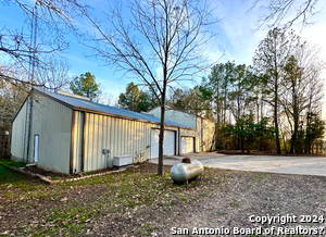 Commercial & Recreational Retreat Potential! Discover this unique home on 14.83 unrestricted acres, offering the perfect work-play balance. This 6,642 sq. ft., 2-story barndominium features a wood-burning fireplace, tile floors, and huge bedrooms with walk-in closets/pantry, and ample storage. It includes a large 46'x48 shop, a secondary workshop, a large storage room, generator, and a loft. The property also boasts an additional 30 x 60 shop, multiple outbuildings, a well house, and covered RV parking. Enjoy beautiful natural views from the large deck and the security of the gated driveway. Hike in the heavy timber, hunt near the seasonal creek, and take advantage of being only minutes from the Trinity River and public boat launch. With retreat or vacation rental potential and a current timber exemption, this property is ideal for diverse uses. Its extensive paved frontage on FM 2665 and close proximity to US 59 enhance its commercial potential. A secluded retreat with endless possibilities!