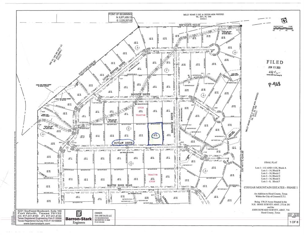 Spectacular views of Granbury all around! This 1.8 acre residential lot is located at one of the highest points in this brand new community of Cougar Mountain. Cougar Mountain features the ultimate in country living, beautiful sunrises and sunsets, and the ultimate in peace and quiet. Located outside the City limits but within Hood County and Granbury ISD. This stunning new luxury gated community is situated between Cresson and Granbury. New asphalt roads have just been installed and both entrances to this community are gated. Bring your builder and build your dream home on this truly spectacular 1.8 acre lot. The views this lot offers will truly take your breath away! Residents enjoy exclusive access to a 6-acre private lake club on Lake Granbury, complete with a marina, clubhouse, pickleball court, and various amenities such as picnic areas equipped with tables and grills. You’ll have everything you need for outdoor fun! Utilities in this development have been thoughtfully planned, including electricity from United Electric Co-op (underground), and high-speed internet from United Electric Fiber.