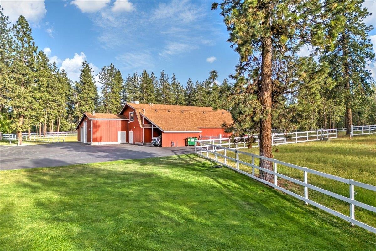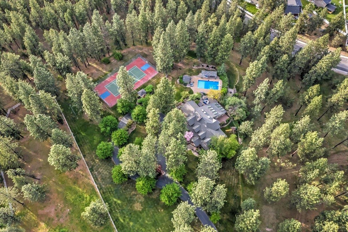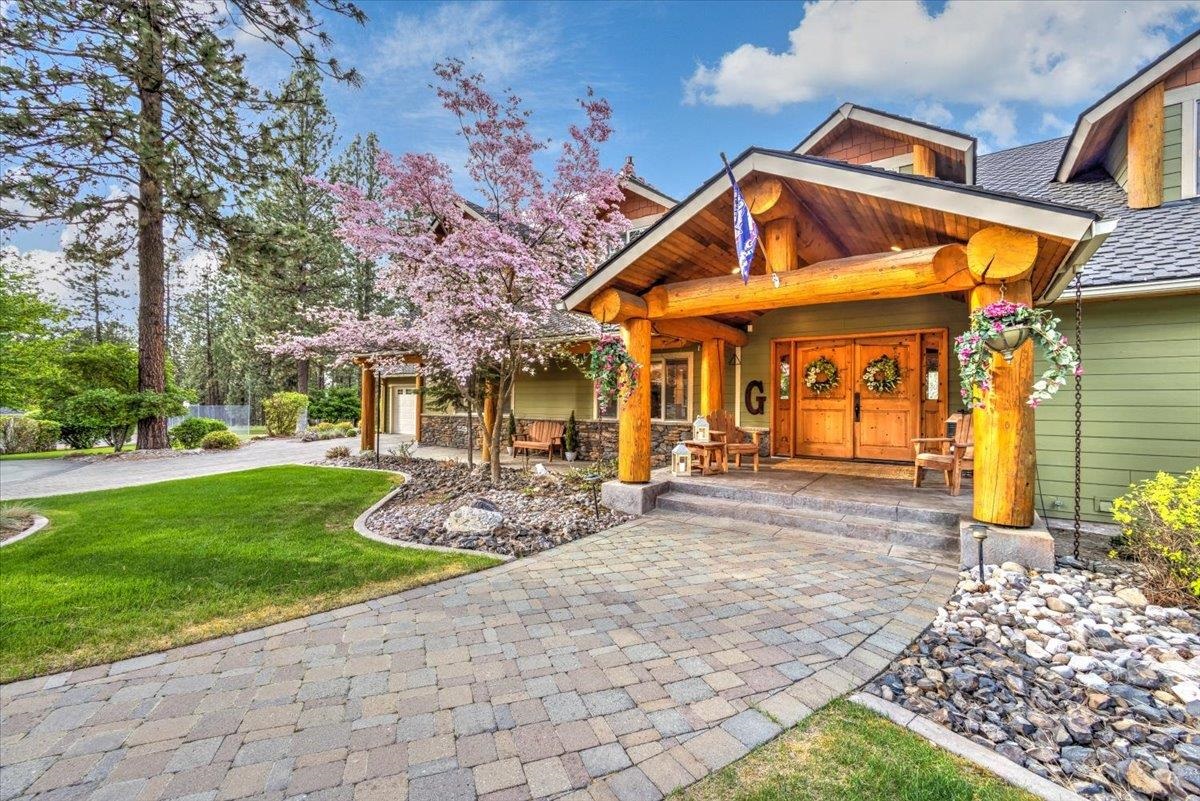 LUXURIOUS PNW ESTATE! Experience one of Spokane‘s Premier Properties nestled in the trees on 11.3 acres! This meticulous & serene home is an entertainer’s dream featuring privacy, sweeping views, gated entry, tree lined driveway, full size tennis court, incredible 20x40 saltwater pool, paver patio, tranquil water feature, pond & cozy fire pit. Equestrian lovers will enjoy the lavish 12-stall Barn/versatile 5222 sf shop complete w/ 2bed/1Bath 1400 sf guest quarters above. This Exquisite 7bed, 5bath Estate boasts 7,210 sf & has been thoughtfully designed w/attention to detail & quality throughout. Incredible gourmet kitchen boasts a built-in stainless fridge, custom cabinetry, 6-burner gas range, wet bar w/wine fridge, formal & informal dining spaces. Extensive use of beam & log throughout & breathtaking sunroom you must see to believe w/ walls of windows & skylights. The primary suite is a haven of luxury with attached office w/ fireplace, sitting area, soaring ceilings, large tiled shower & 2 walk in closets.