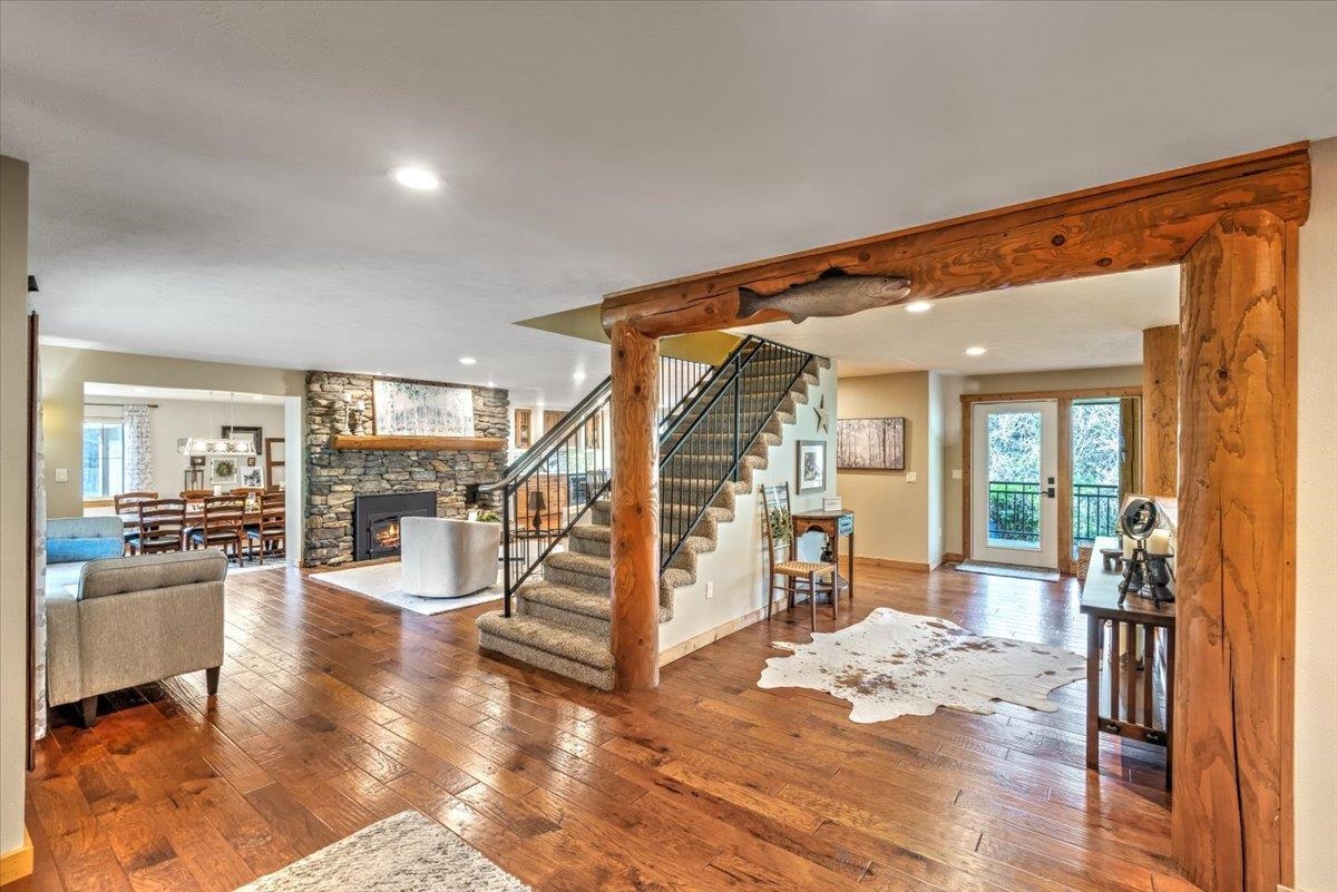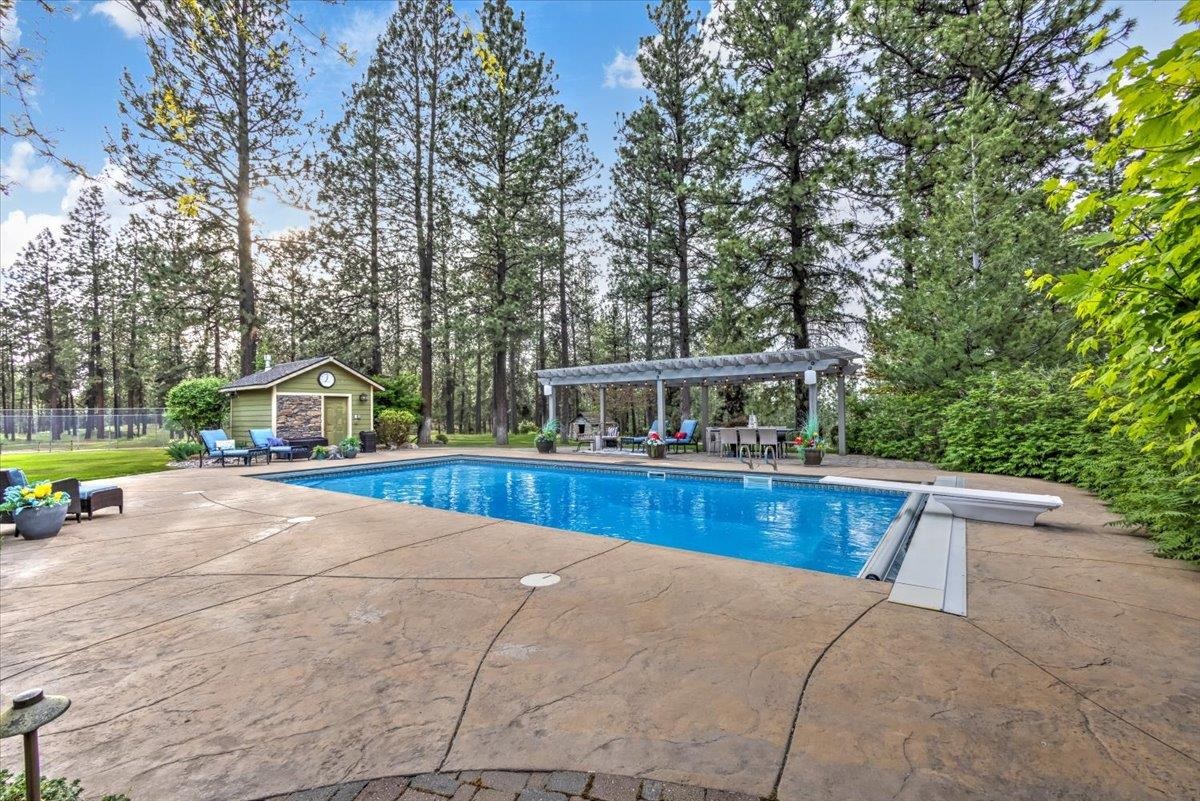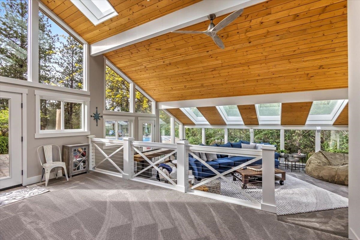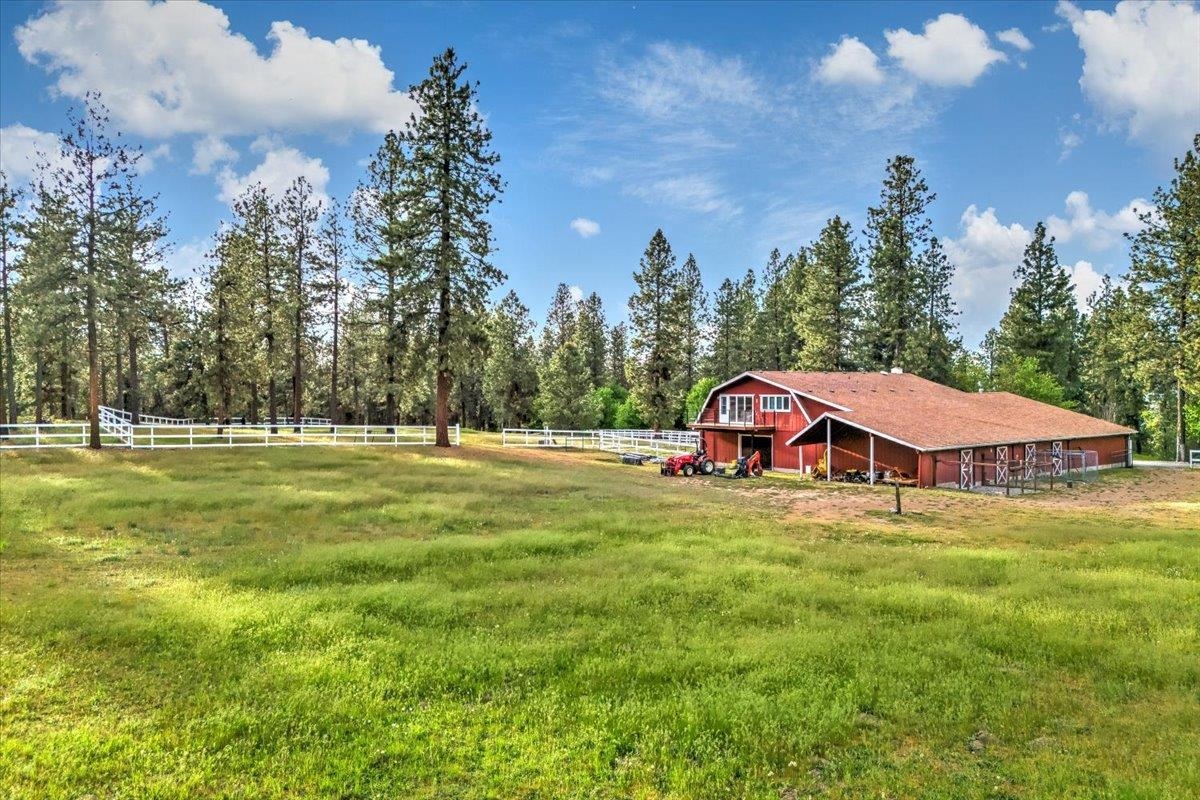 LUXURIOUS PNW ESTATE! Experience one of Spokane‘s Premier Properties nestled in the trees on 11.3 acres! This meticulous & serene home is an entertainer’s dream featuring privacy, sweeping views, gated entry, tree lined driveway, full size tennis court, incredible 20x40 saltwater pool, paver patio, tranquil water feature, pond & cozy fire pit. Equestrian lovers will enjoy the lavish 12-stall Barn/versatile 5222 sf shop complete w/ 2bed/1Bath 1400 sf guest quarters above. This Exquisite 7bed, 5bath Estate boasts 7,210 sf & has been thoughtfully designed w/attention to detail & quality throughout. Incredible gourmet kitchen boasts a built-in stainless fridge, custom cabinetry, 6-burner gas range, wet bar w/wine fridge, formal & informal dining spaces. Extensive use of beam & log throughout & breathtaking sunroom you must see to believe w/ walls of windows & skylights. The primary suite is a haven of luxury with attached office w/ fireplace, sitting area, soaring ceilings, large tiled shower & 2 walk in closets.