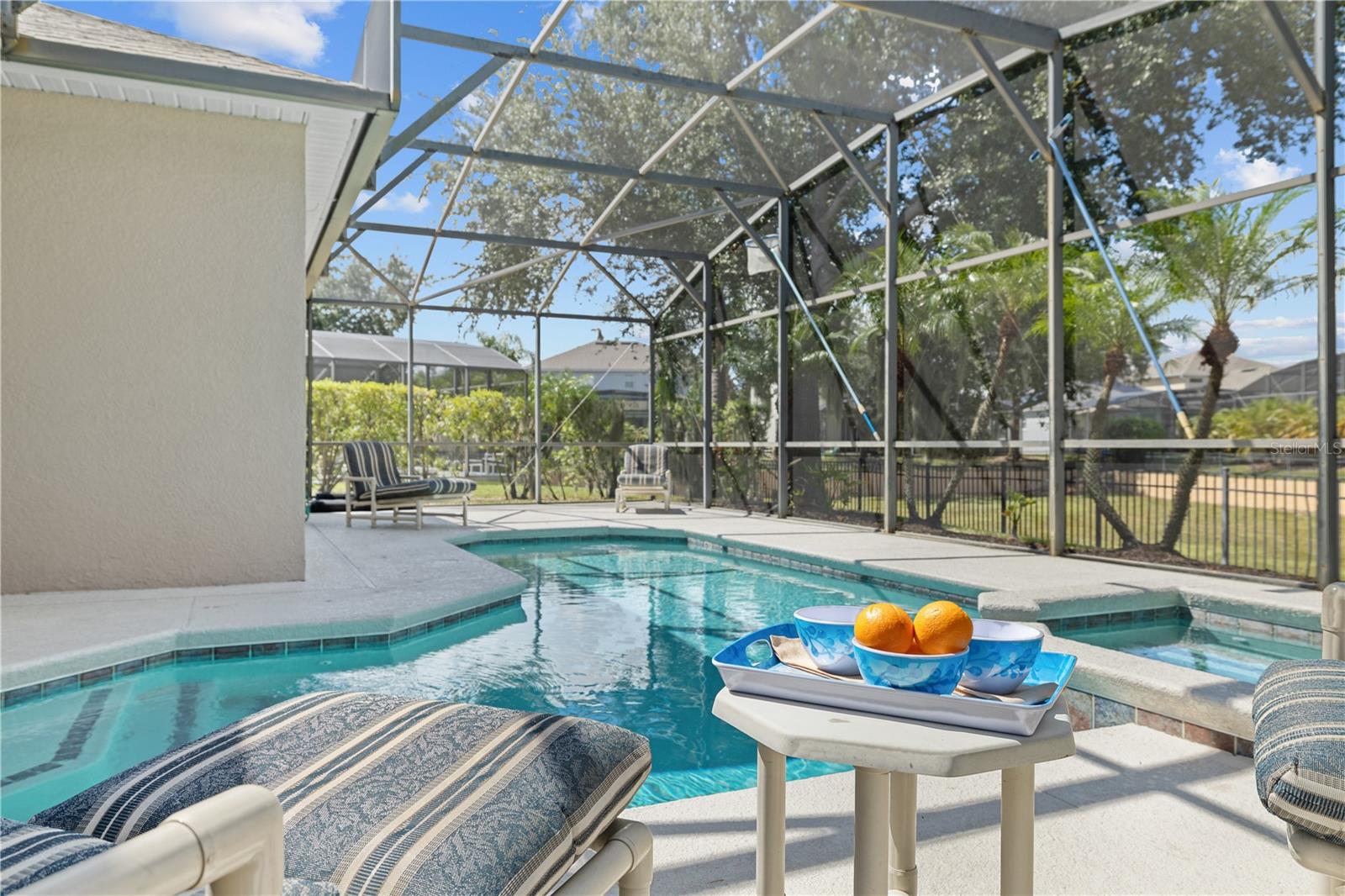 Step outside and unwind in your tropical retreat complete with a heated pool and spa, covered lanai, and no rear neighbors – perfect for enjoying Florida’s sunny days and starry nights.