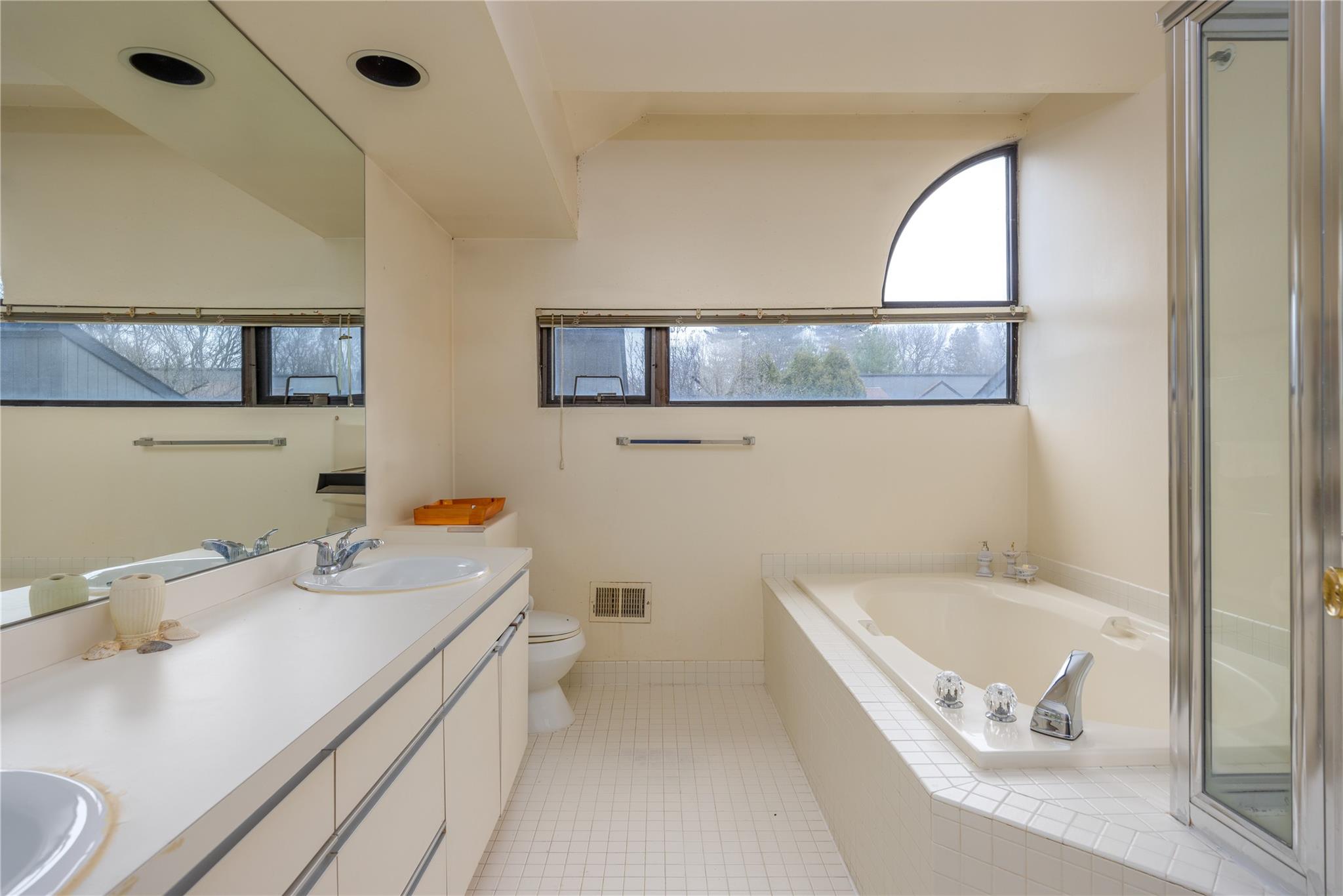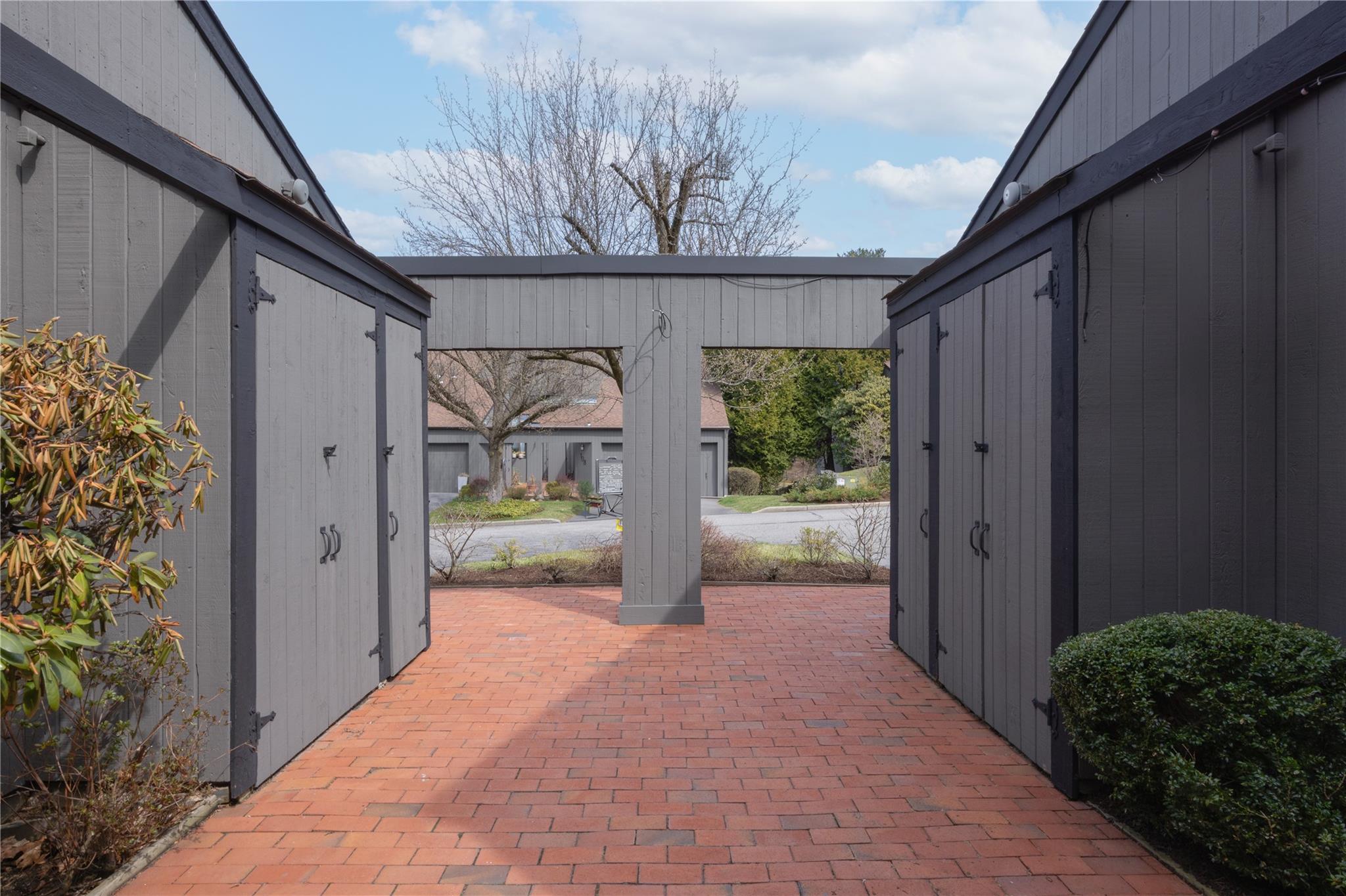 113 Stone Oaks, a contemporary style attached townhouse in a gated community. 24 hour guardhouse entrance. Privacy and professional landscaping are just some of the features of this quiet, residential complex conveniently located close to parkways, shopping and recreation. There's a clubhouse, community pool, tennis and pickleball courts, all complimented by winding lanes and lots of greenery. Your private entrance to the townhome has it's own front paver patio and handy storage shed for storage. Two car garage with custom built-in cabinetry. Ample driveway. Entry w/closet, first floor bedroom, 1/2 bath, eat-in-kitchen and windowed breakfast nook. Open-concept layout living room w/gas fireplace and dining area w/slider to the deck. Second floor spacious primary bedroom suite w/generous closets, dressing room and primary full bath. Washer and dryer, full bath and second bedroom. Hartsdale Metro North train station is just a short drive away.