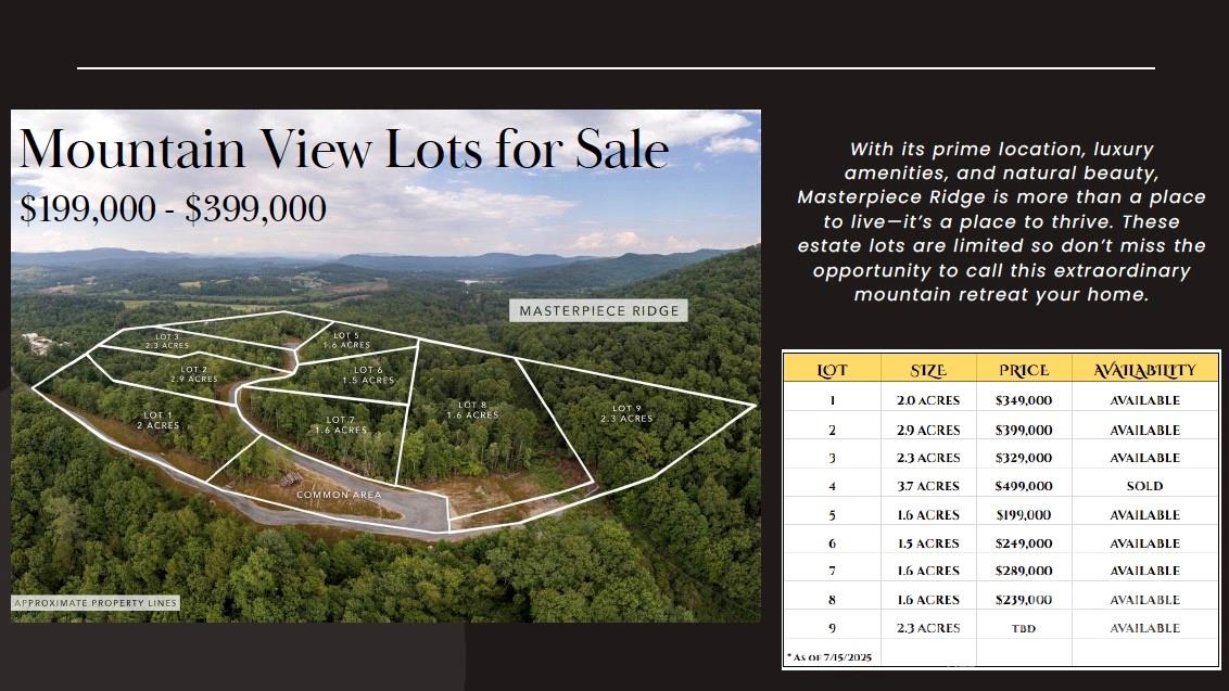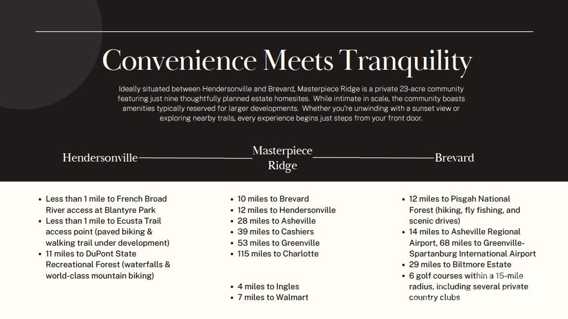 Ideally situated between Hendersonville and Brevard, Masterpiece Ridge is a private 23-acre community