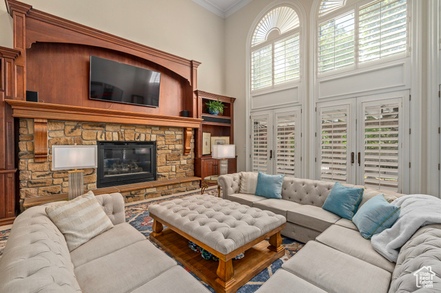 Interior Features: Alarm: Fire, Alarm: Security, Bar: Wet, Bath: Primary, Bath: Sep. Tub/Shower, Central Vacuum, Closet: Walk-In, Den/Office, Disposal, French Doors, Gas Log, Great Room, Jetted Tub, Kitchen: Second, Kitchen: Updated, Mother-in-Law Apt., Oven: Double, Oven: Gas, Oven: Wall, Range: Countertop, Range: Gas, Range/Oven: Built-In, Vaulted Ceilings, Granite Countertops, Theater Room