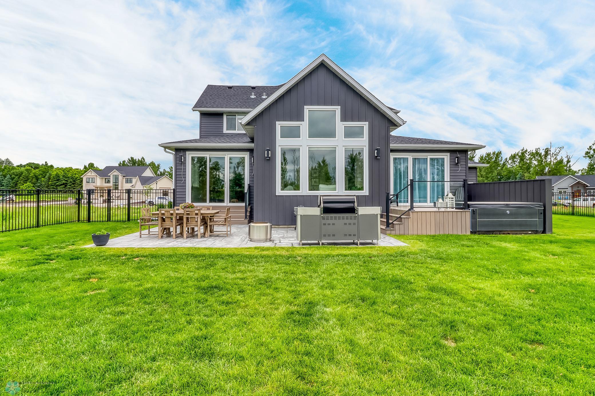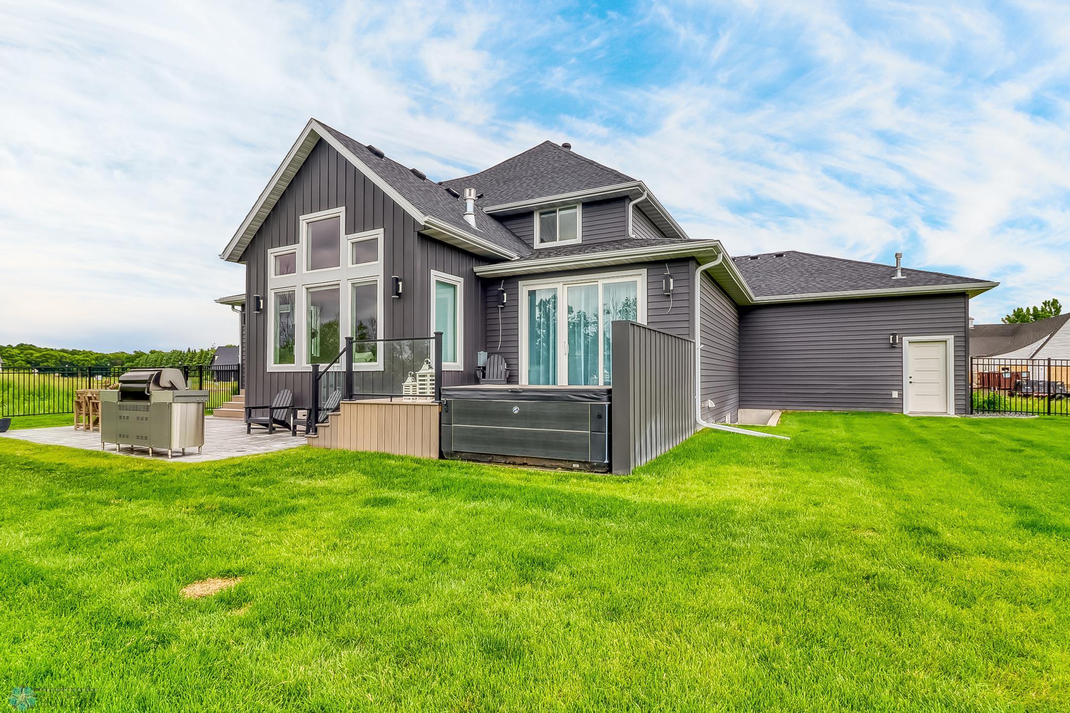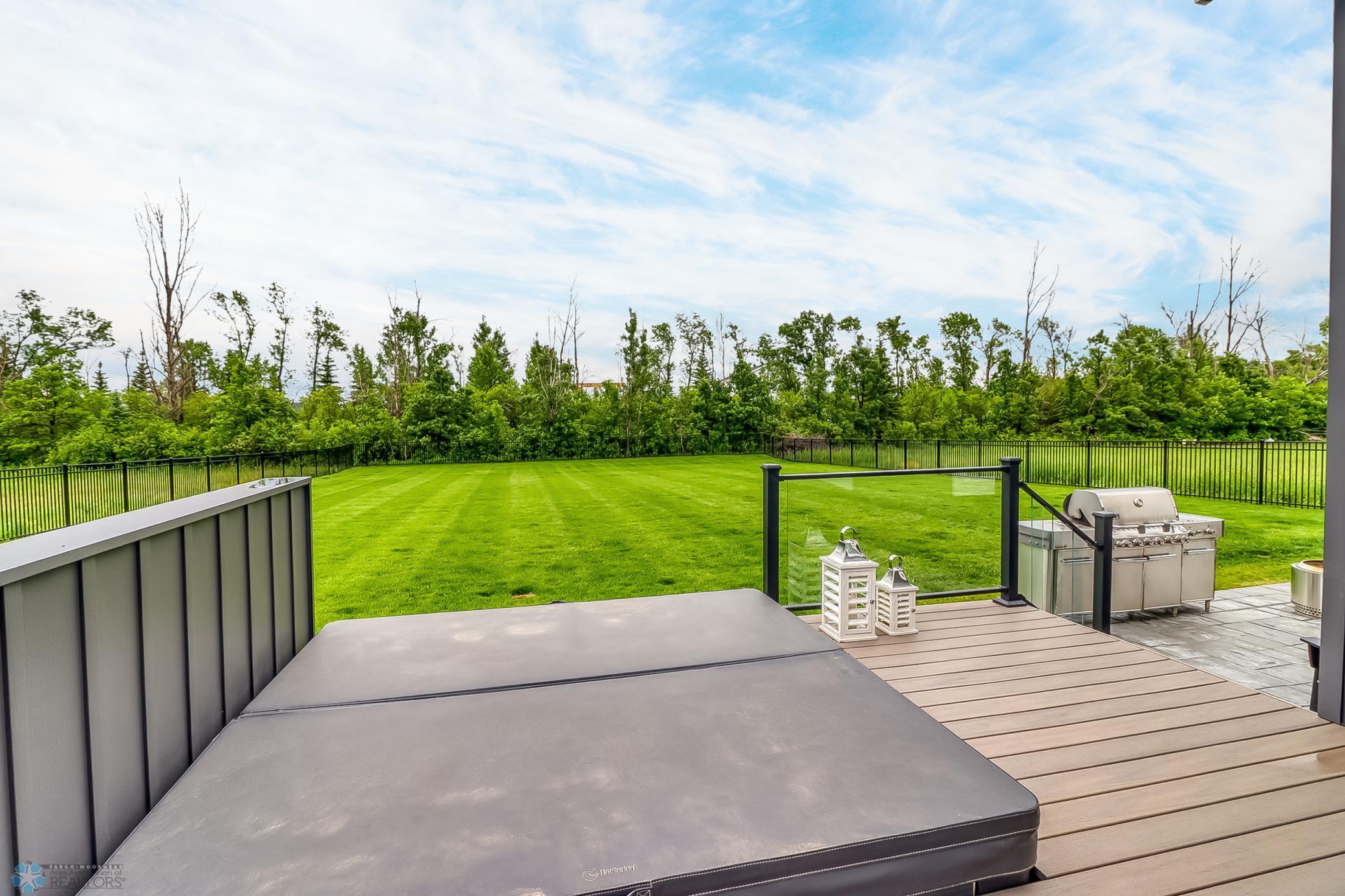 Welcome to this exceptional home, unlike any other, boasting exquisite craftsmanship and attention to detail throughout. Situated on a stunning lot in Lost River 7th Addition just minutes from the City of Fargo and West Fargo, this property offers over 5,400 sq ft of luxurious living space. With 6 spacious bedrooms, 5 beautifully appointed bathrooms, a main-level office, loft, and a fully finished basement, this home is designed for both comfort and entertainment. The expansive family room with a wet bar and recreational area makes hosting a breeze. The chef's kitchen is a dream, featuring a large island, butler's pantry, dry bar, and a striking wine wall. The master suite on the main level is a private retreat, complete with heated tile floors in the bathroom, a private smart toilet, and a massive master shower. Step outside to the fully fenced yard which includes a luxurious salt water hot tub and patio, featuring cable railing, offering ultimate privacy and relaxation.