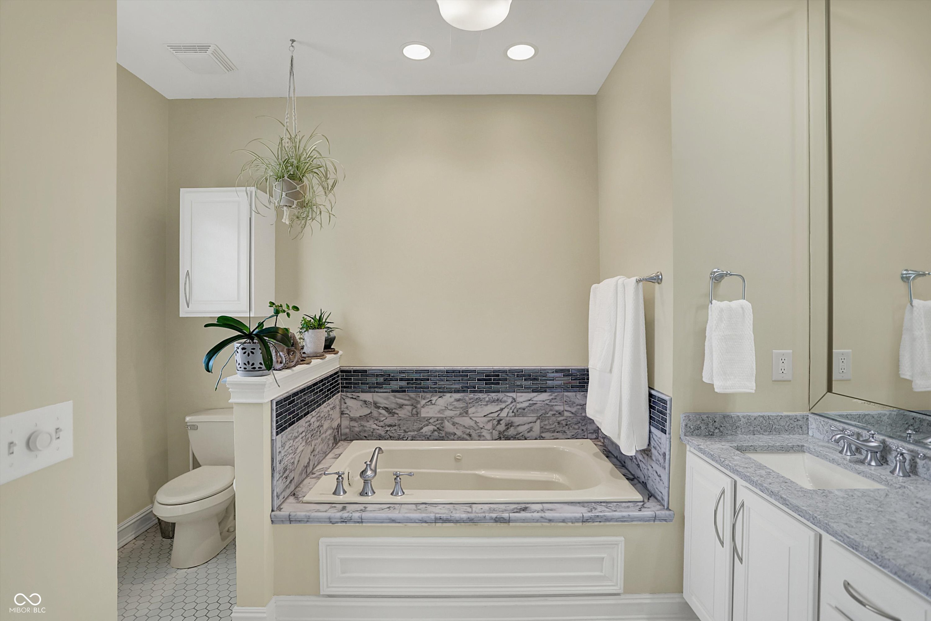 Introducing a Rare Offering to Own a Townhome in the Highly Coveted Sycamore Springs! This exquisite END-UNIT TOWNHOME is a true gem in one of Washington Township's most prestigious gated communities. Opportunities to own in Sycamore Springs are limited & even more so for end units that have been meticulously remodeled w/high-end custom finishes. Behind the privacy of its secure gates, Sycamore Springs offers a refined lifestyle w/resort-style amenities, including a beautifully appointed clubhouse, sparkling pool, fitness center, basketball court & serene walking & jogging paths. The community is also pet-friendly, making it ideal for dog lovers who don't want to compromise on luxury. Perfectly situated just moments from Keystone at the Crossing, acclaimed restaurants, upscale shopping, fitness studios & I-465, this location offers both privacy and convenience. Inside, you'll discover a thoughtfully designed & beautifully updated interior that blends sophistication w/comfort. The open-concept great room welcomes you with tall ceilings, abundant natural light, plantation shutters & a cozy fireplace-creating a warm & inviting ambiance. The adjacent chef's kitchen is equally impressive, featuring stainless steel appliances, granite countertops & backsplash, large center island & a charming breakfast room. Step outside to a private elevated deck-ideal for relaxing evenings or elegant entertaining. Upstairs, the expansive owner's suite is a tranquil retreat, boasting space for a king-sized bedroom set, a custom walk-in closet & a brand new spa-inspired bathroom complete with dual bowl vanity, a jetted soaking tub & a spectacular walk-in shower. A second bedroom with en suite bath access, office & a convenient upper-level laundry room complete the floor. The lower level offers incredible versatility-perfect for a home office, media room, game room, guest suite, exercise room & more! A spacious two-car garage rounds out this exceptional property! OPEN SAT 1-3 PM+SUN 2-4PM.
