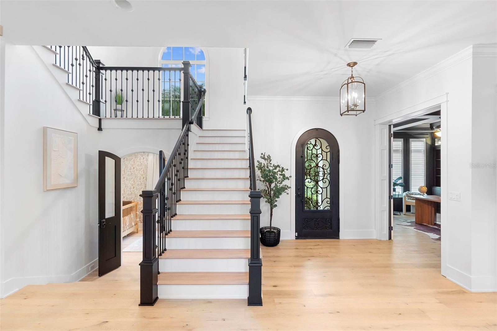 Located within the exclusive guard-gated community of Pablo Creek Reserve in Jacksonville, FL, this well-appointed custom Mediterranean-style estate offers the perfect blend of luxury, functionality, and timeless design. Boasting 5 BEDROOMS, 5.5 BATHROOMS, a 3-CAR GARAGE, and over 4,800 SQFT of elevated living space, this home is designed for both grand entertaining and comfortable everyday living. The heart of the home is the chef’s kitchen, a dream for entertainers and culinary enthusiasts alike. Featuring dual islands, two farmhouse sinks, two dishwashers, TWO HIGH-END REFRIGERATORS, a gas cooktop with custom range hood, wet bar with wine fridge and ice maker, walk-in pantry, and new quartz countertops—this space is thoughtfully crafted for both form and function. The open-concept living area showcases new luxury vinyl plank flooring, a gas fireplace with floating built-ins, and gorgeous views of the pool and tranquil water beyond. Just off the main living area is the moody, design-forward primary suite, completely blacked out for serenity, with oversized drapes, tray ceiling, and an en-suite spa bathroom featuring dual vanities, a steam shower, and an oversized walk-in closet with built-ins and a center island ideal for watches, jewelry, or outfit planning. The first-floor office offers built-in cabinetry, French doors, and a shared view of the impressive saltwater pass-through fish tank. Nearby, you'll find a designer half bath, stylish mudroom cubbies, and a functional laundry space off the hallway leading to the garage. A versatile fifth bedroom on the main floor, currently used as a card room, offers direct access to the expansive covered patio. Outdoors, enjoy travertine tile flooring, built-in speakers, and a full summer kitchen, all overlooking the saltwater pool and spa. A bug-misting repellent system lines the gutters and fence for ultimate outdoor comfort. Upstairs, you'll find a spacious loft, three additional bedrooms—each with its own en-suite bath, and a second laundry room with space for stackable washer/dryer. Featuring a WHOLE HOME GENERAC GENERATOR this property is sure to give you peace of mind in the event of a power outage. This exceptional property is a rare opportunity to own in one of Jacksonville’s most coveted communities, where luxury meets thoughtful design in every detail. Call to schedule your private tour today!