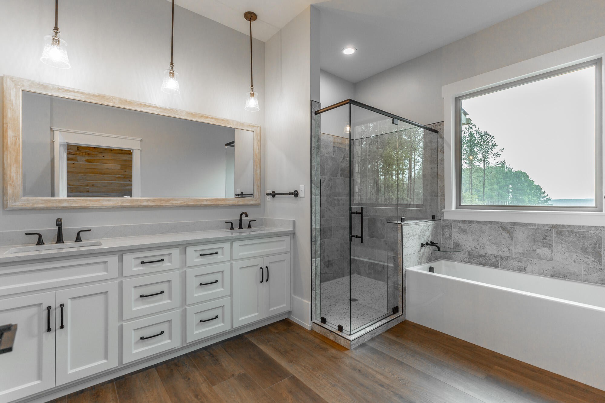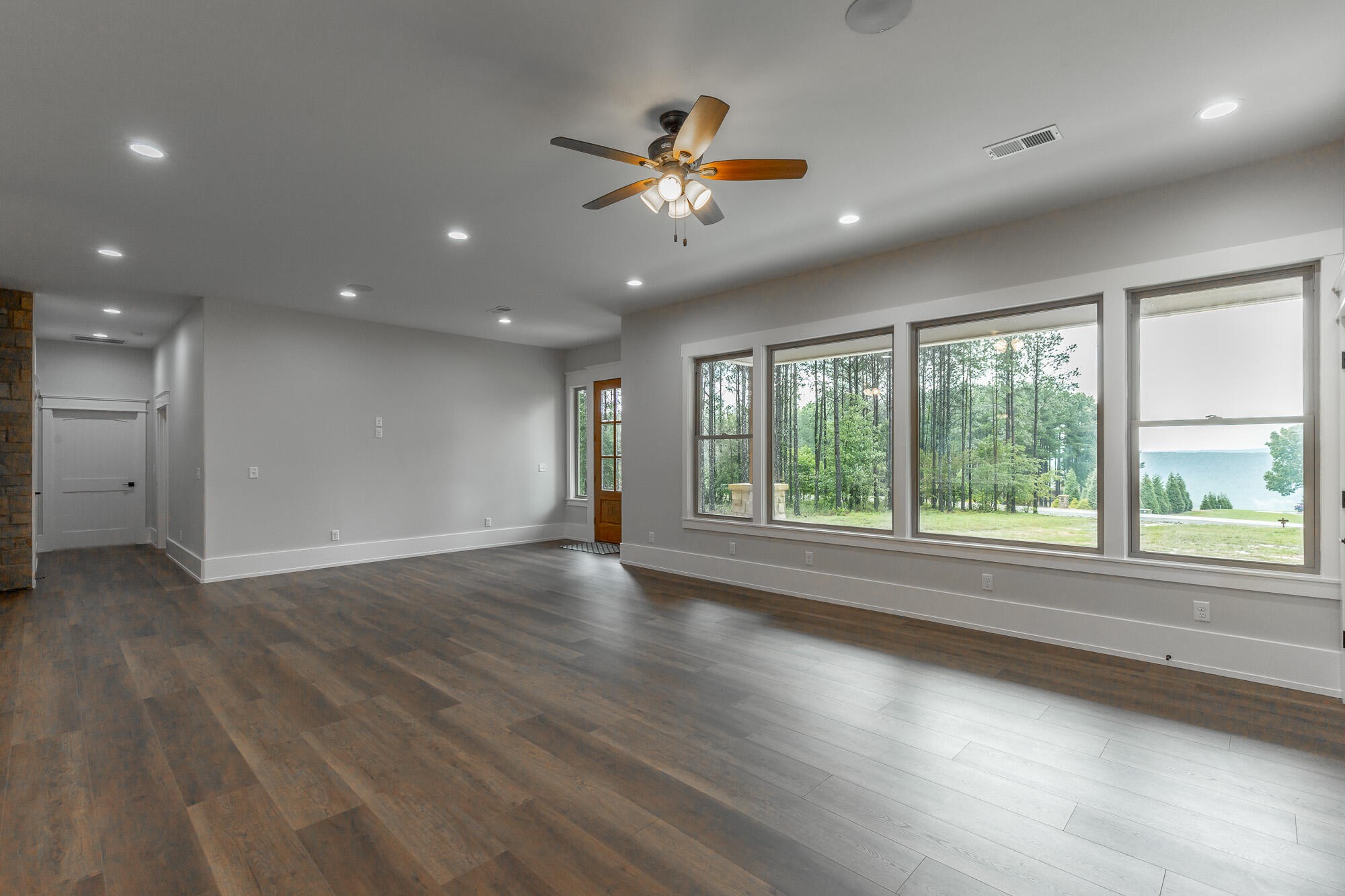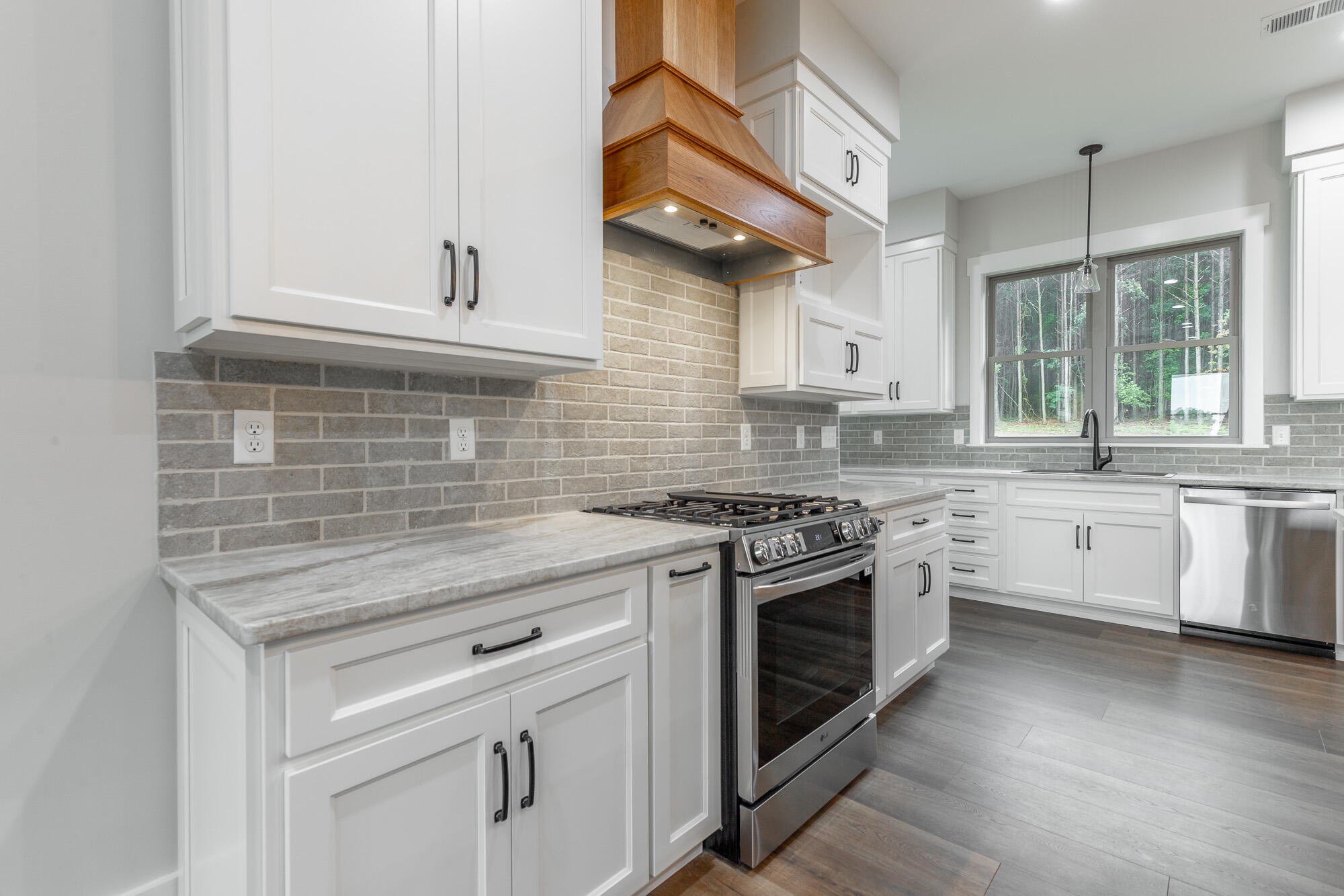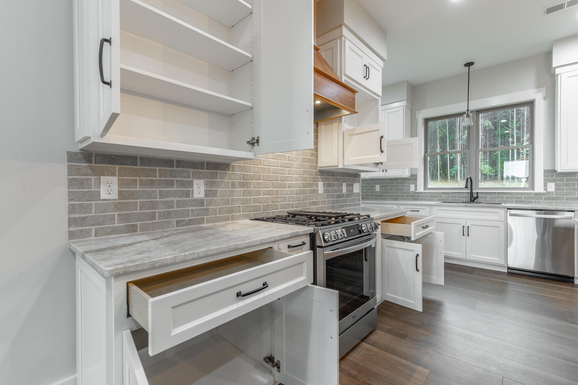 Welcome to 220 High Point Lane, a brand-new custom home nestled on 4.48 acres in the prestigious gated mountaintop community of Jasper Highlands. With breathtaking long-range mountain views and high-end craftsmanship throughout, this one-of-a-kind property offers 3 bedrooms, 2.5 bathrooms, a flex room, and over 3,000 square feet of thoughtfully designed living space that is all on a level lot with a wide footprint for privacy and incredible views. This home blends luxury, efficiency, and thoughtful design in one of Southeast Tennessee's premier gated communities. From the moment you arrive, you're welcomed by a porte cochere entry and a stunning natural stone and brick exterior. Step inside to 10 foot ceilings, wide-open living areas, and premium finishes throughout including solid maple and hickory cabinetry, high-end engineered hardwood floors, solid knotty pine interior doors, and custom poplar and red cedar wood accents. The chef's kitchen is a standout, featuring an 9.5 foot natural hickory island, Taj Mahal leathered quartzite countertops, LG high-efficiency gas range with air fryer, Blanco granite composite sink, and smart storage solutions like pull-out spice racks and divided drawers. The adjoining dining and living area offers over 1,000 SF of uninterrupted space and features a vent-free gas fireplace of natural stone and custom Louisiana solid red cedar mantle and corbels and is wired with a built-in Klipsch speaker system. The luxurious primary suite includes a spa-inspired bath with soaking tub, quartz countertops, a glass-enclosed tiled shower, and an oversized walk-in closet with California-style adjustable shelving. Two additional bedrooms, a flex room, and an expansive laundry area and three pantries ensure comfort and functionality. Step outside to enjoy a spacious covered back patio with a custom outdoor kitchen, natural stone and brick finishes, and wiring for a future hot tub.