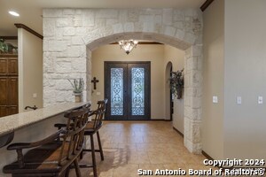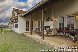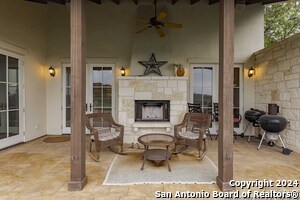 Move-in ready golf villa located on Hole #1 of The Hills course nestled in the master-planned Comanche Trace community. Enjoy stunning Texas Hill Country views from the covered back patio with electronic screens. This 3-bedroom, 3-bath home features high ceilings, wood-burning fireplace in living room and back patio, knotty alder wood cabinetry, granite countertops, and recently added Mediterranean-style entry doors (2023). Open-concept layout with plenty of natural light. HOA-maintained yard (with additional fee) in a gated enclave of just 18 villas. Comanche Trace offers resort-style amenities including a 27-hole golf course, fitness center, pool, walking trails, tennis/pickleball courts, and clubhouse with restaurant. Social or golf membership required for most amenities. Low-maintenance living with premium golf and Hill Country views-Come & See today!